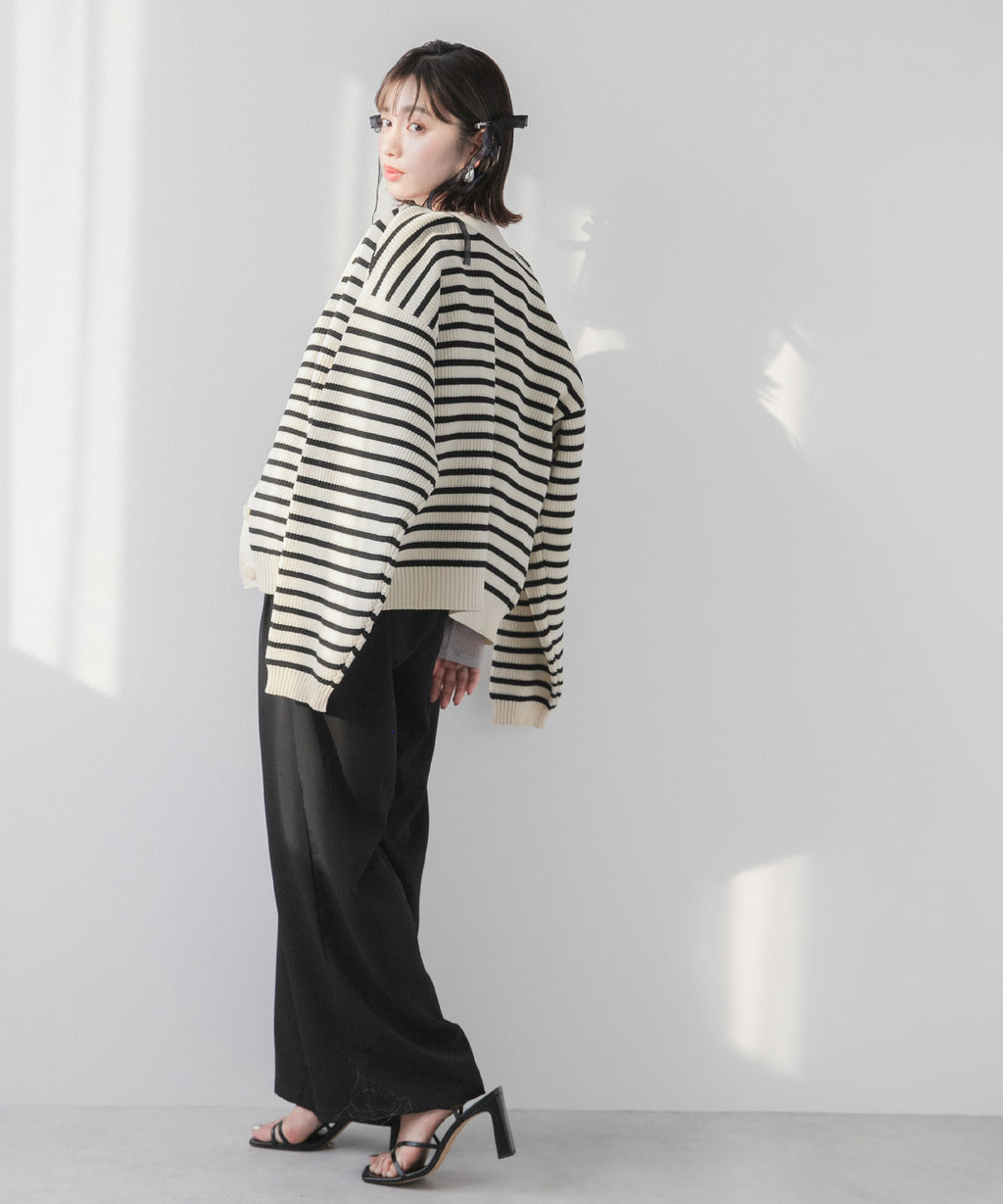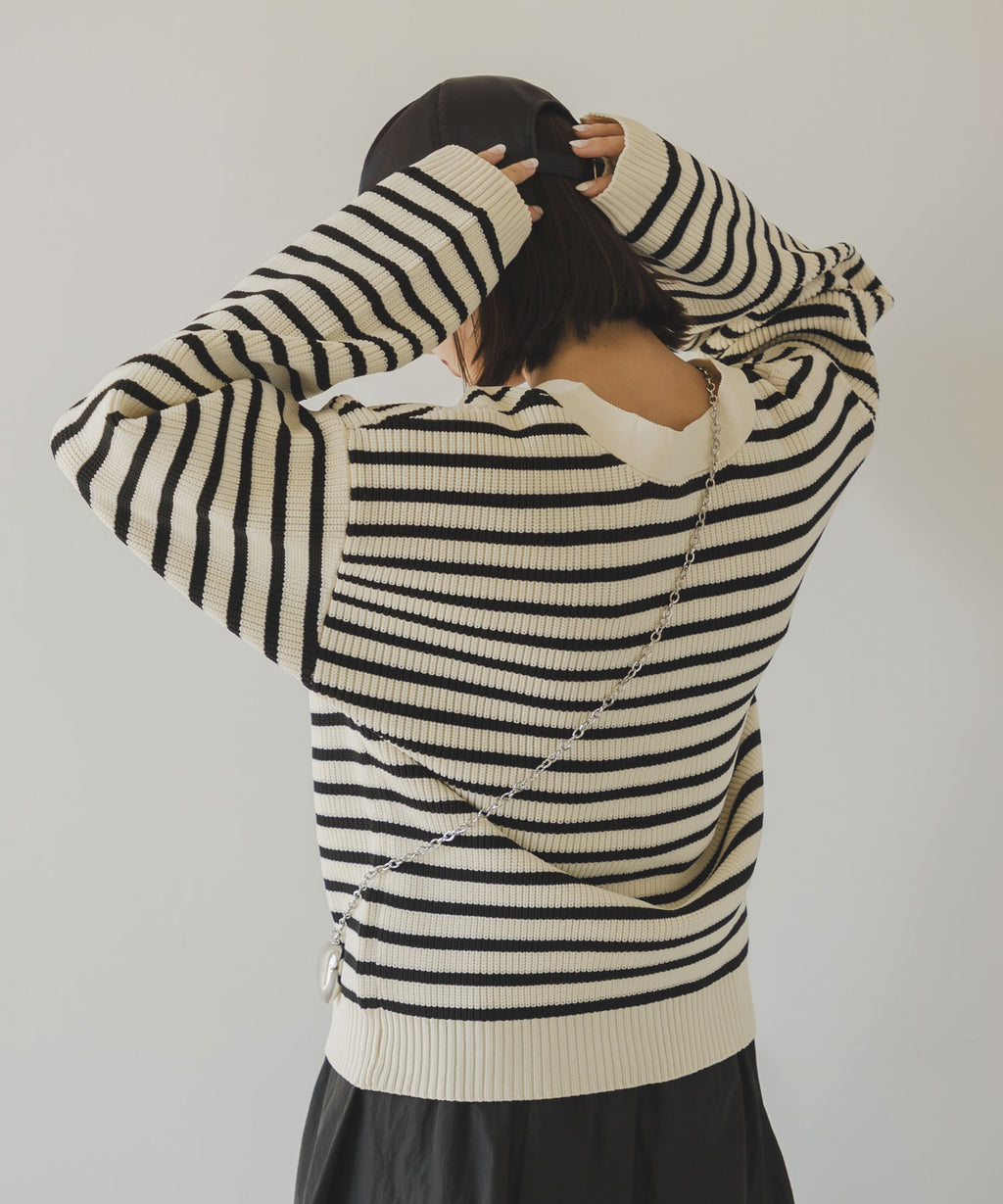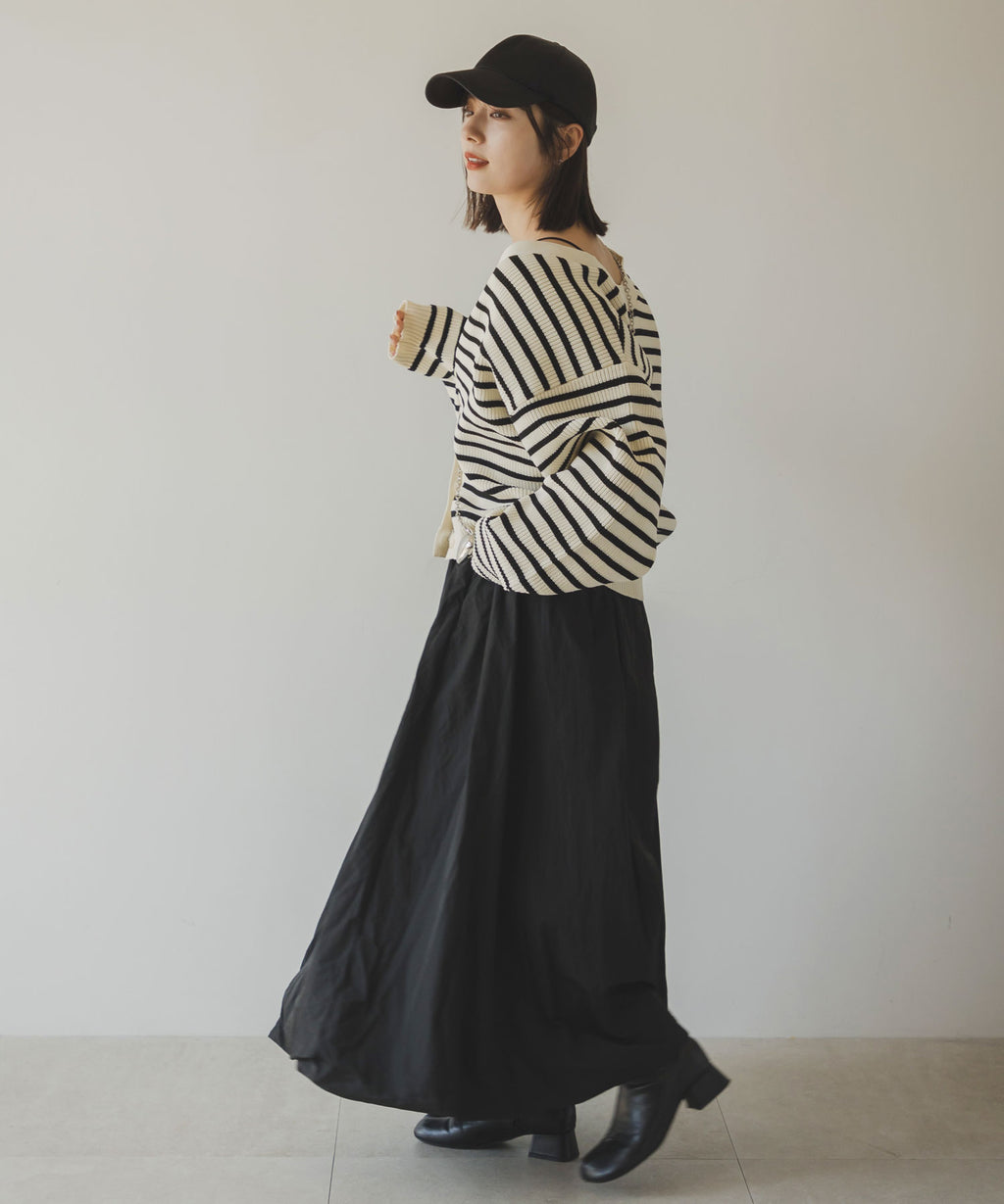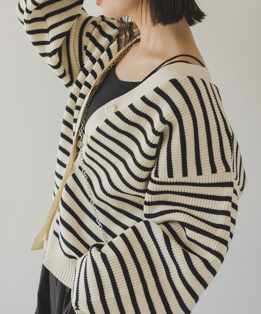 暖かみのあるアイボリーとブラックのボーダー柄は飽きの来ない定番アイテム。