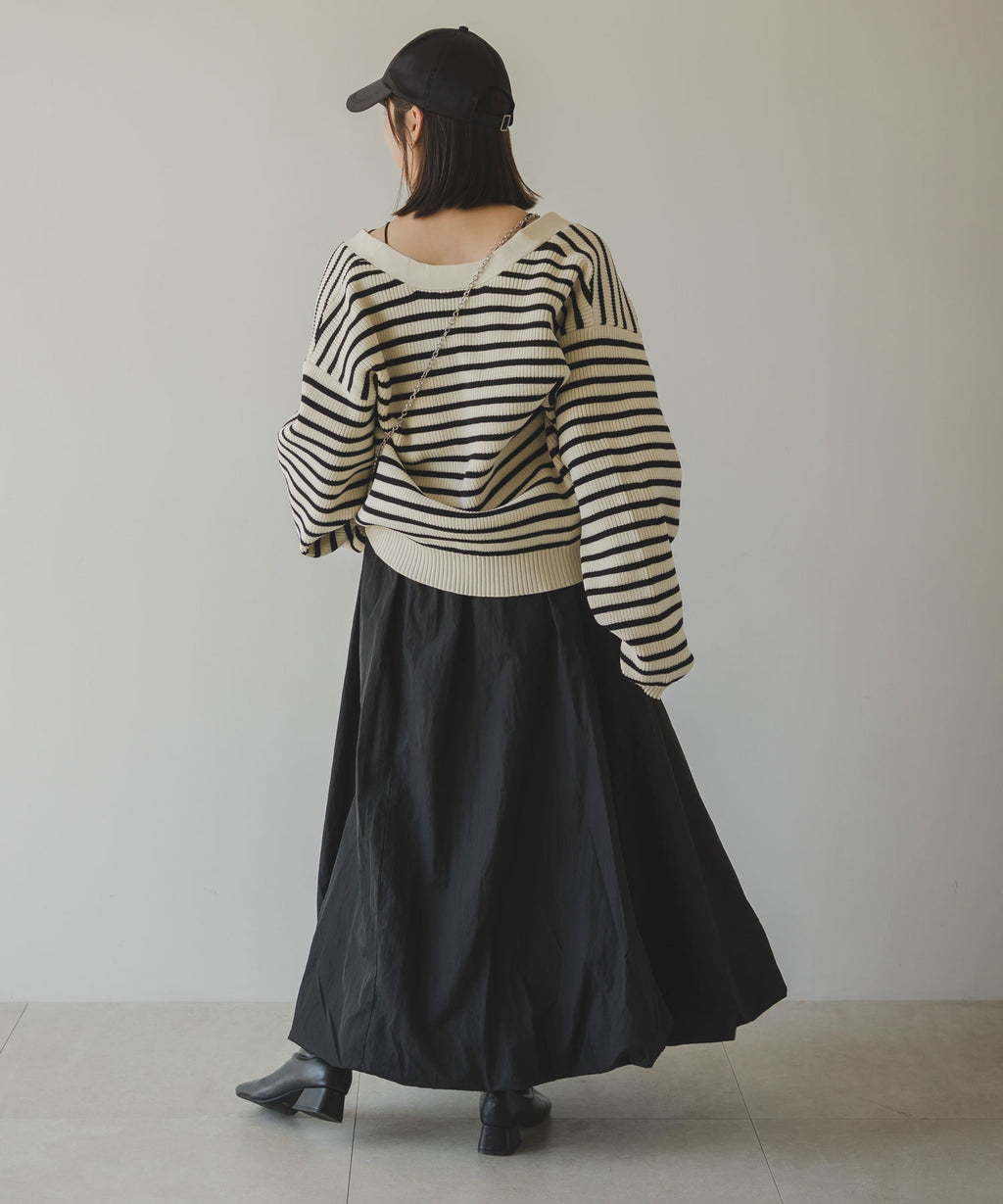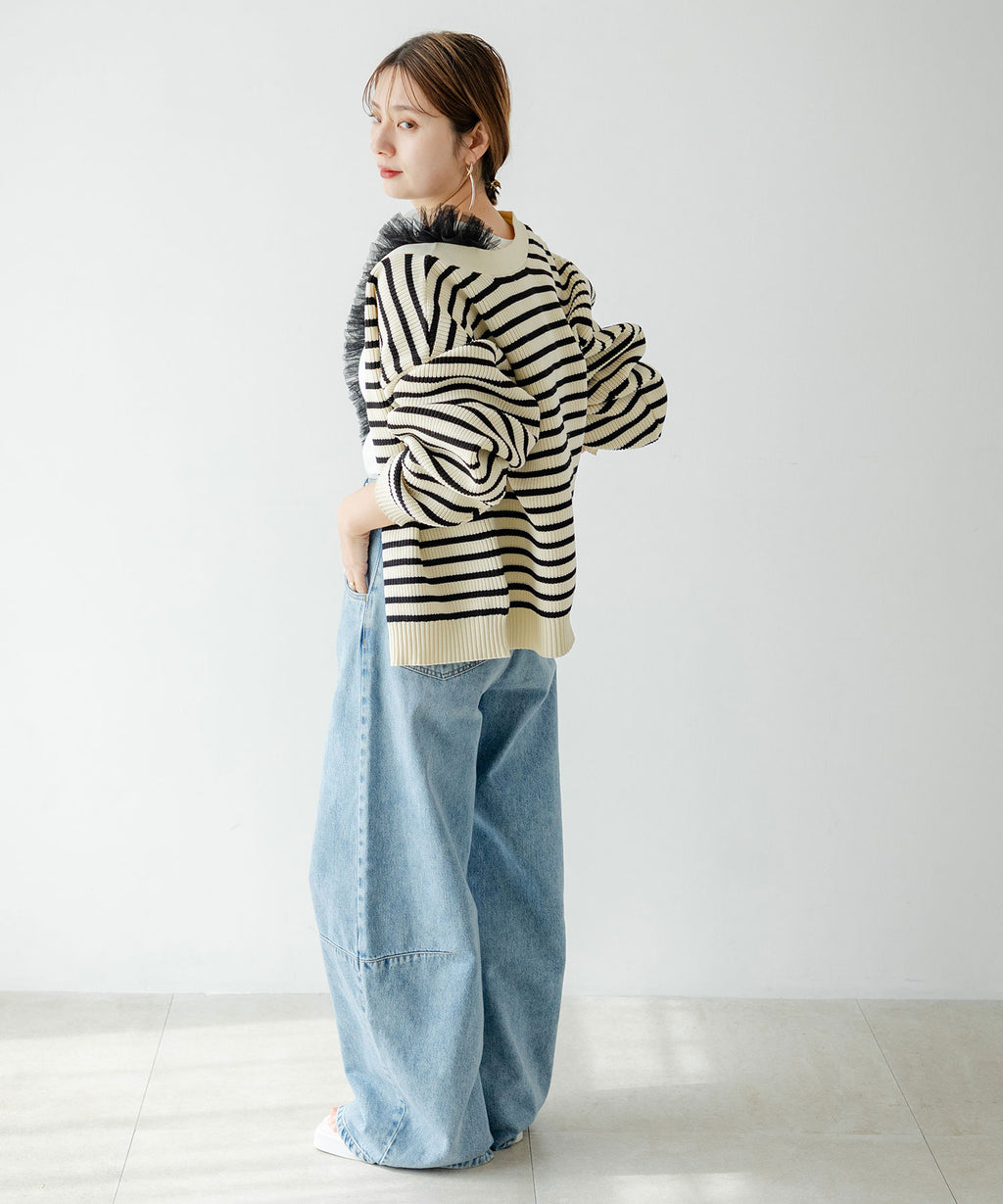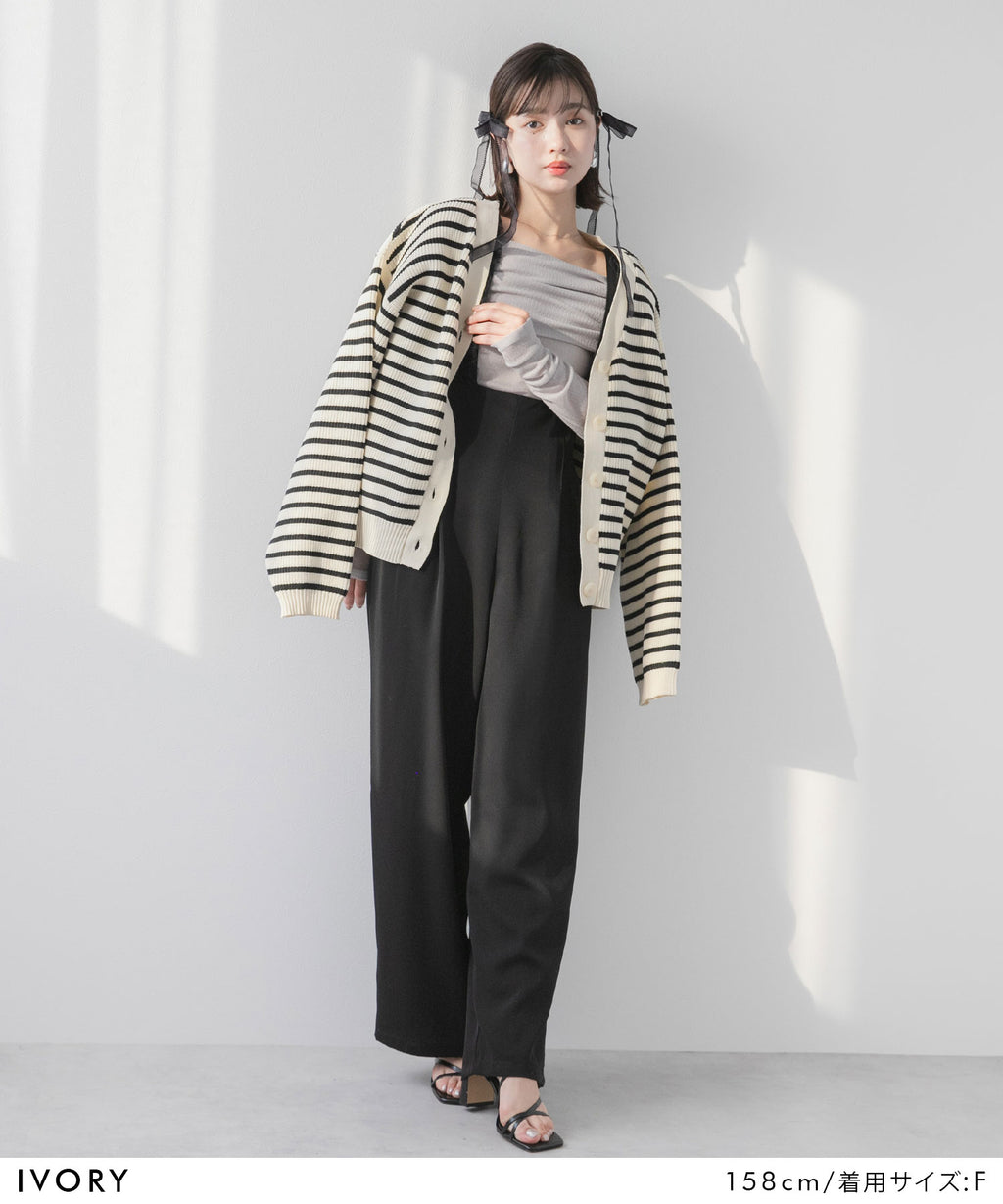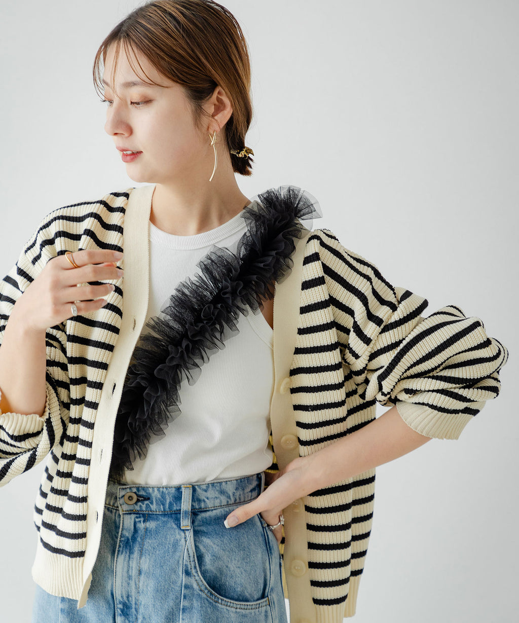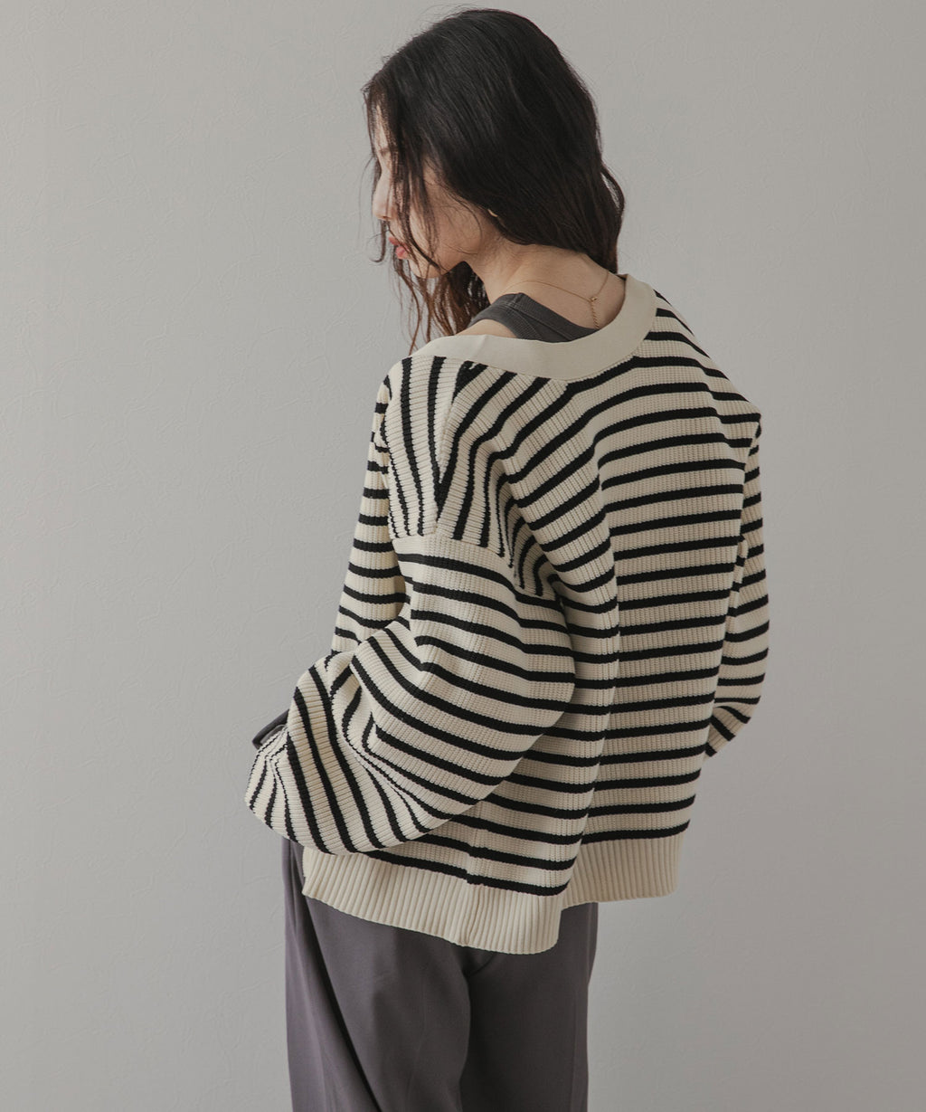 暖かみのあるアイボリーとブラックのボーダー柄は飽きの来ない定番アイテム。