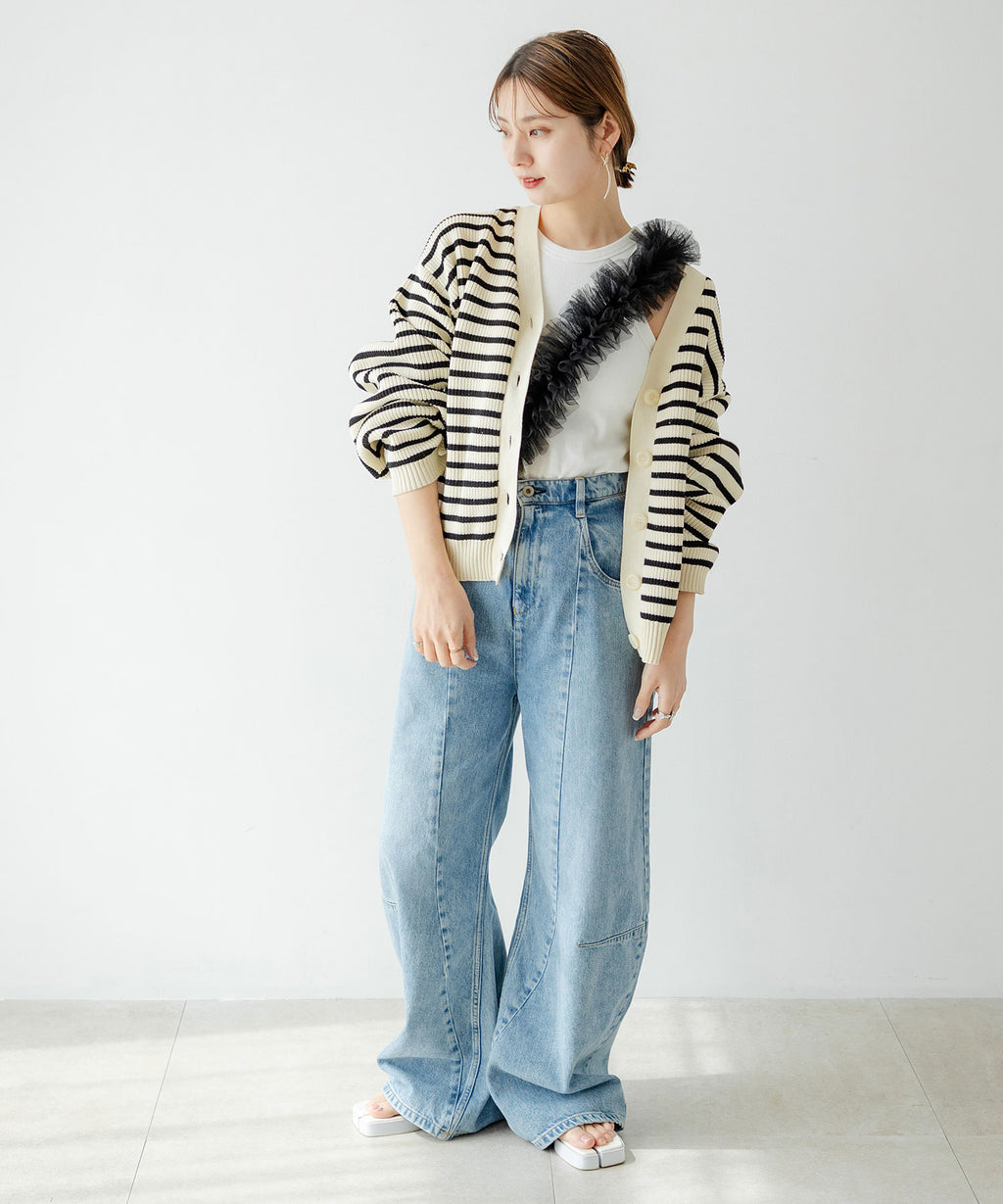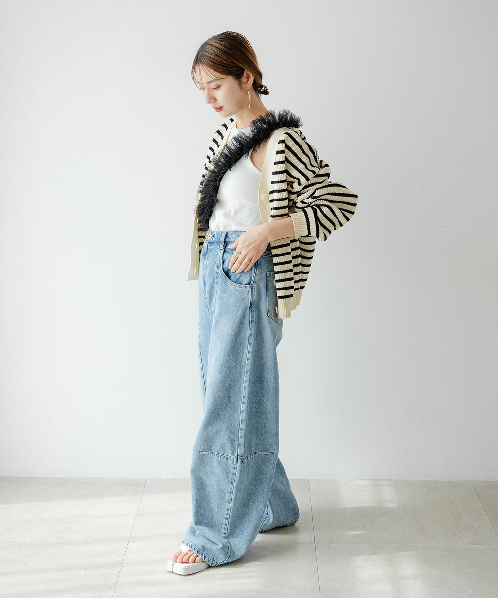 長すぎない丈感なので、きれいめに着こなしていただけます。