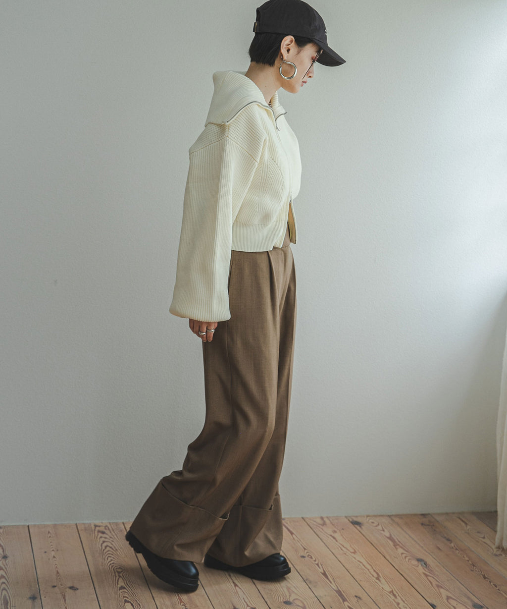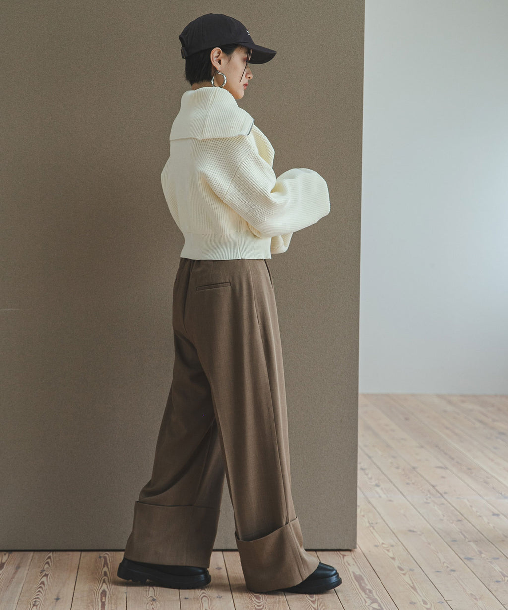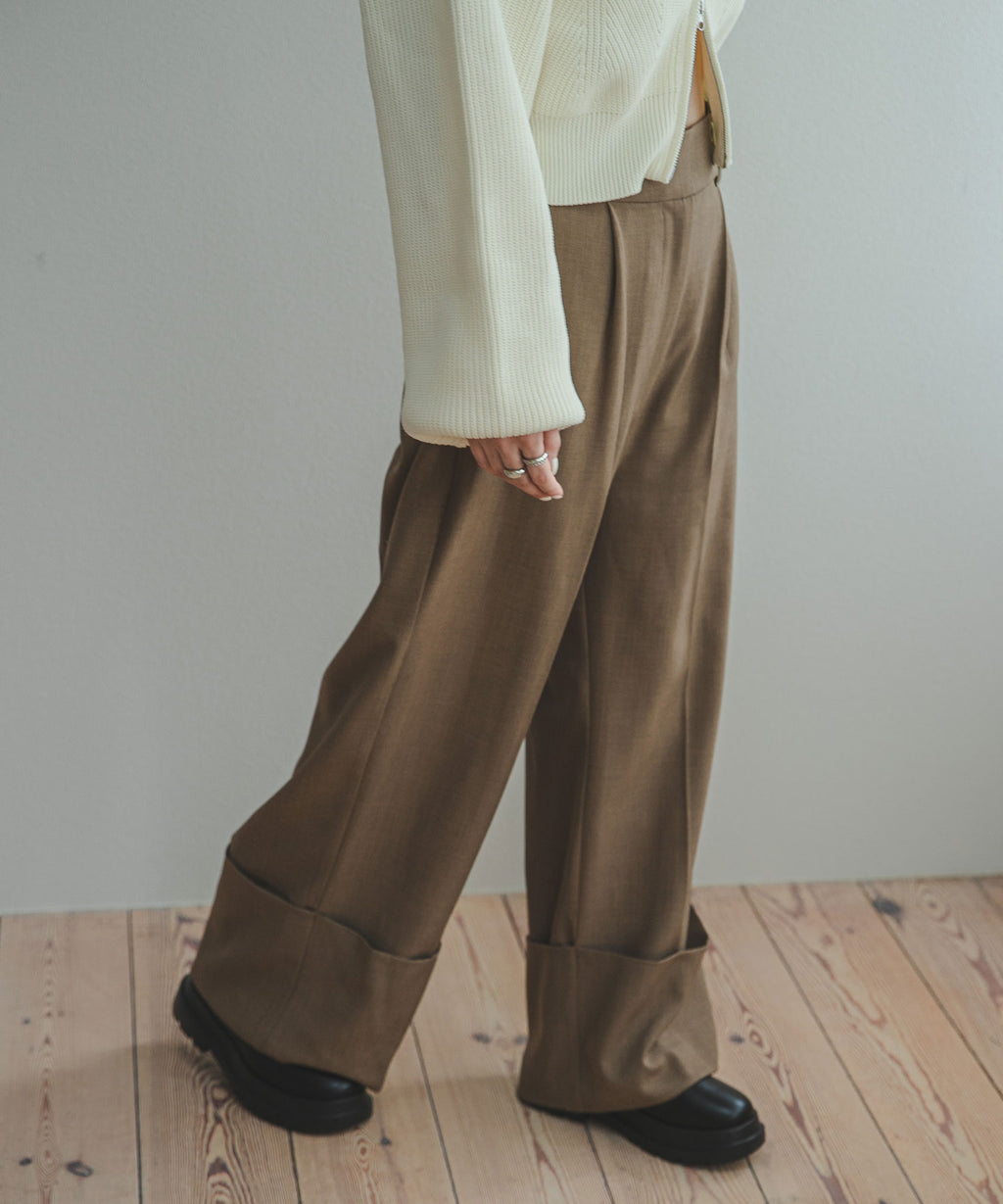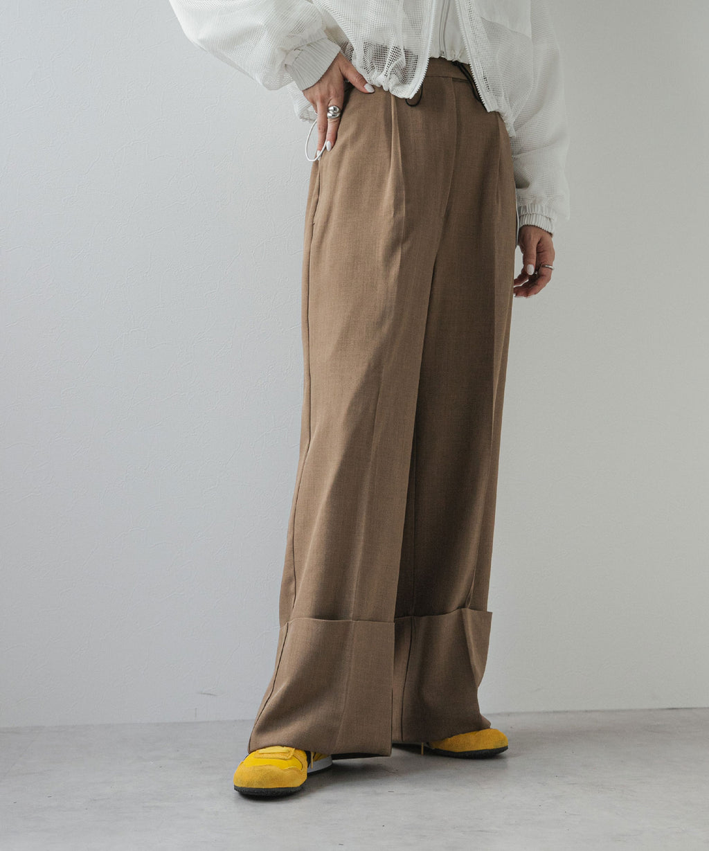 細すぎず太すぎないシルエットと幅広のロールアップが特徴の美脚パンツ。