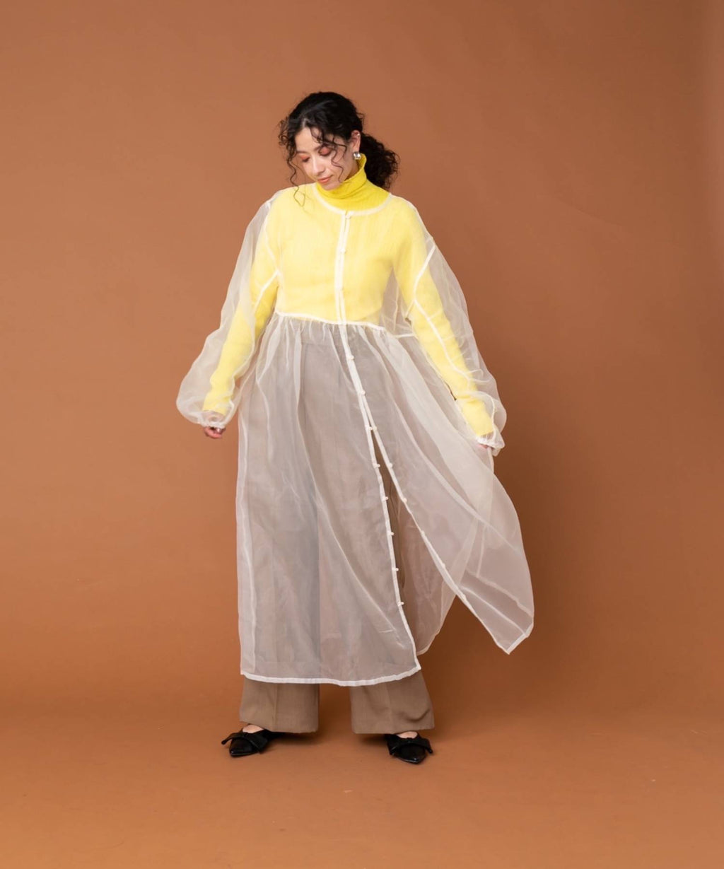 シアーやチュールなどの透け素材と合わすとヘルシーな印象に。