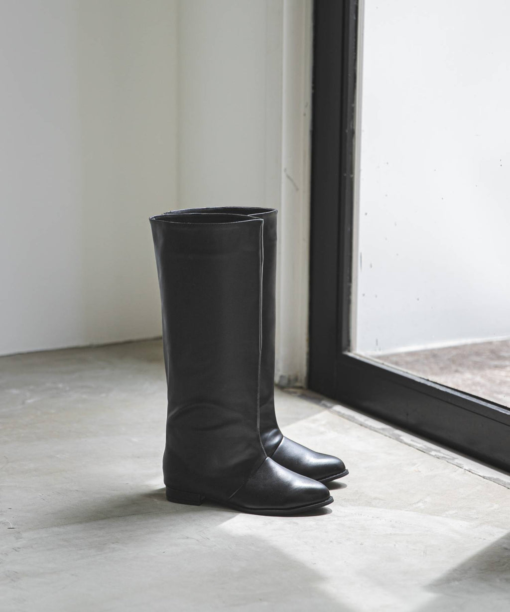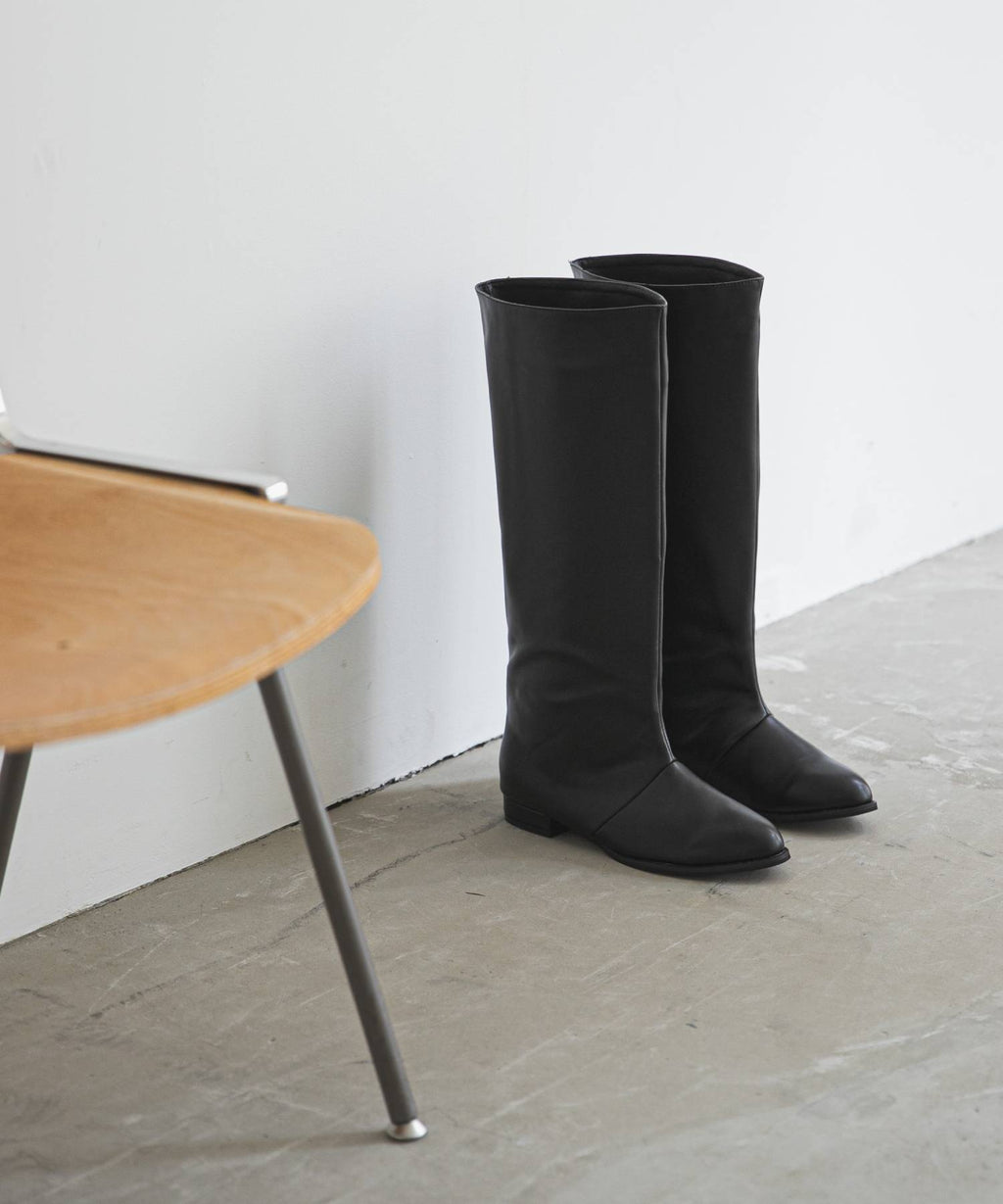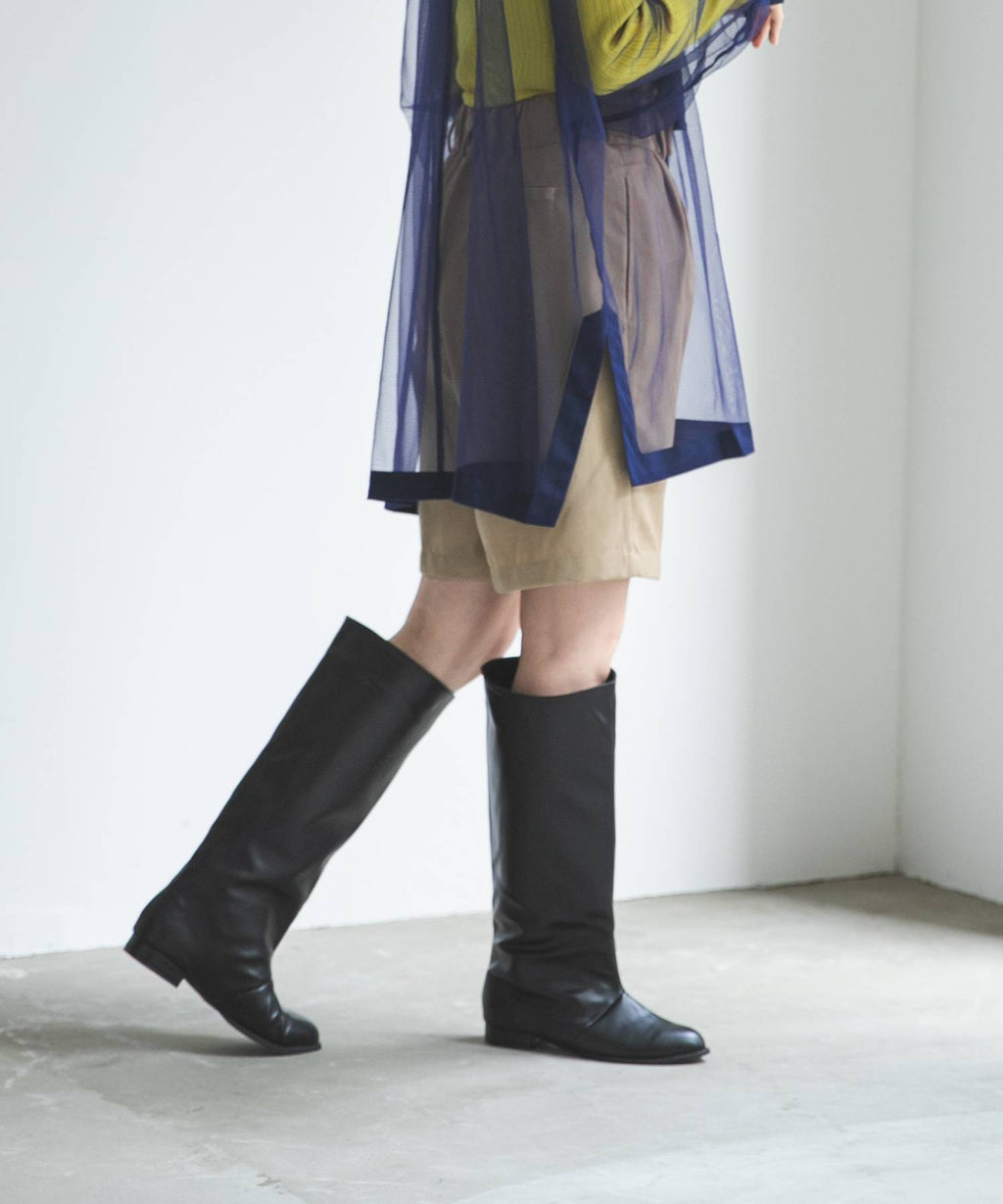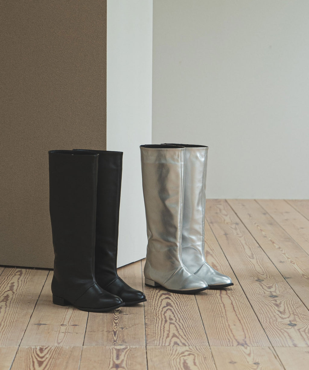 ストレートなワイドシャフトが旬の足元に導いてくれるロングブーツ。