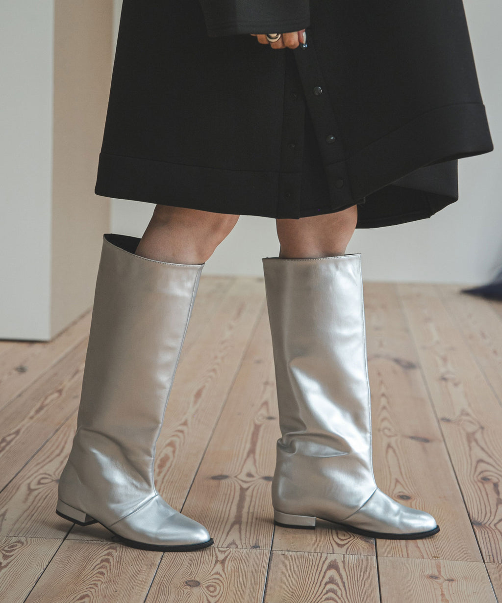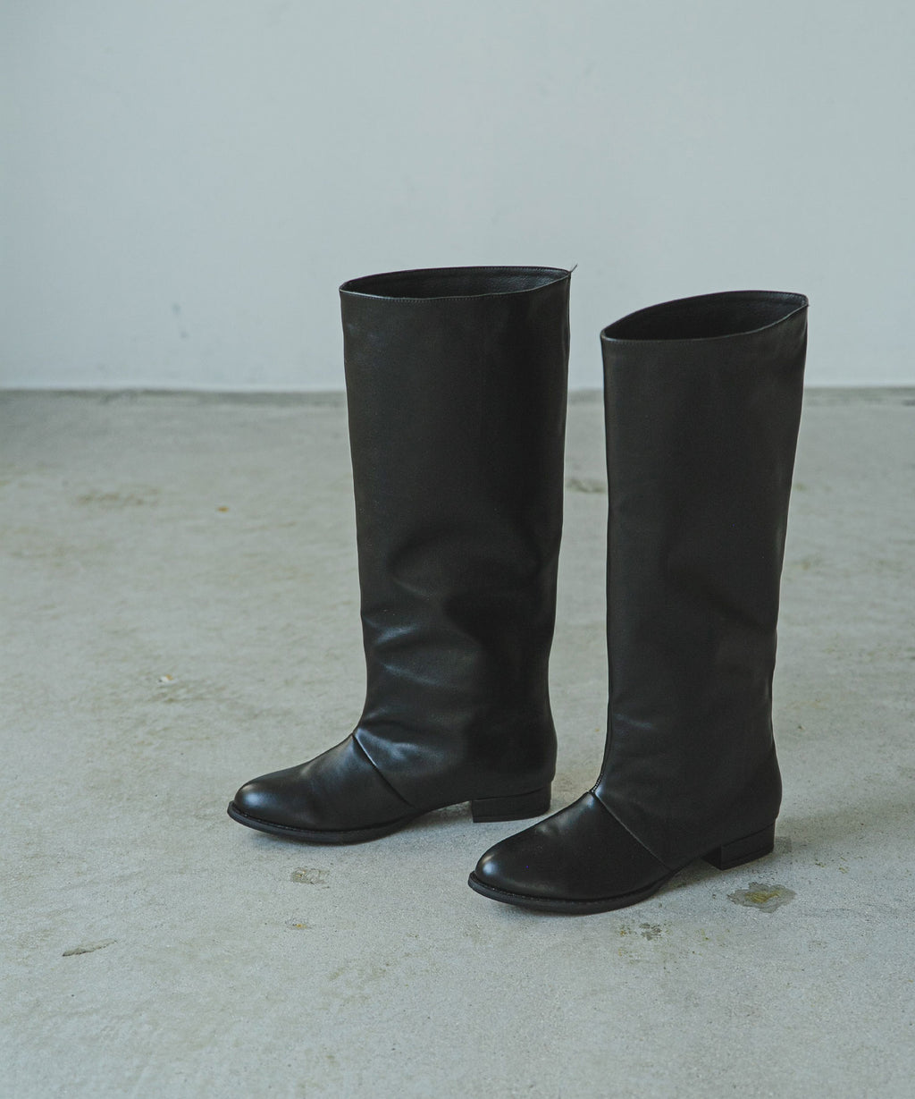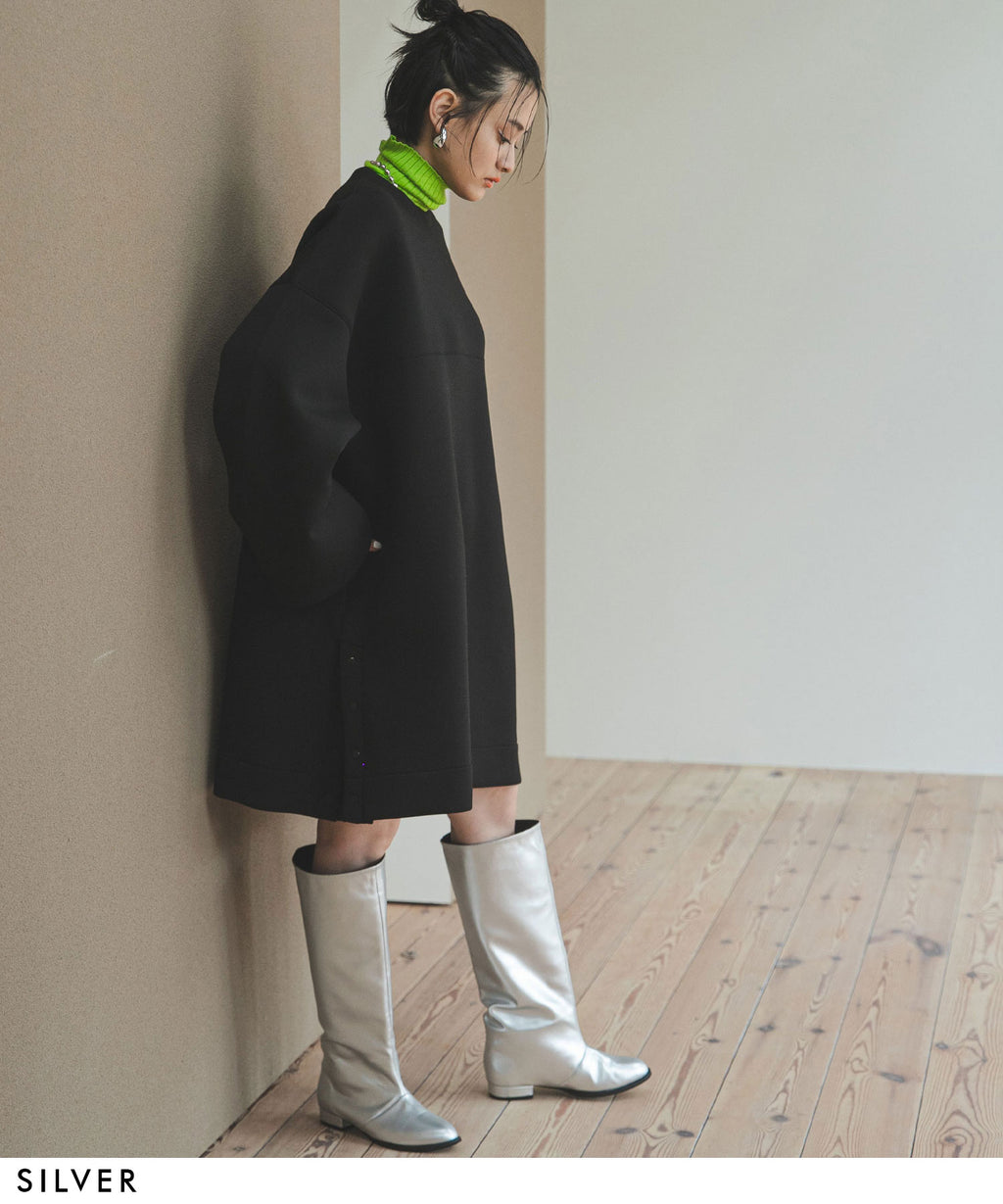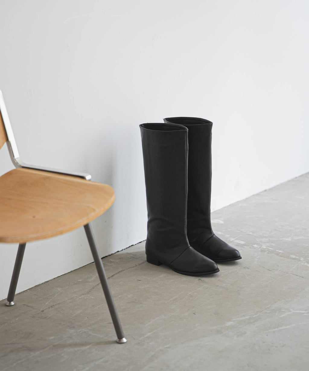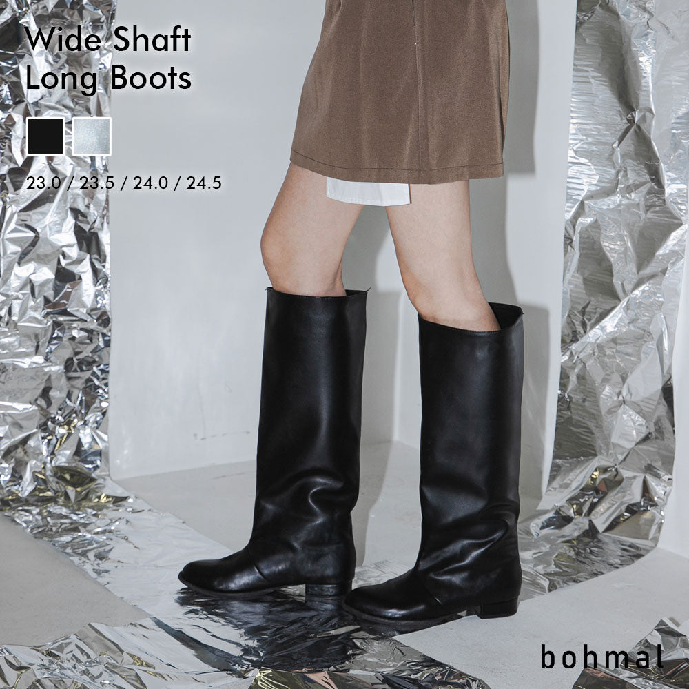 ストレートなワイドシャフトが旬の足元に導いてくれるロングブーツ。