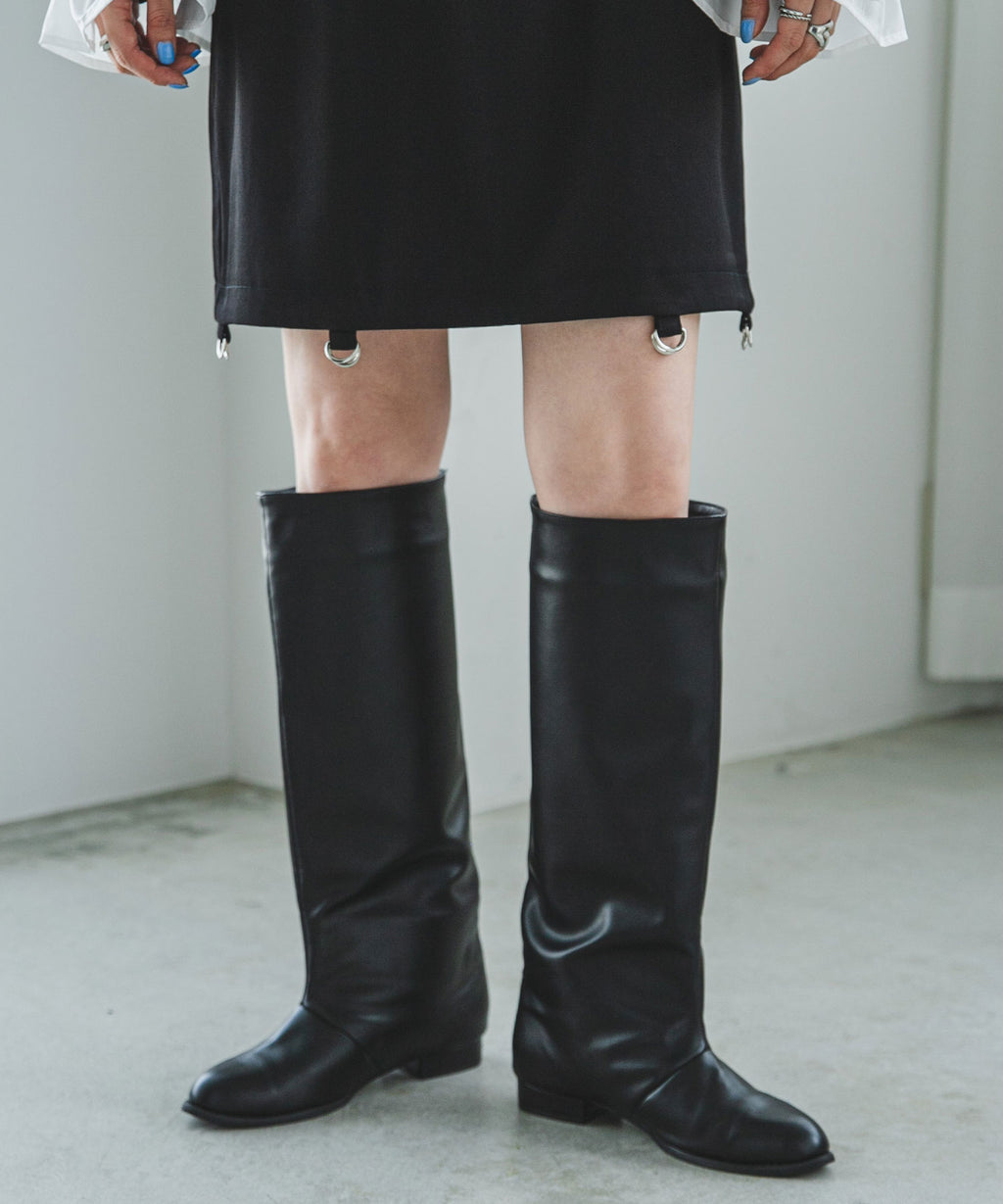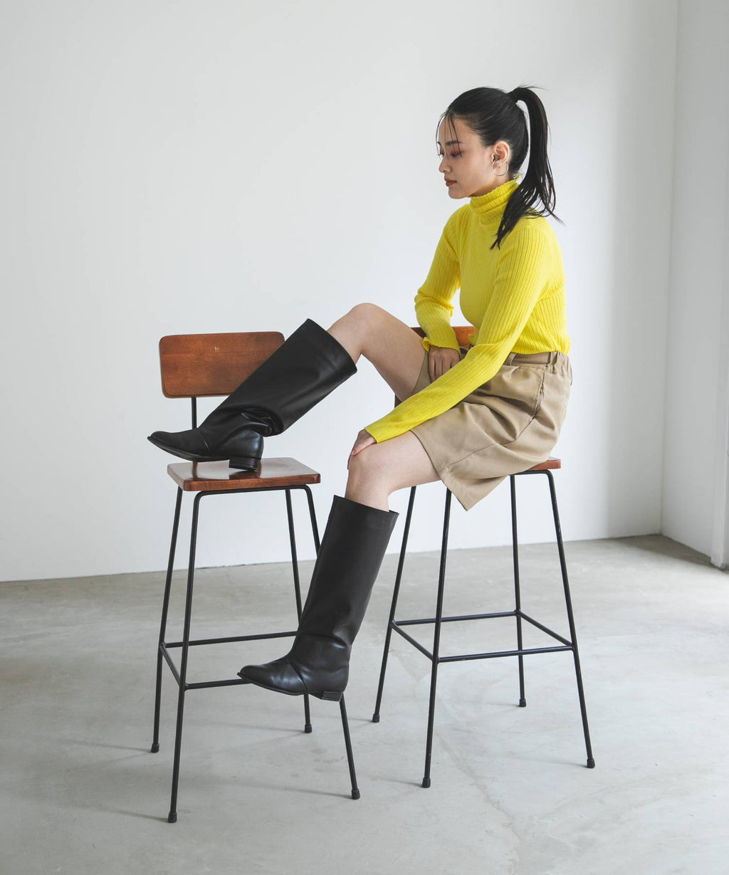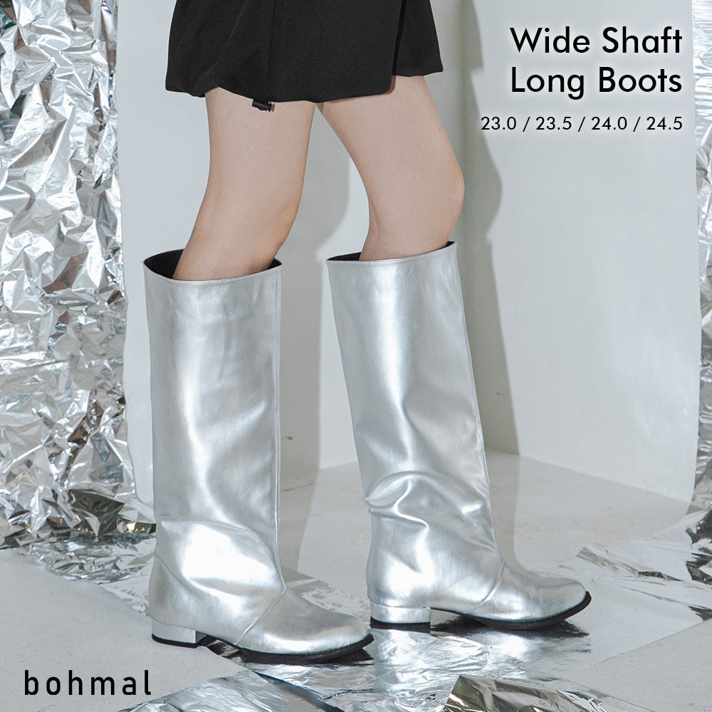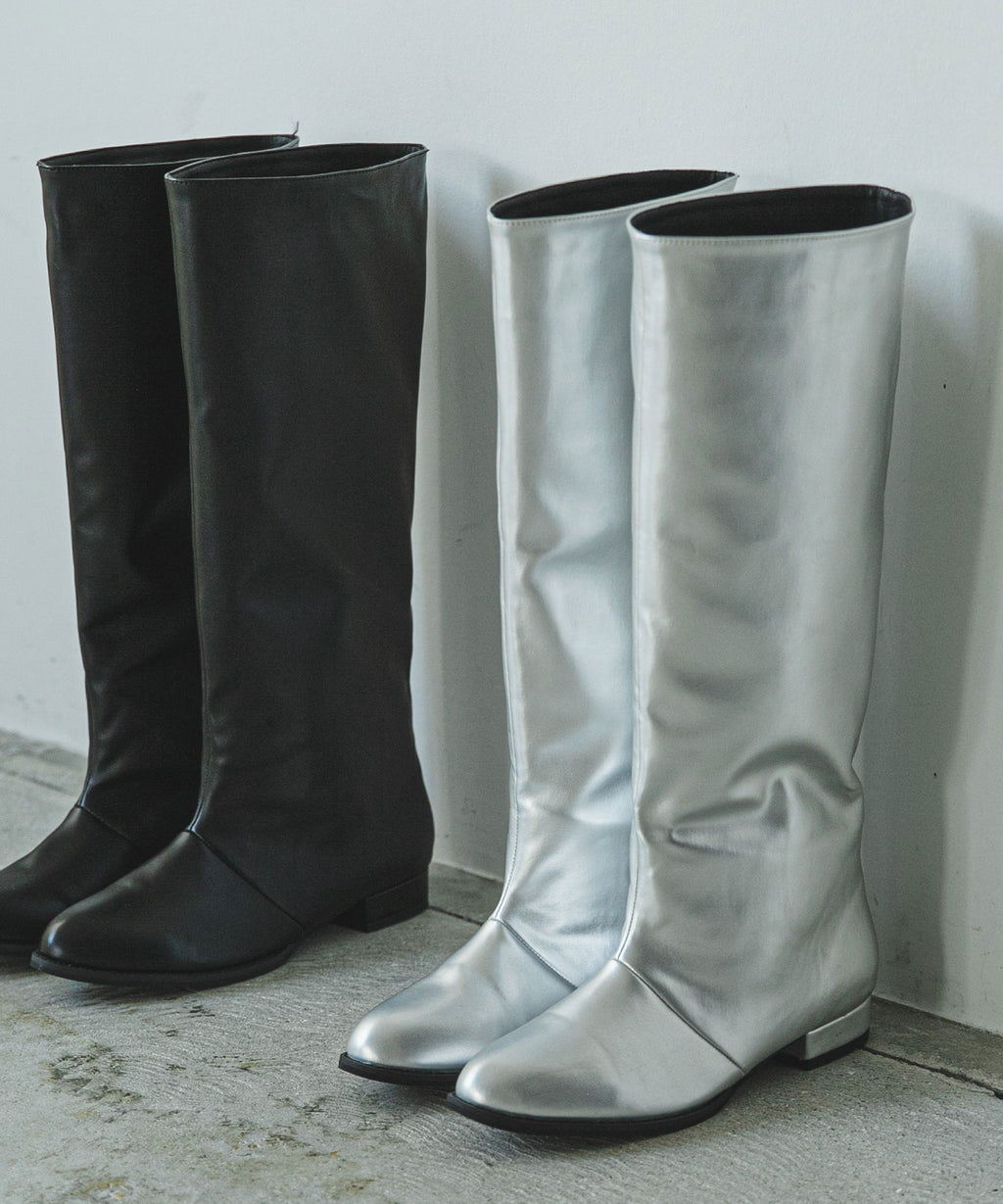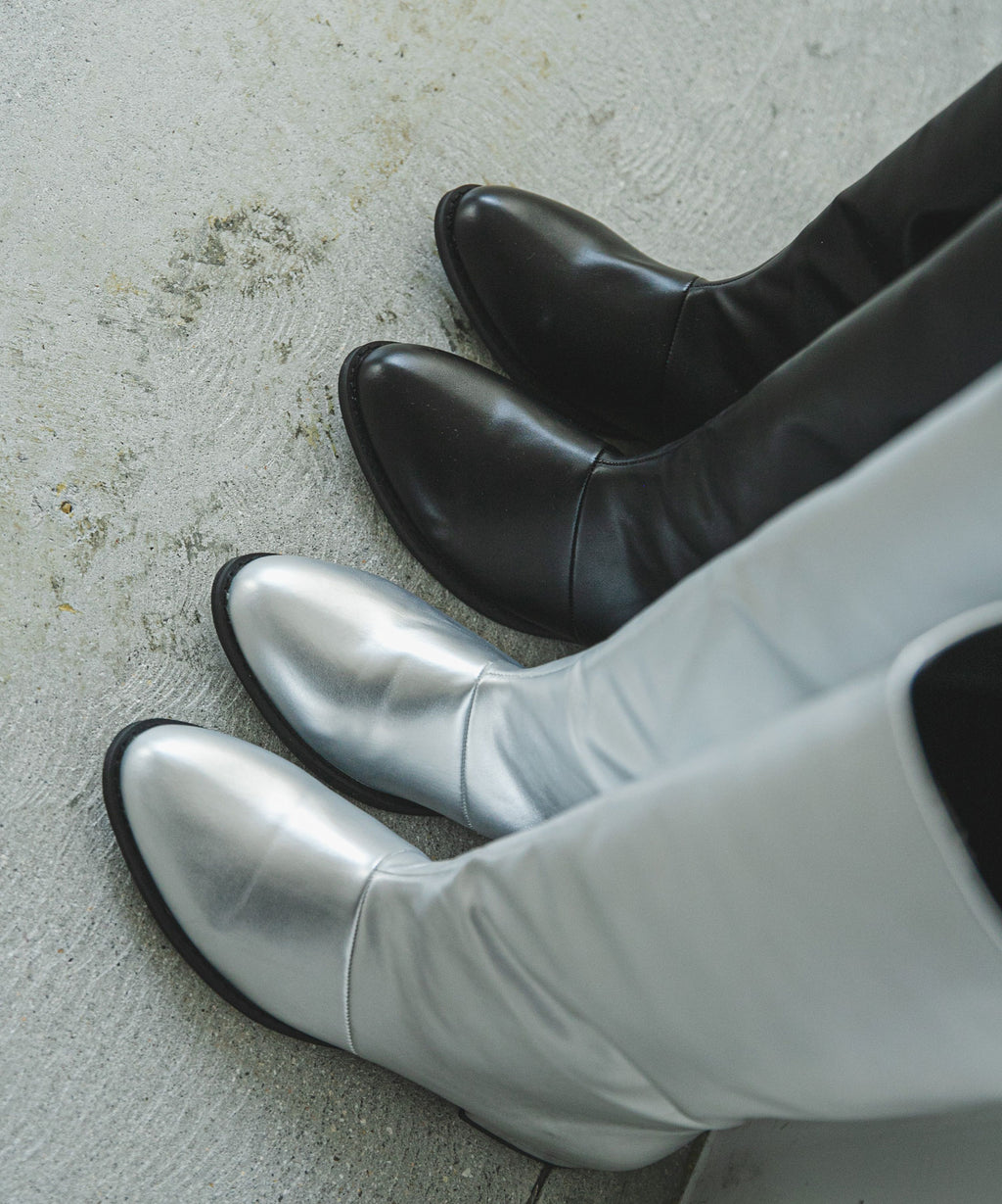 ストレートなワイドシャフトが旬の足元に導いてくれるロングブーツ。
