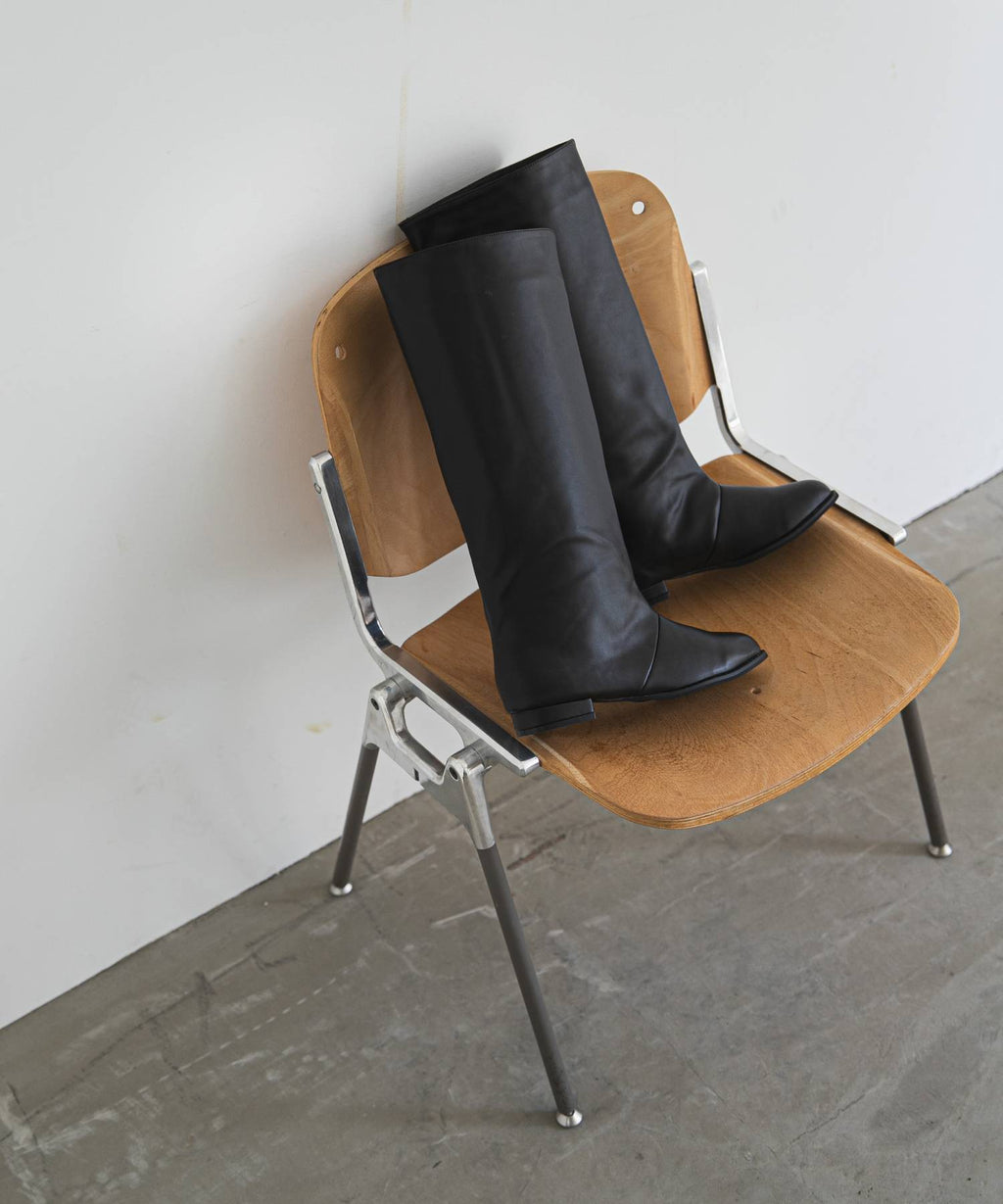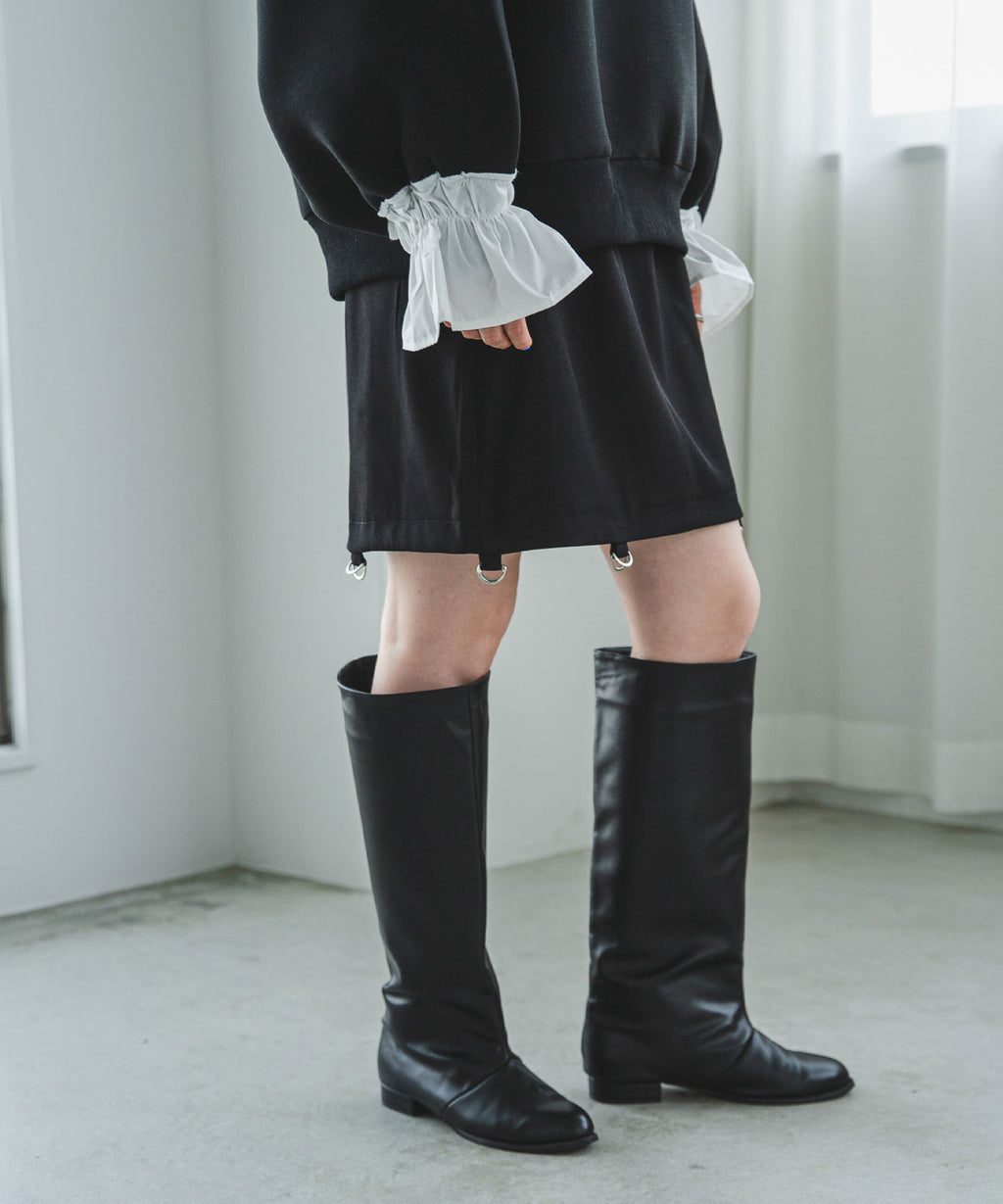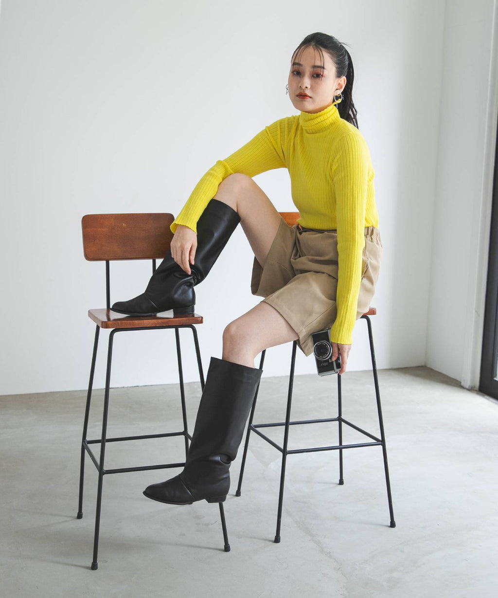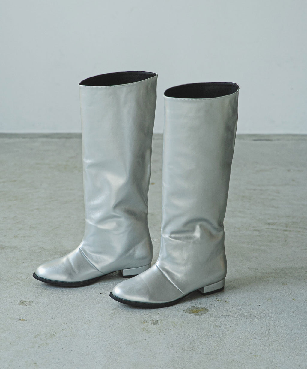 ストレートなワイドシャフトが旬の足元に導いてくれるロングブーツ。