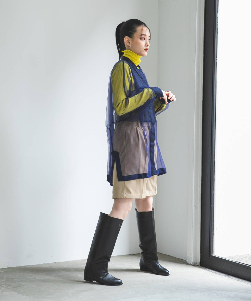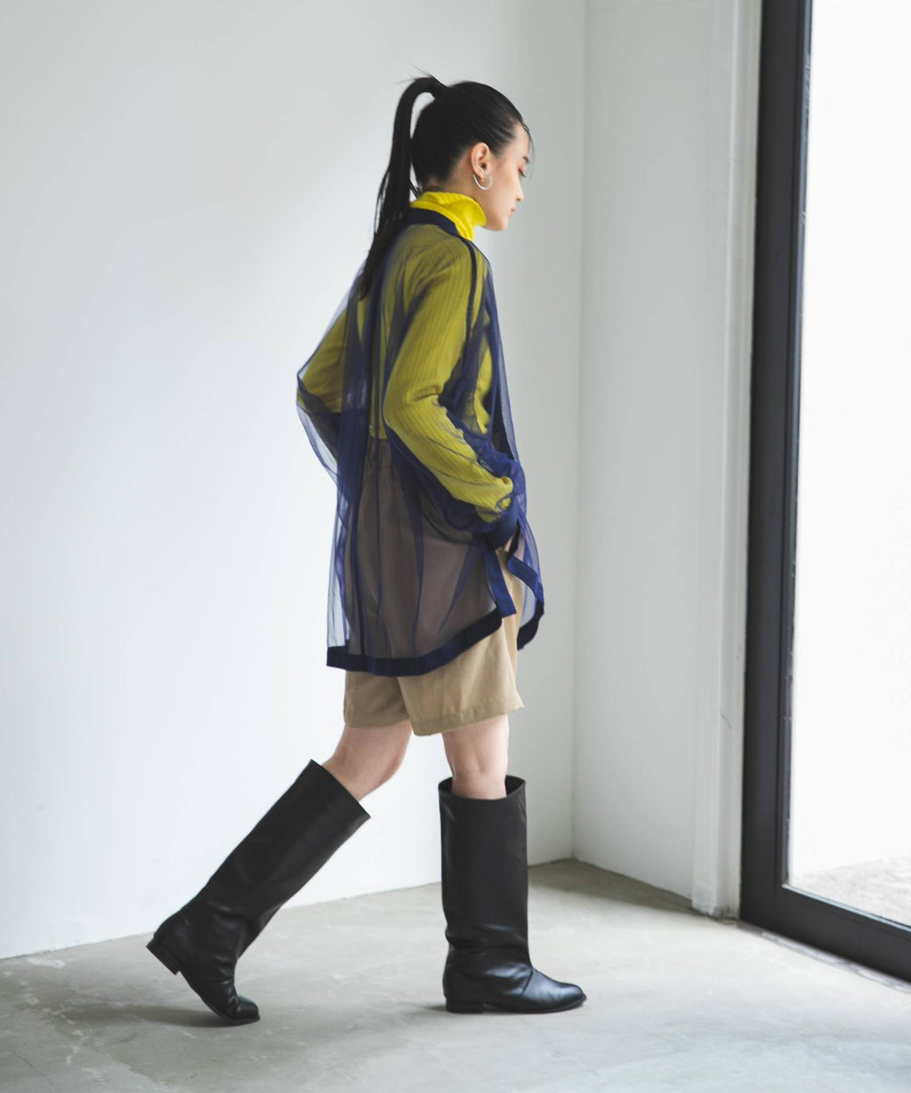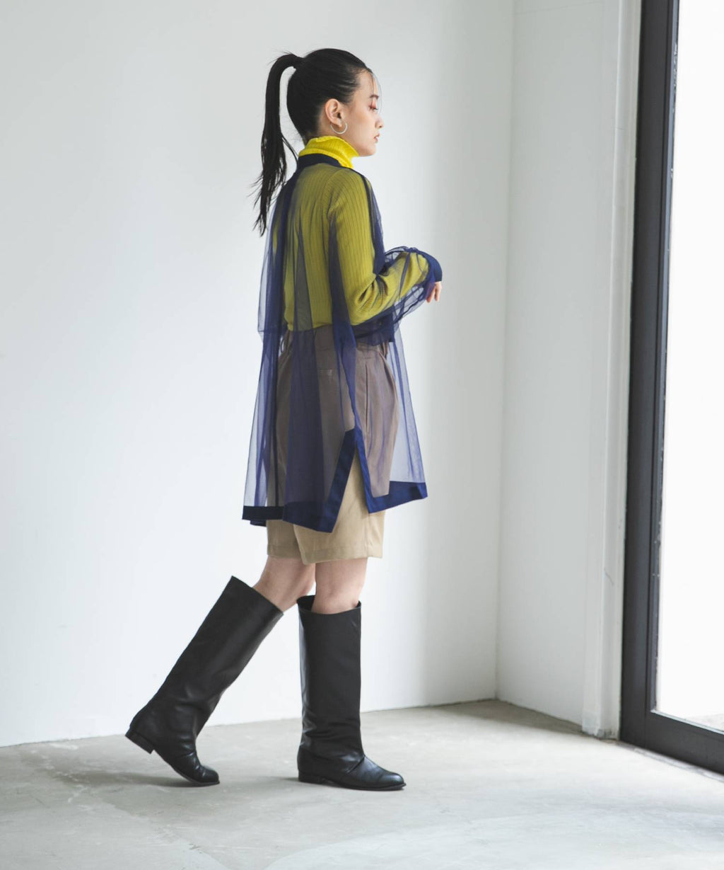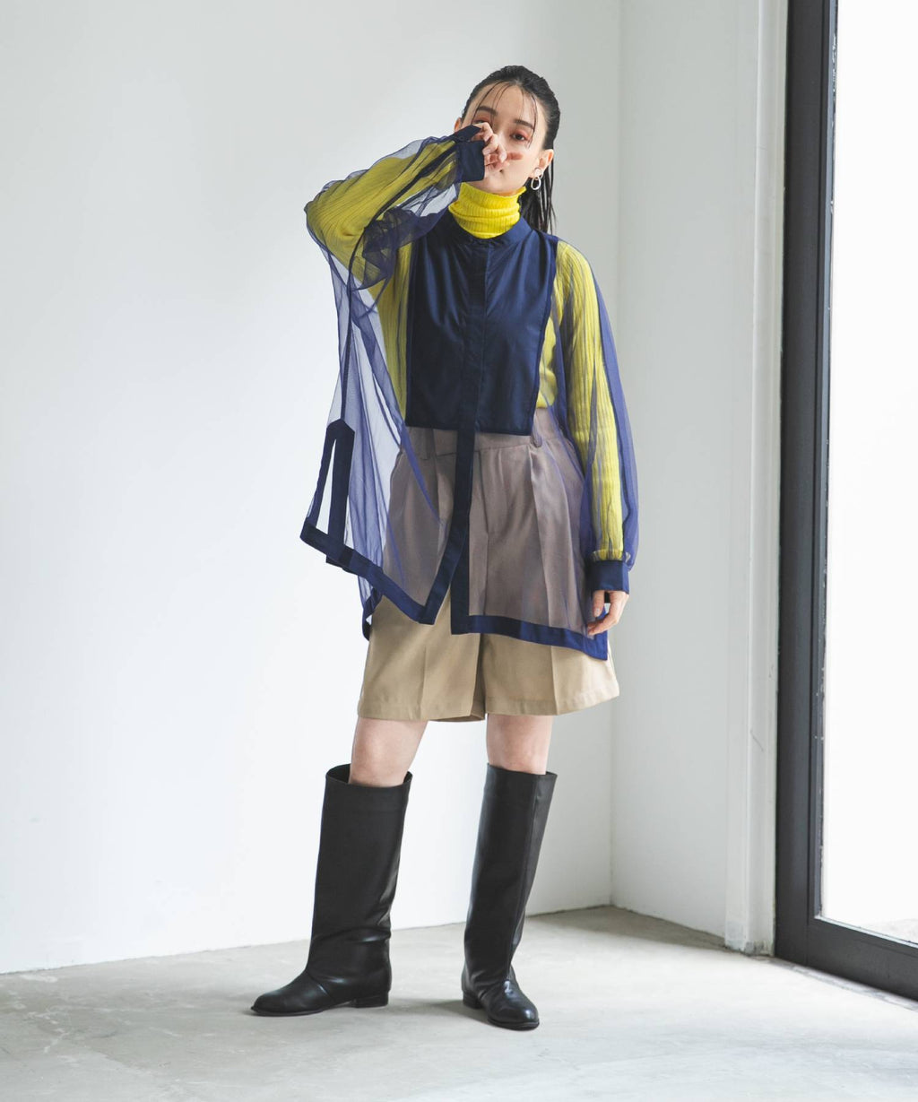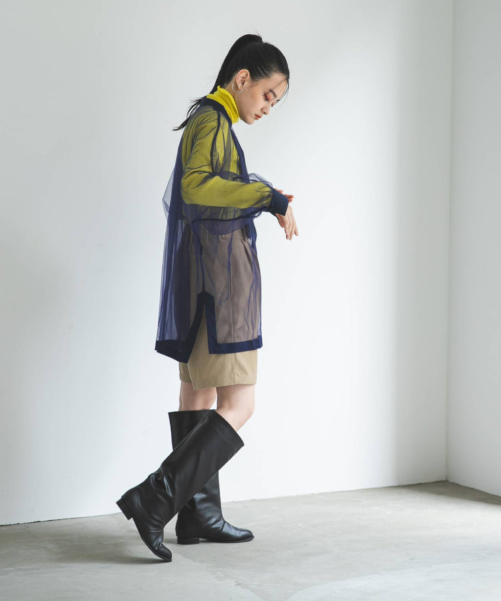 ミニ丈や膝丈のショートボトムとの合わせがおすすめ。