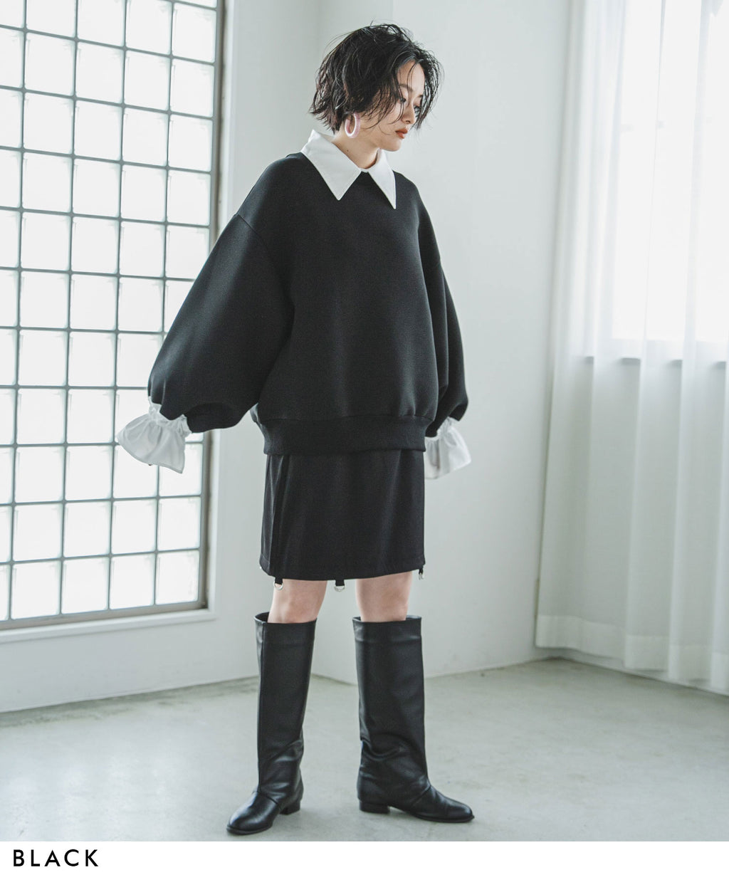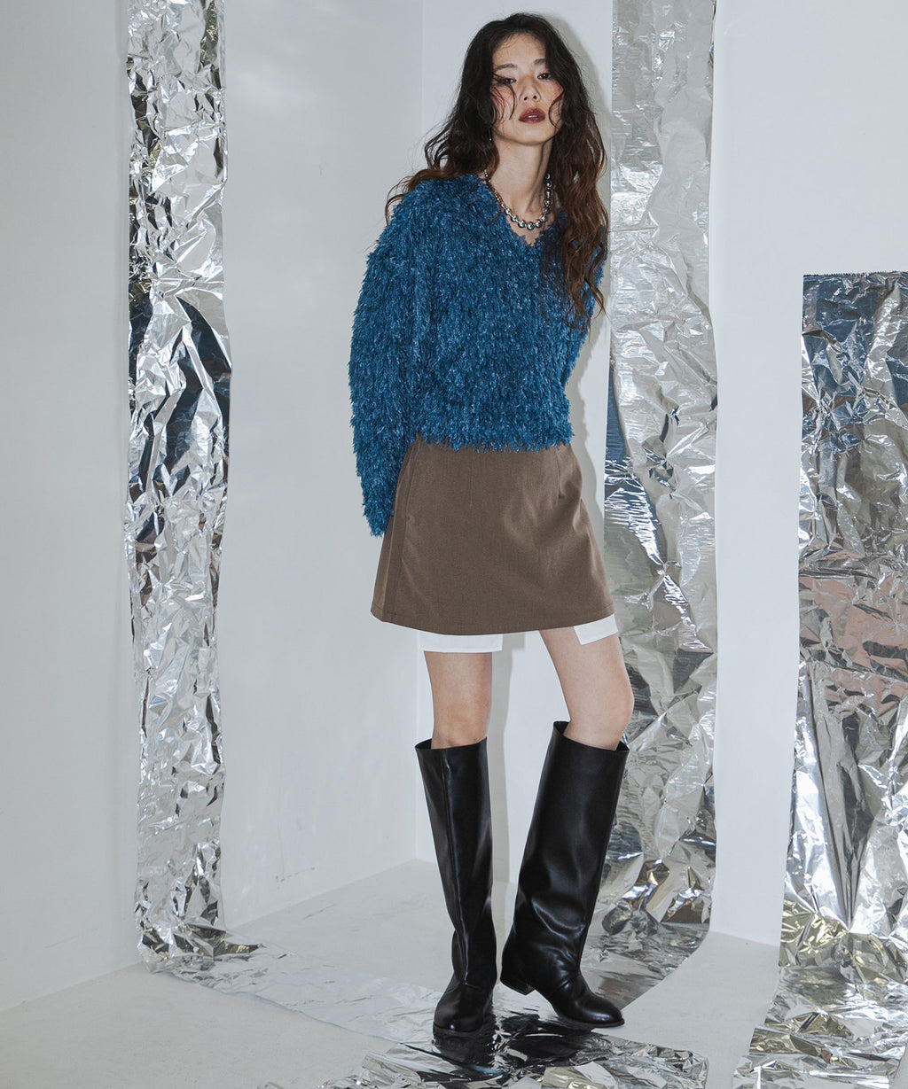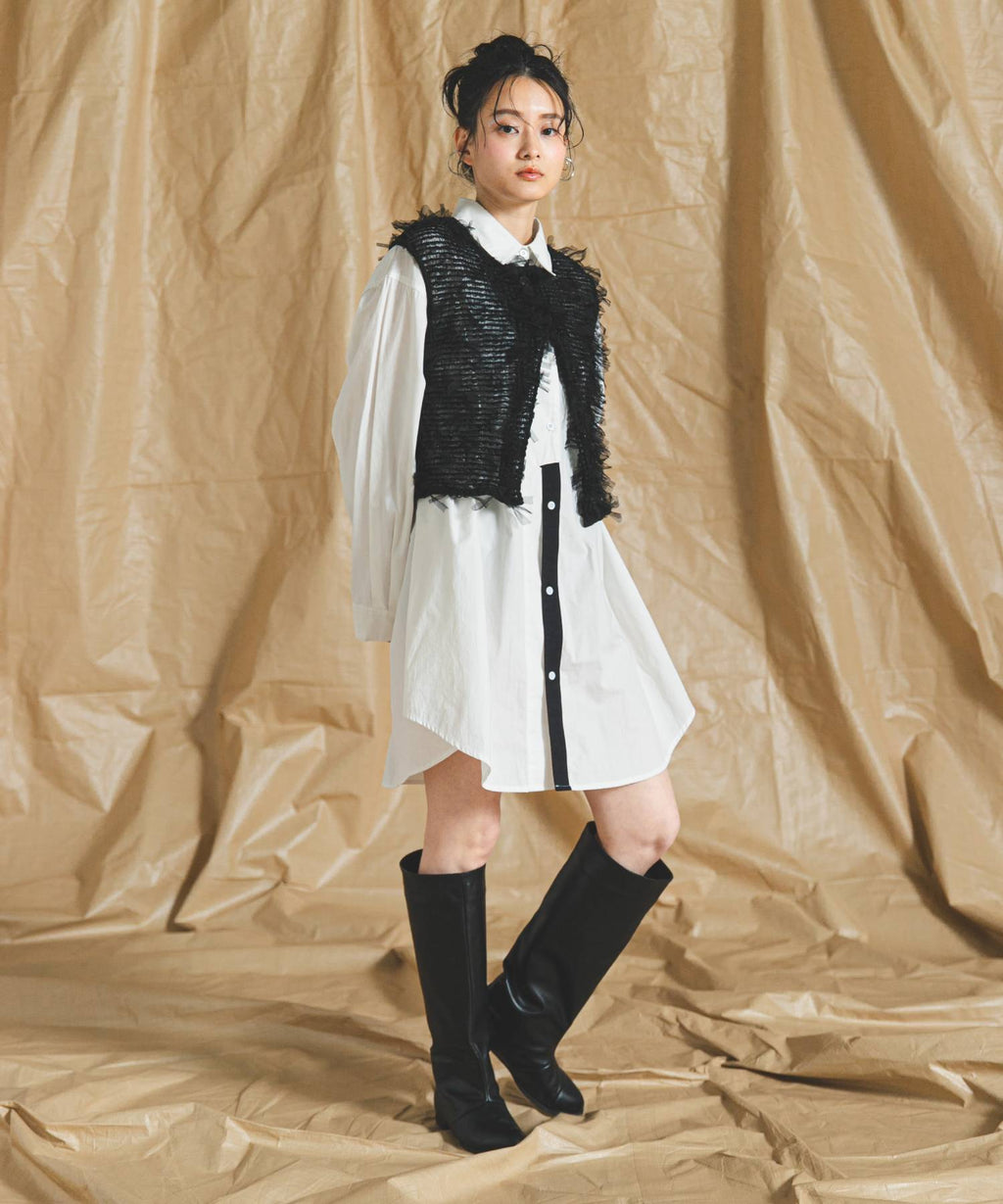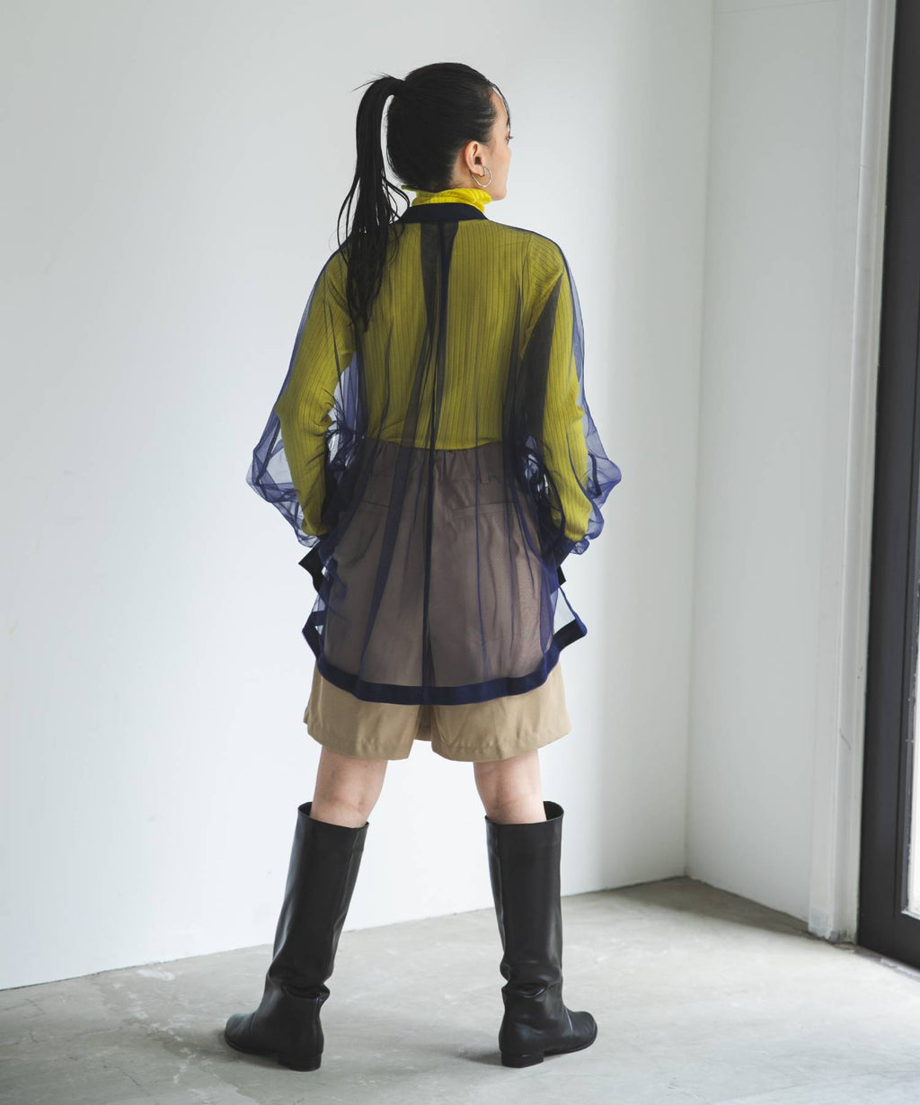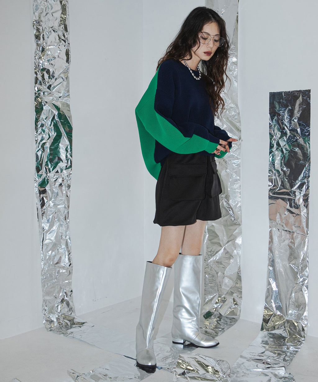 ミニ丈や膝丈のショートボトムとの合わせがおすすめ。