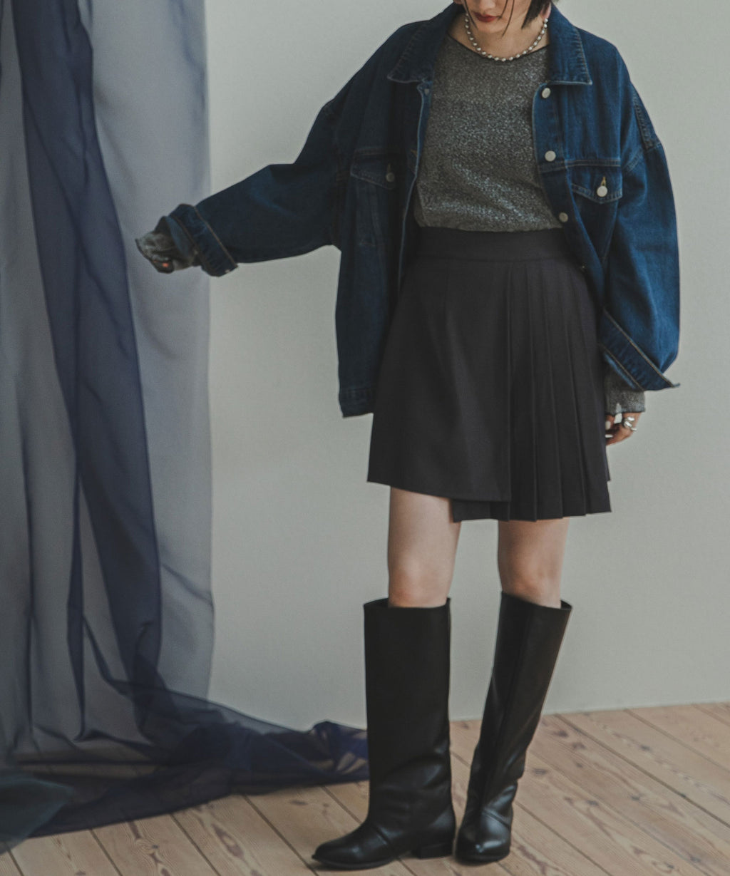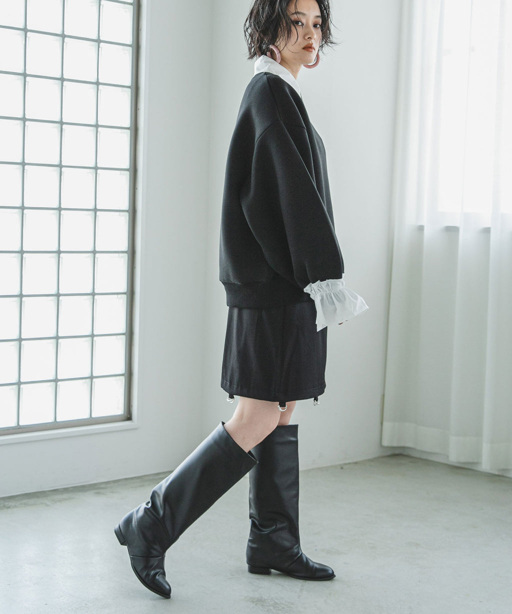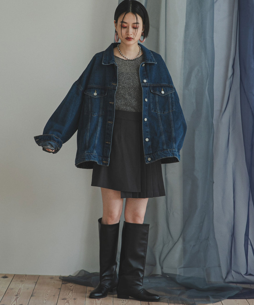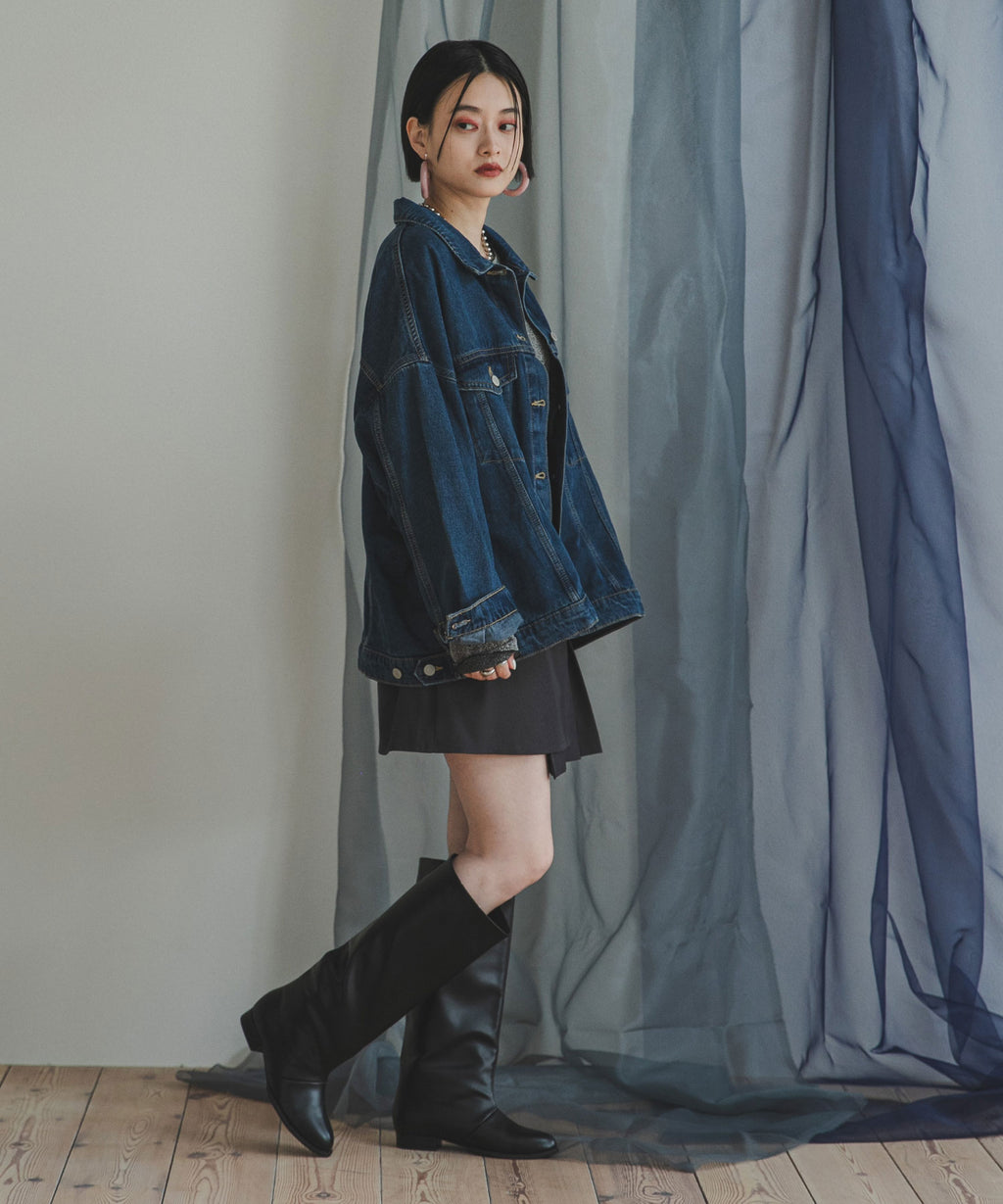 オーバーサイズのストレートシルエットだから、スキニーのブーツインスタイルもキマリます!