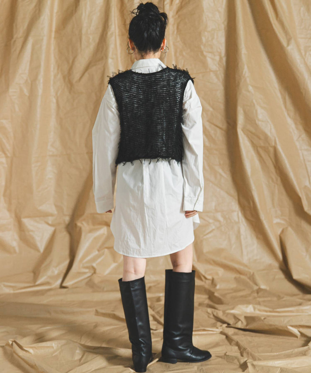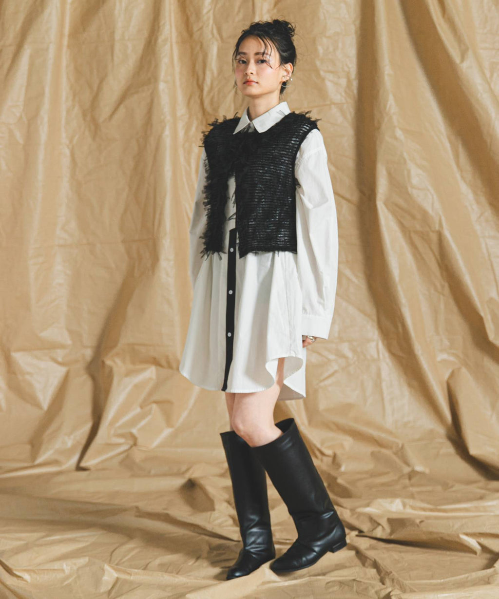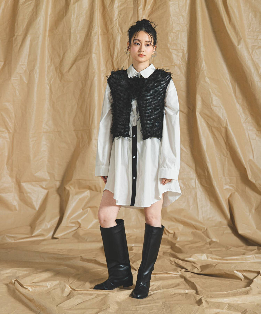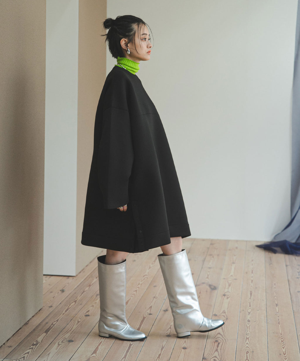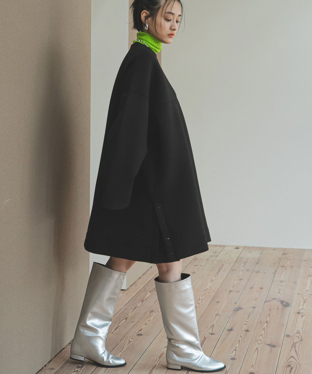 オーバーサイズのストレートシルエットだから、スキニーのブーツインスタイルもキマリます!
