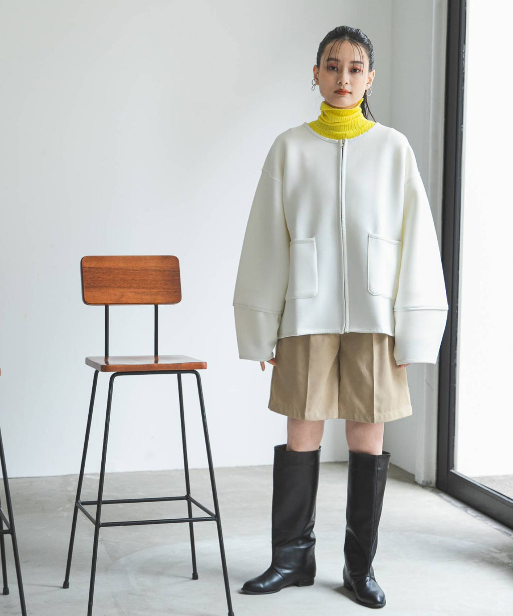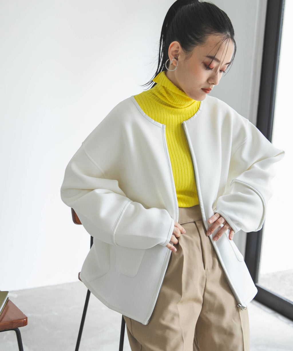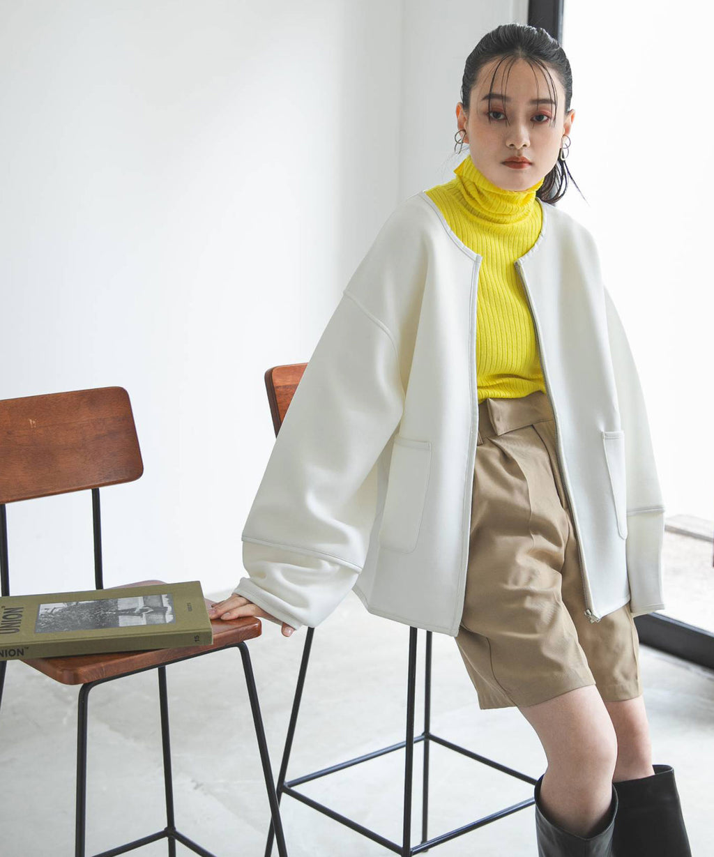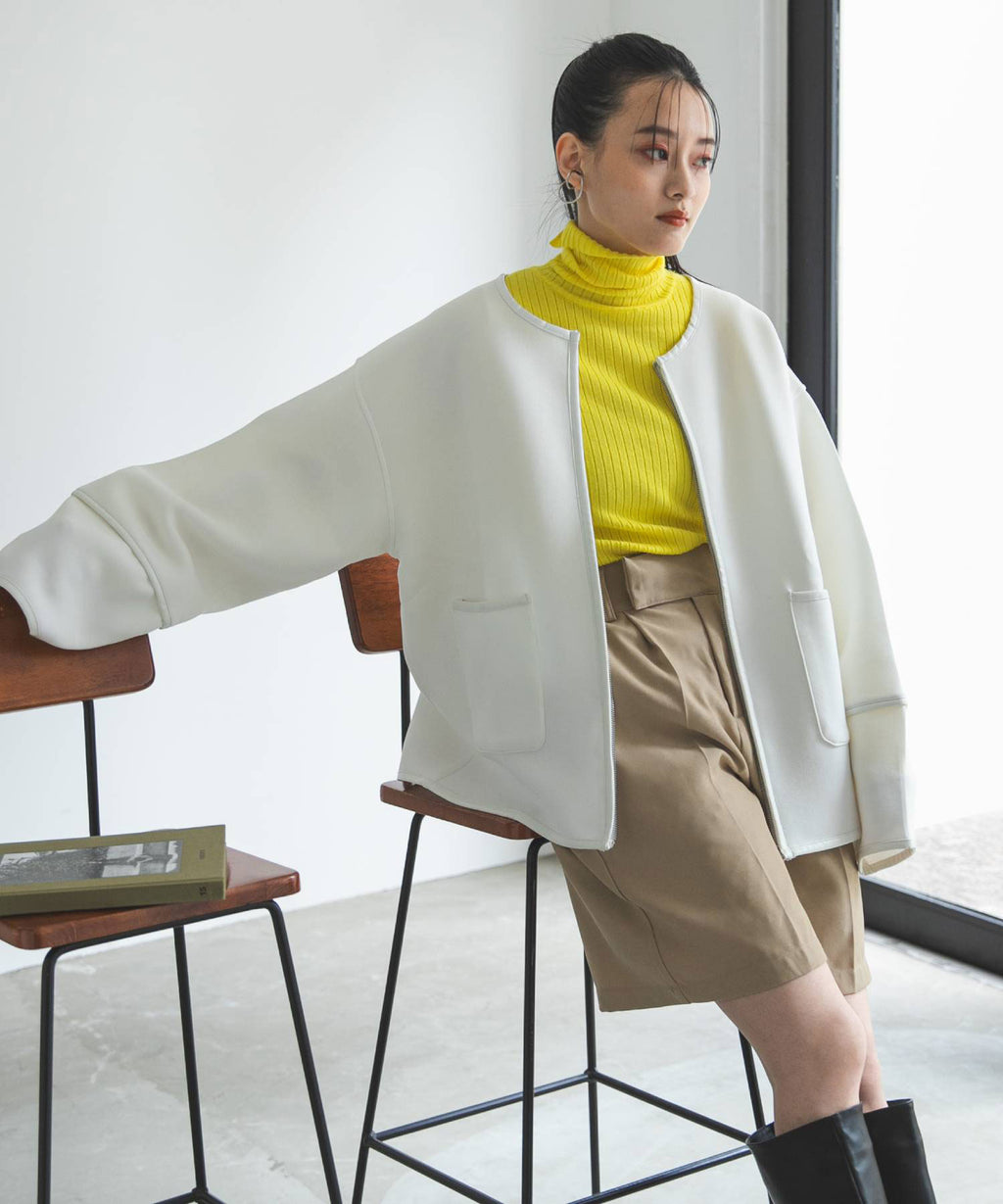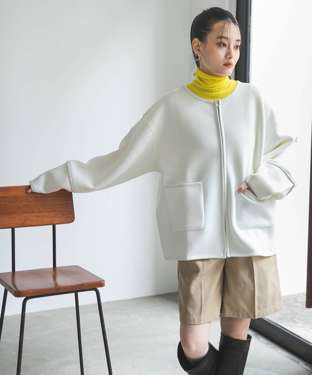 どんなコーデにでも1点投入しやすく、着回しの効くアウターです。