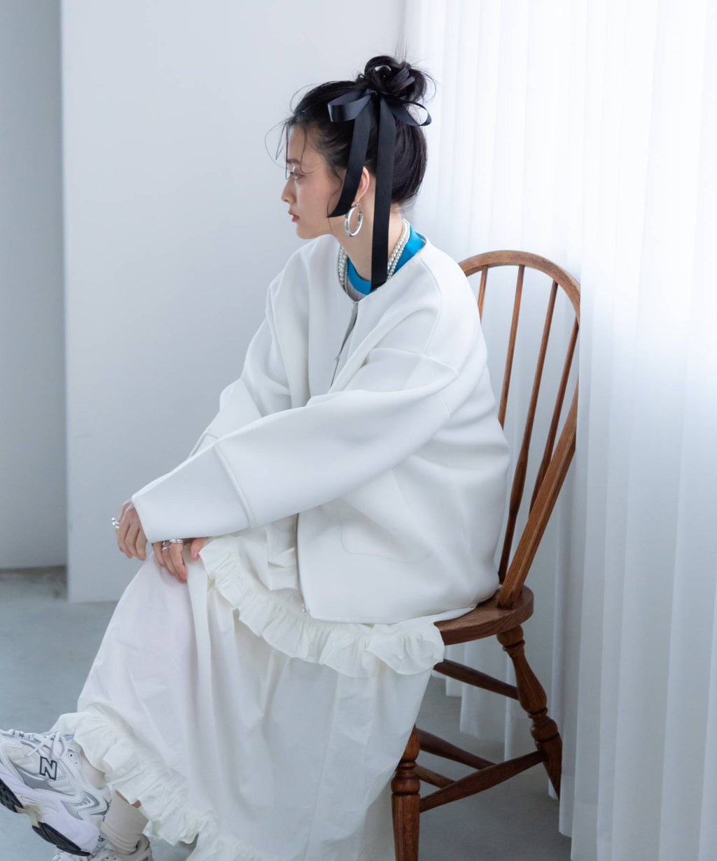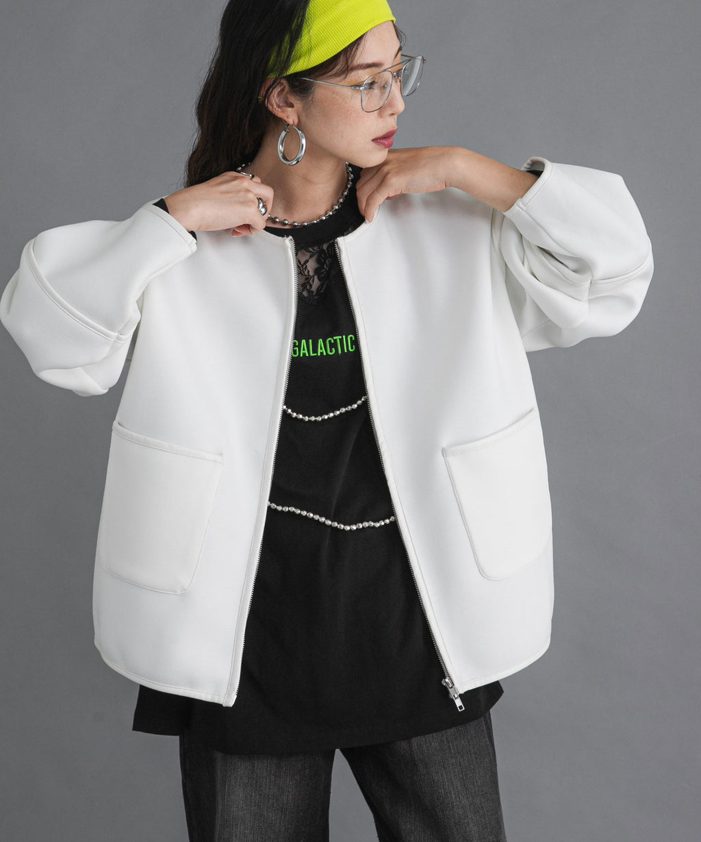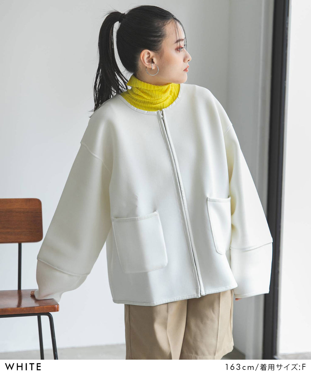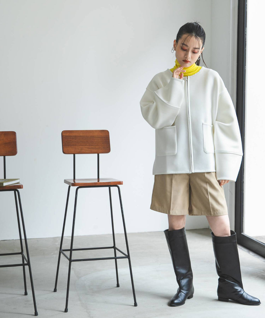 どんなコーデにでも1点投入しやすく、着回しの効くアウターです。