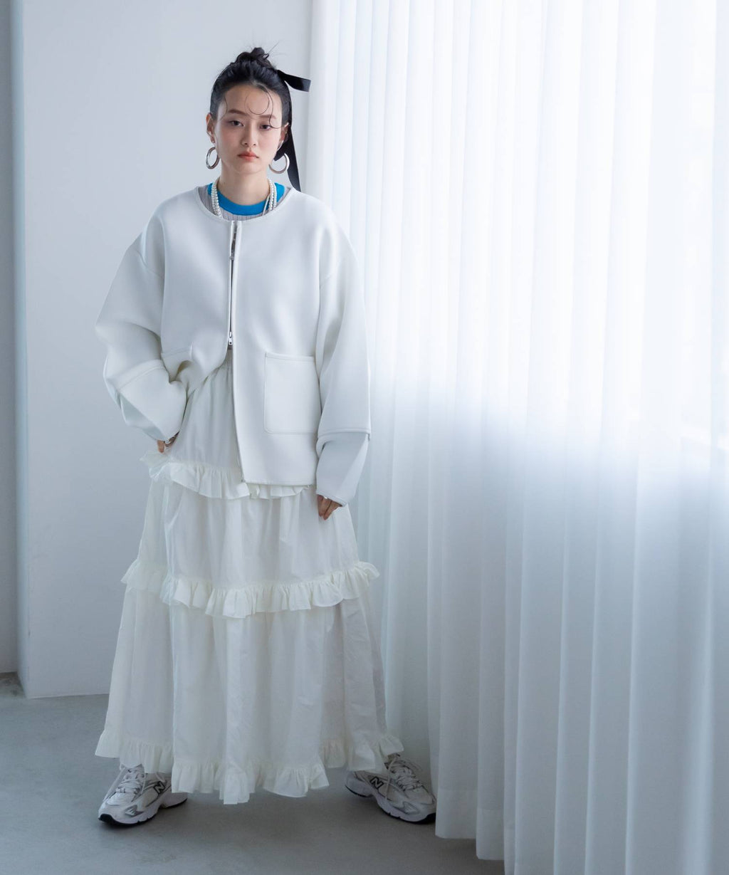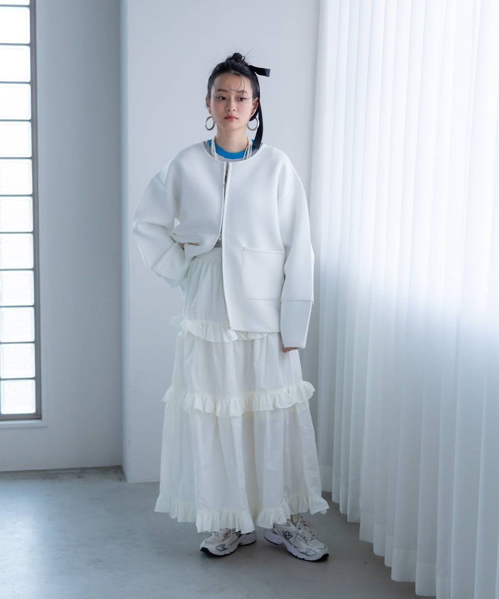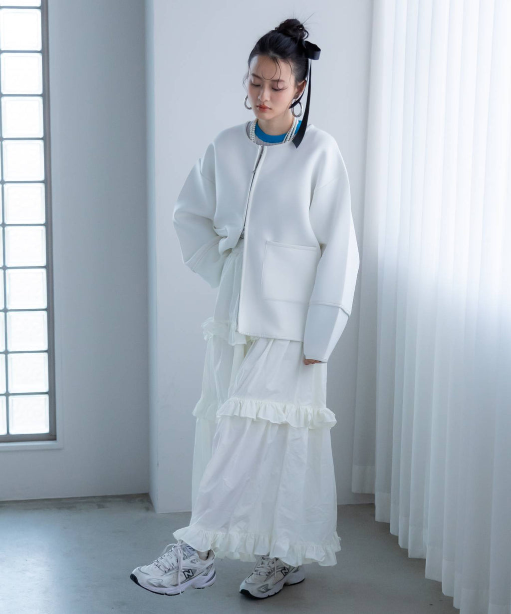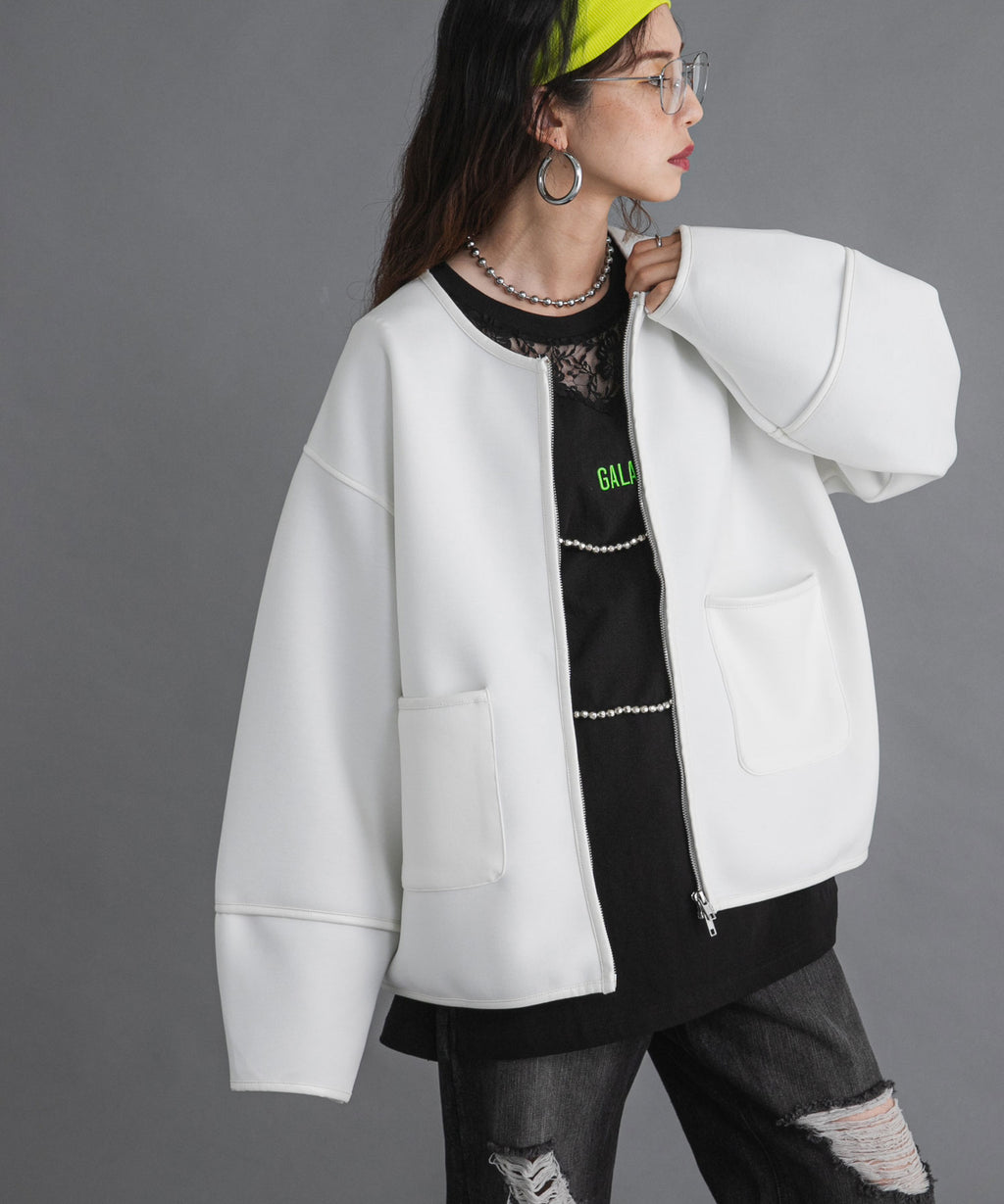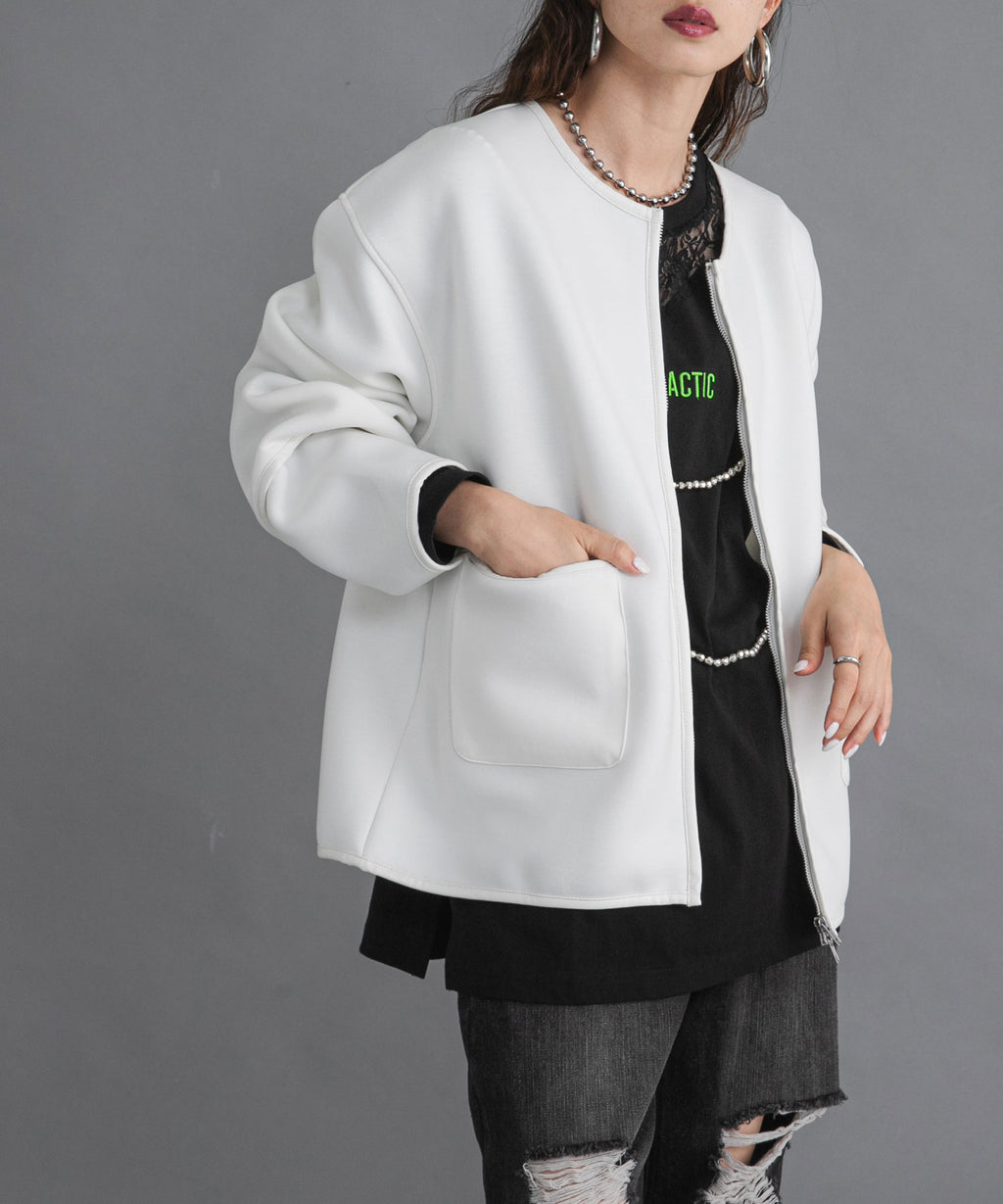 どんなコーデにでも1点投入しやすく、着回しの効くアウターです。