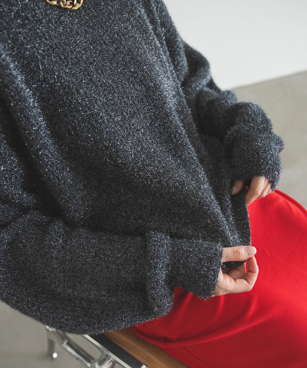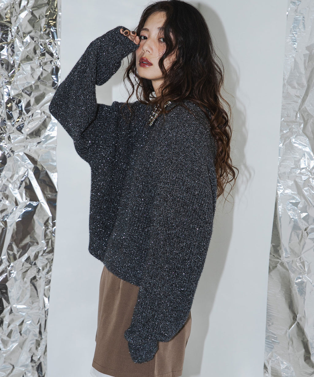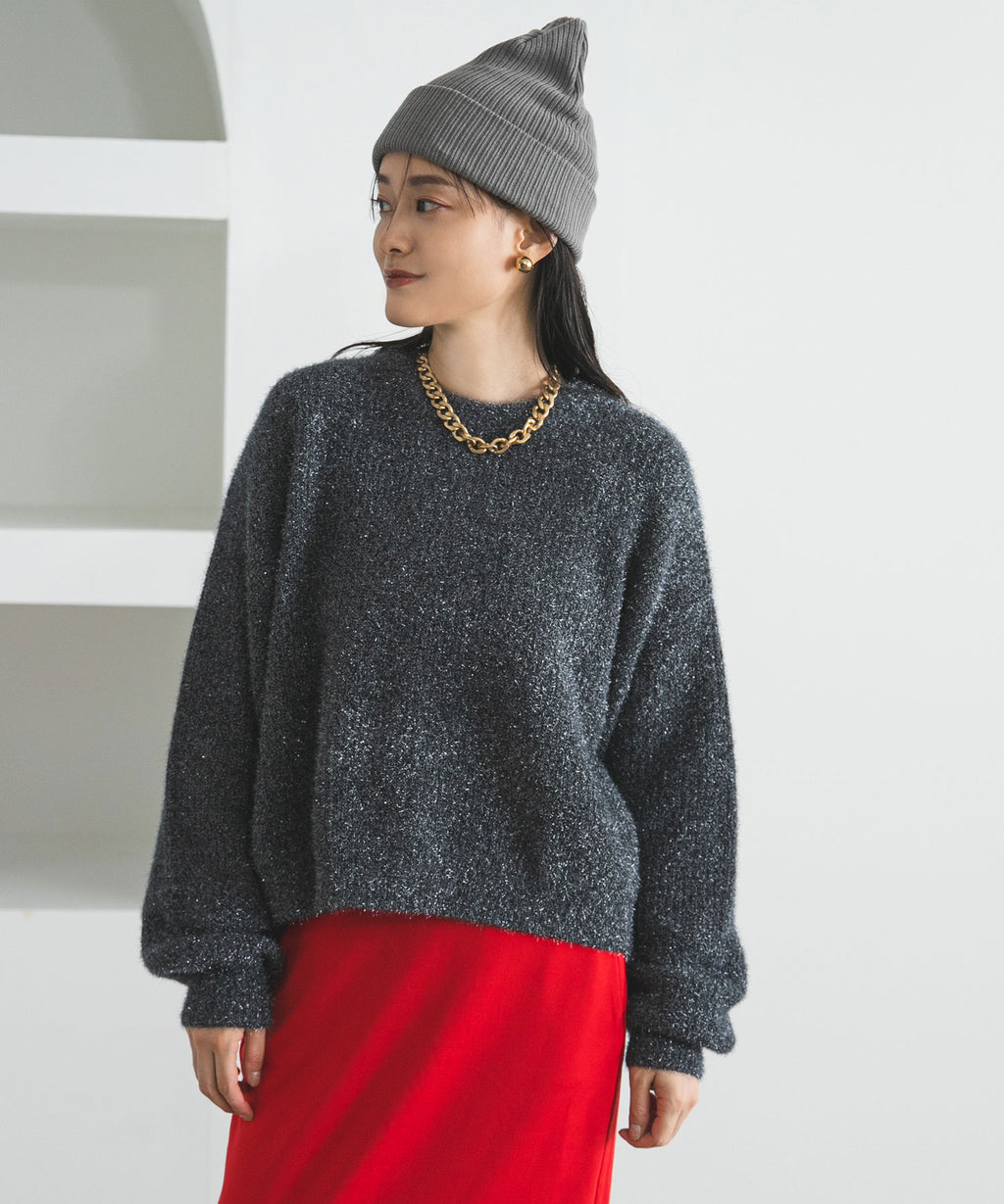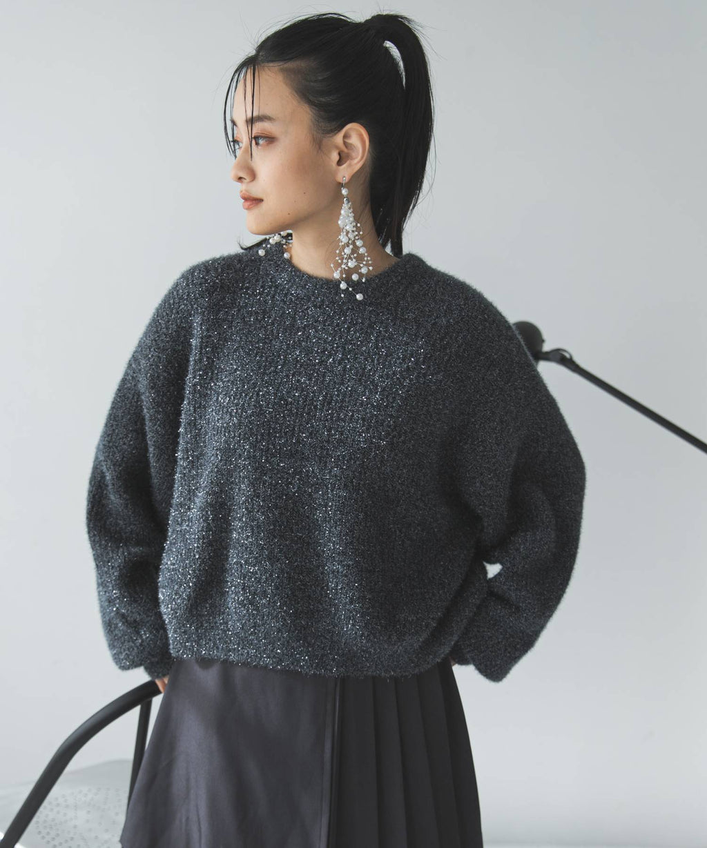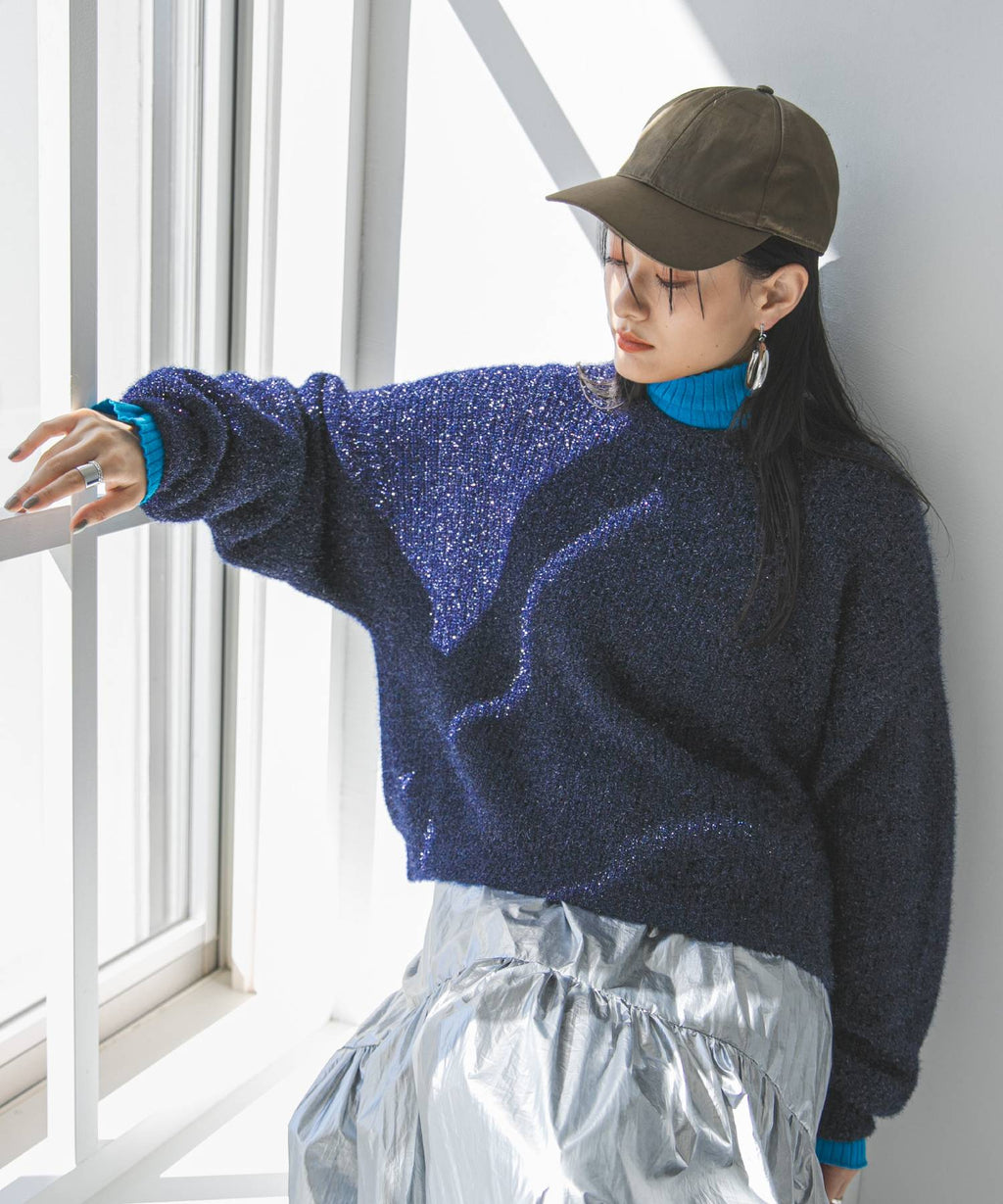 ラメが煌めくシーズナブルなニットプルオーバー。