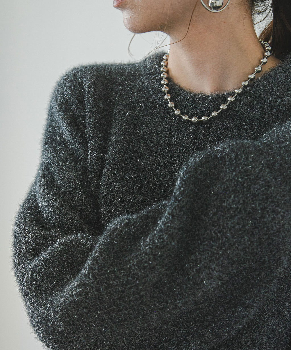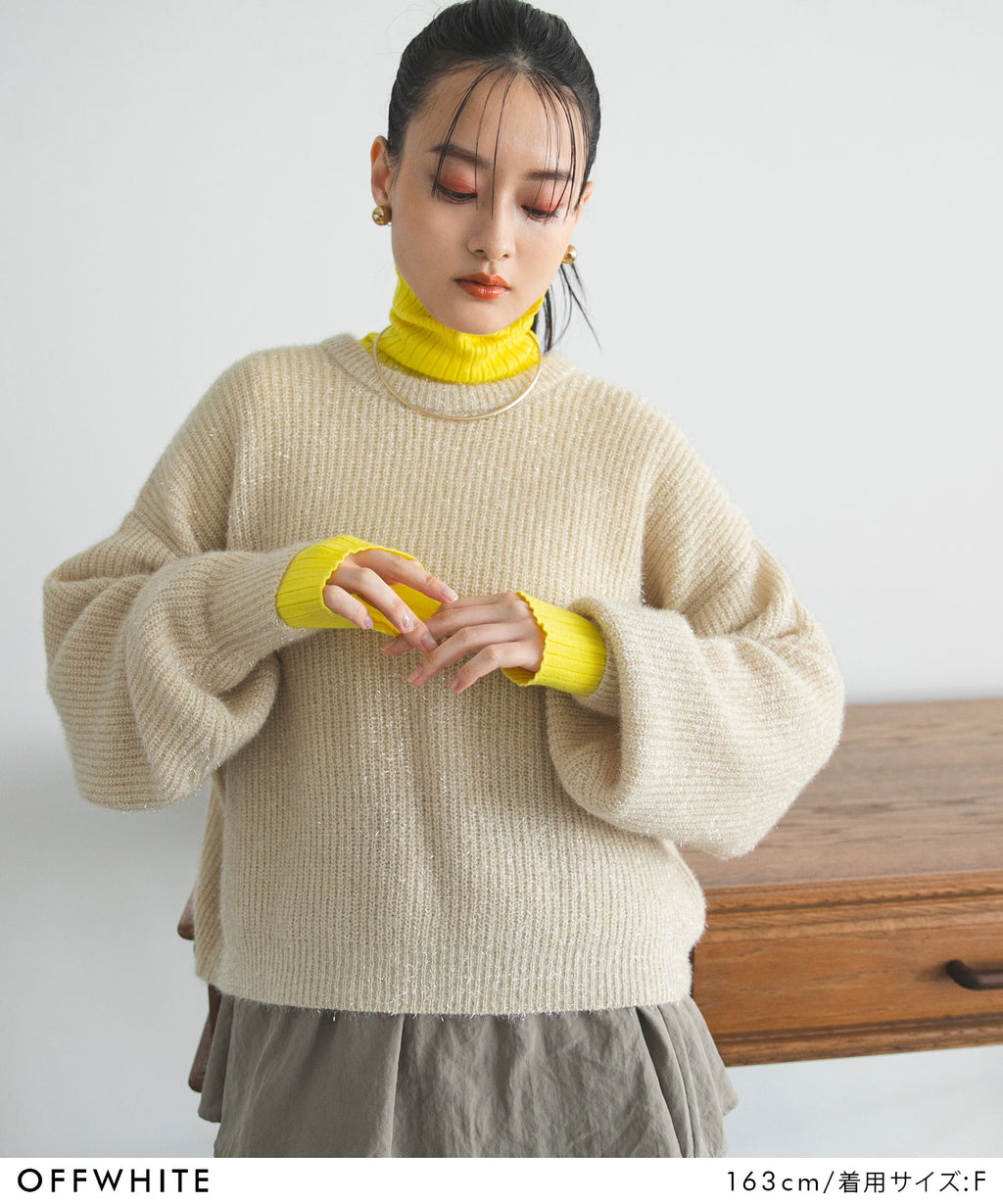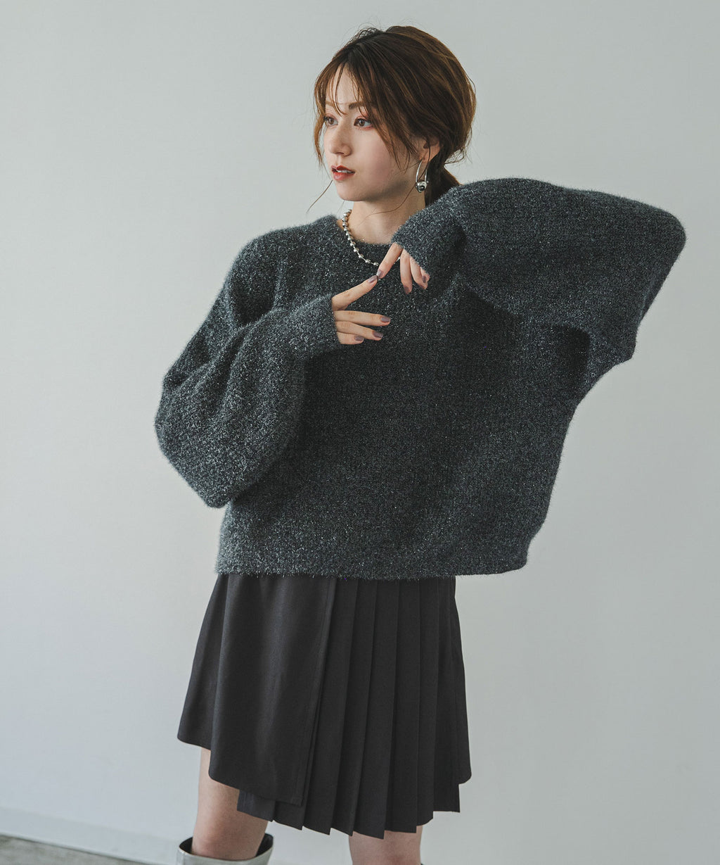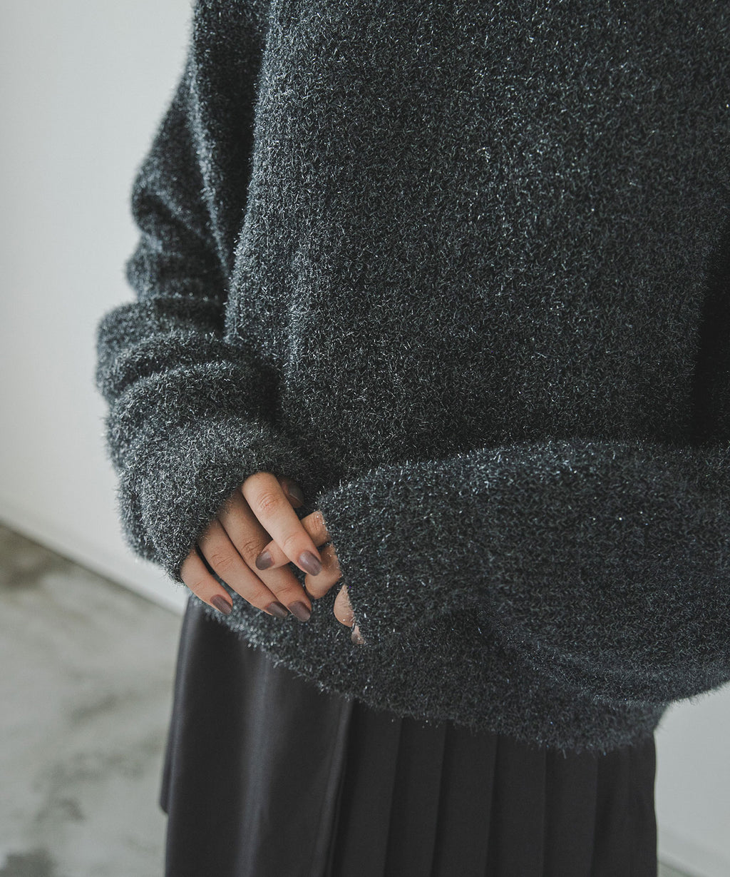 ラメが煌めくシーズナブルなニットプルオーバー。
