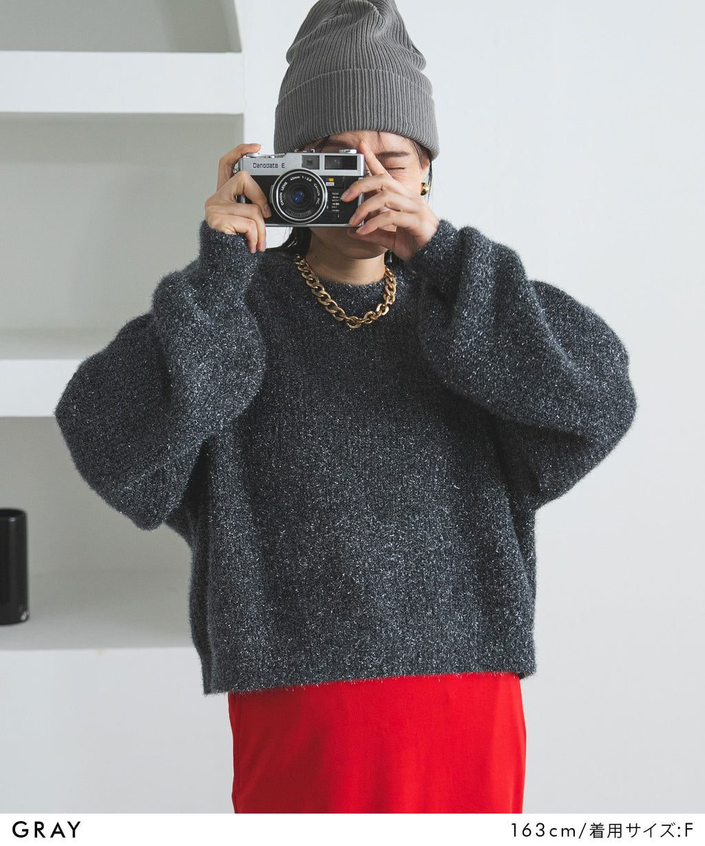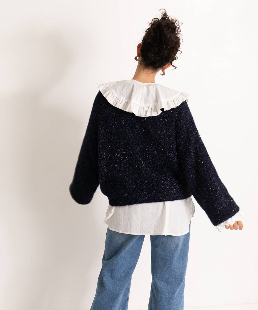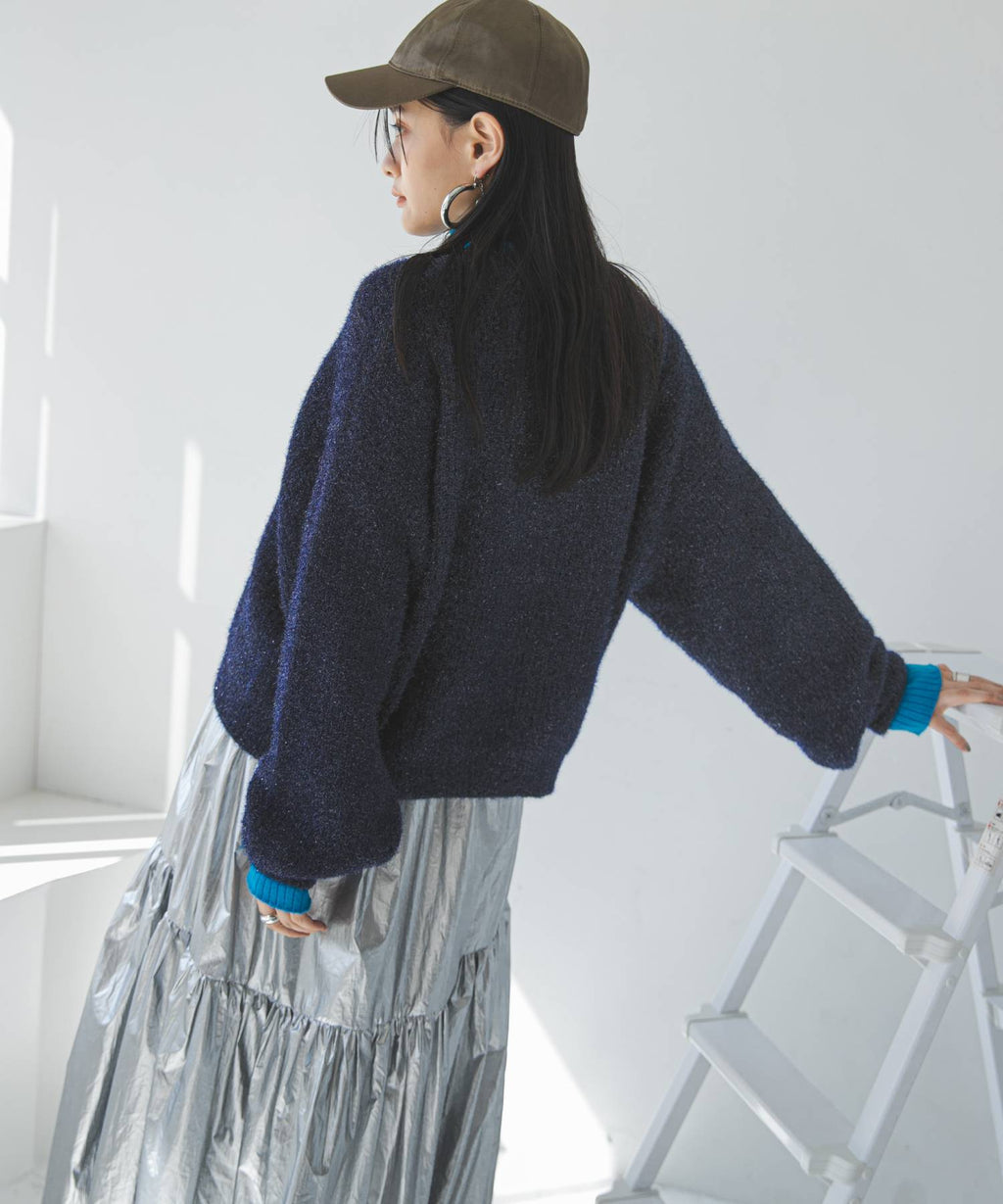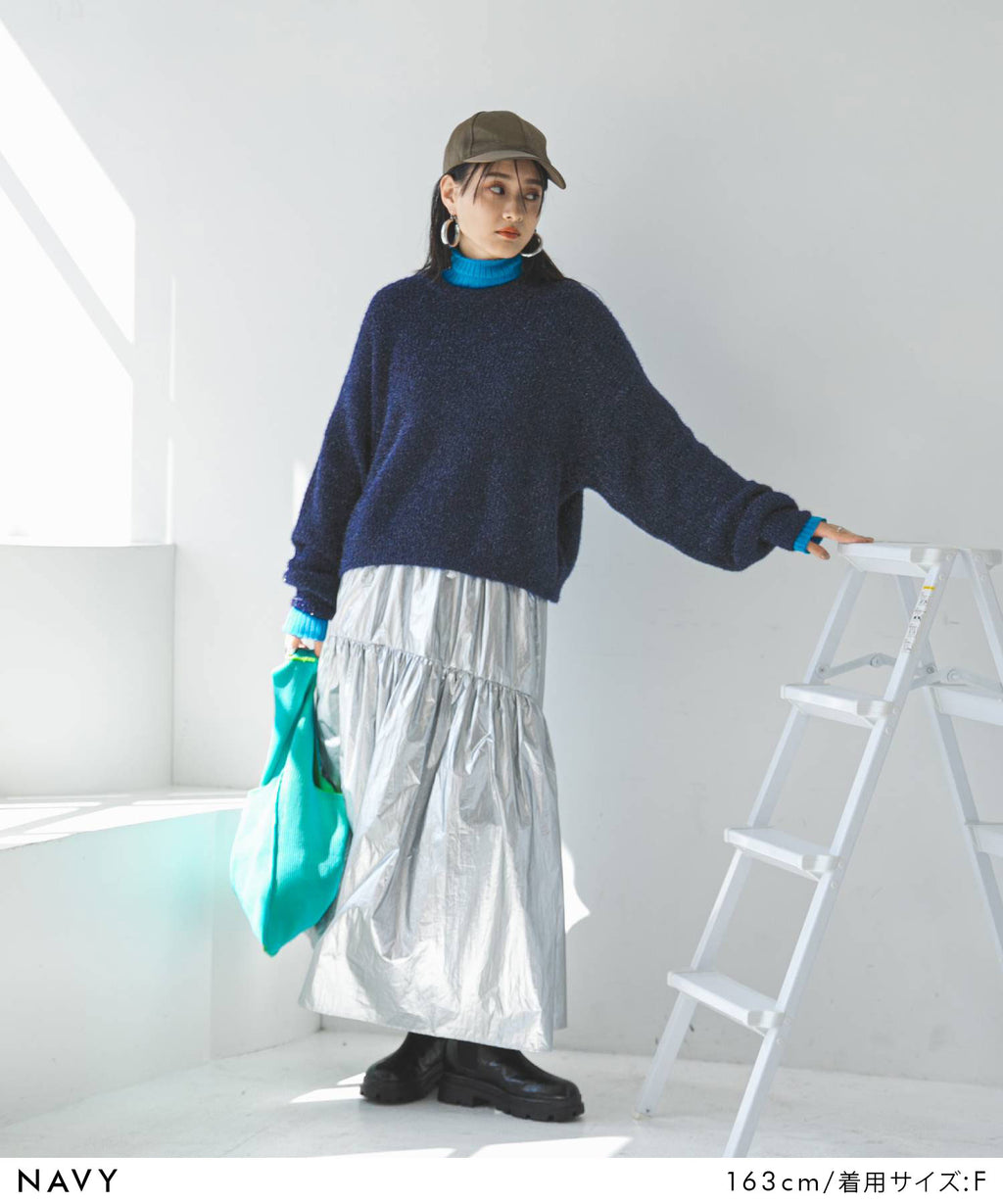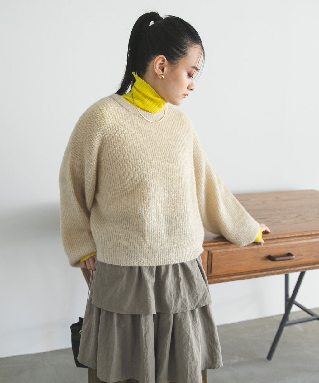 ラメが煌めくシーズナブルなニットプルオーバー。