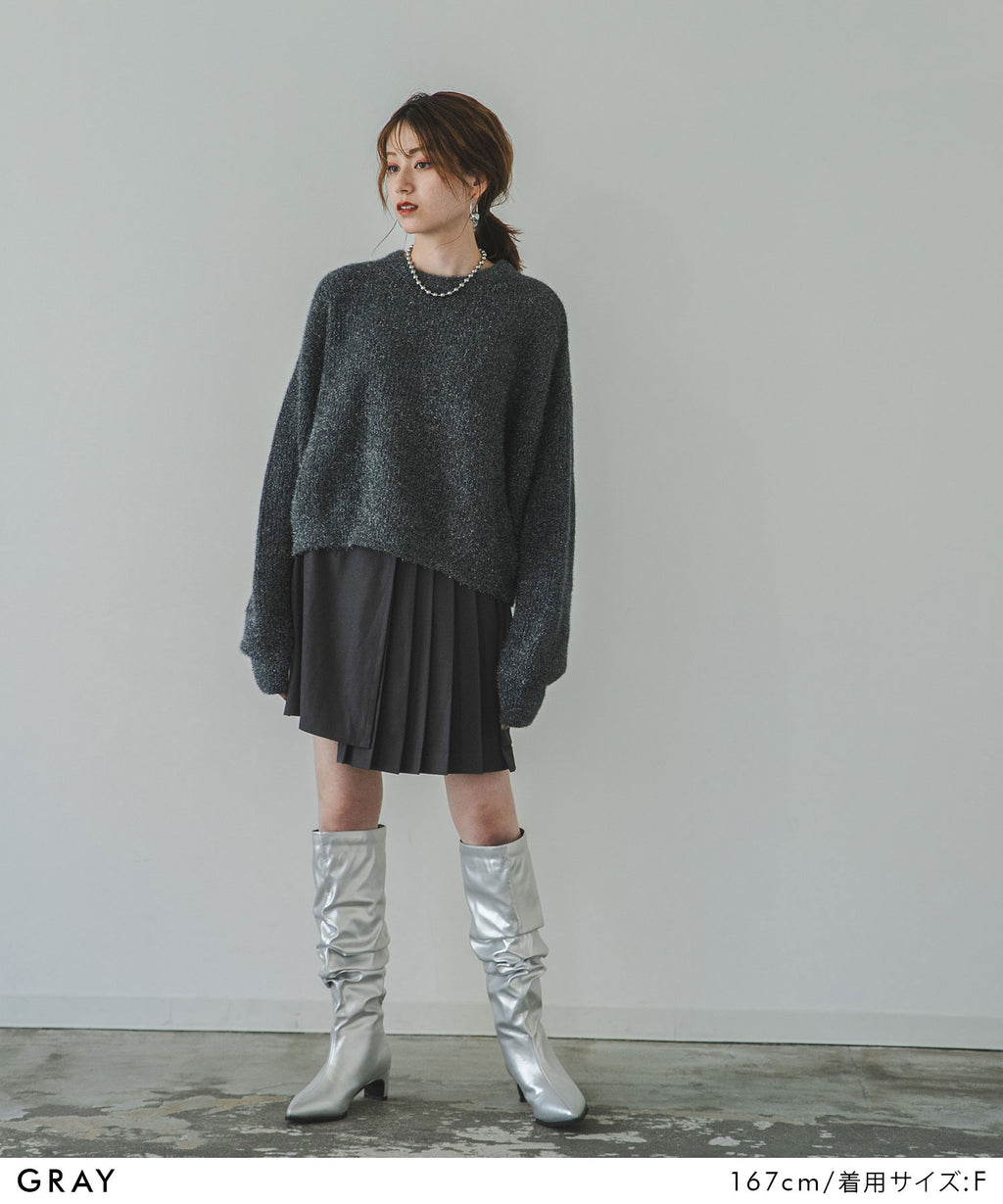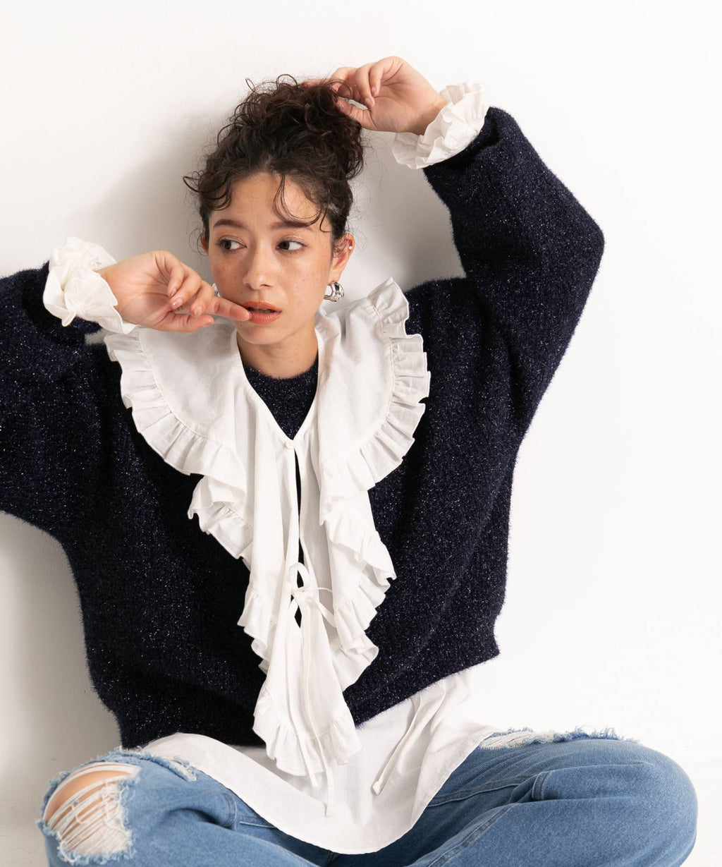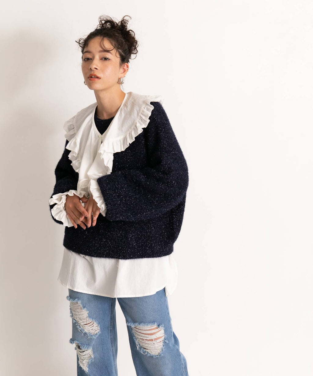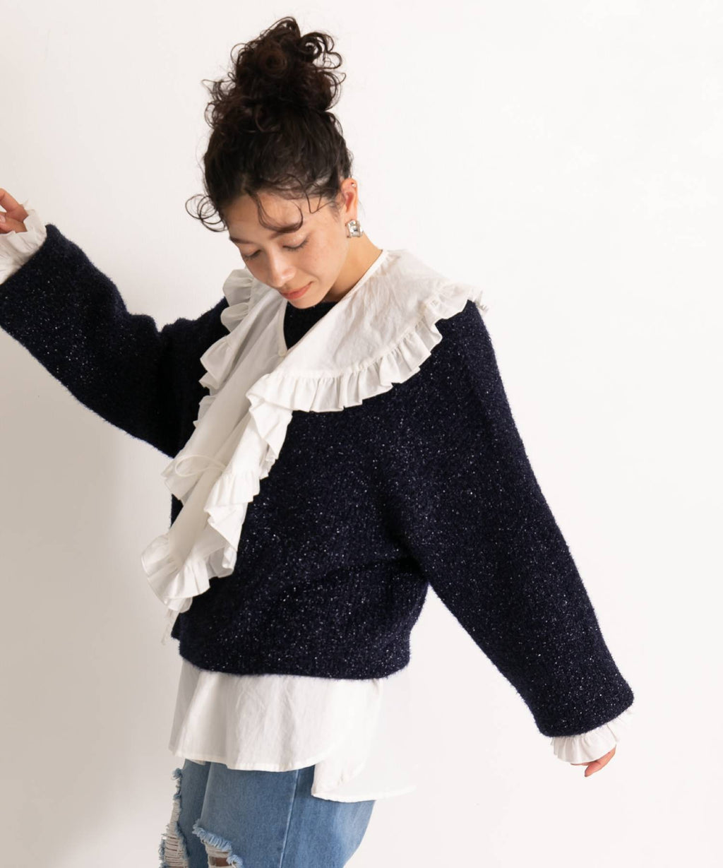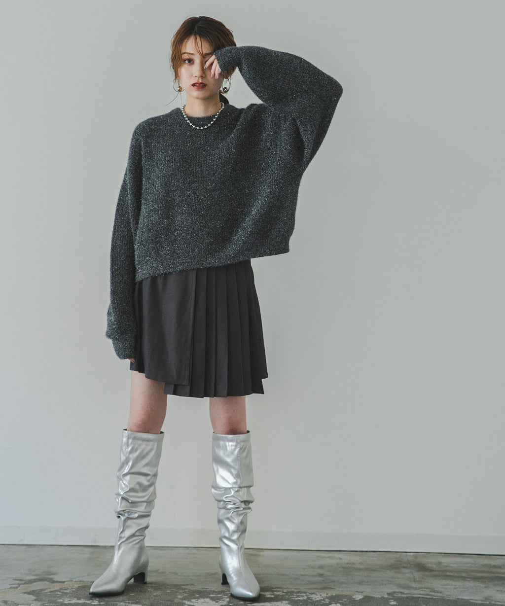 ラメが煌めくシーズナブルなニットプルオーバー。
