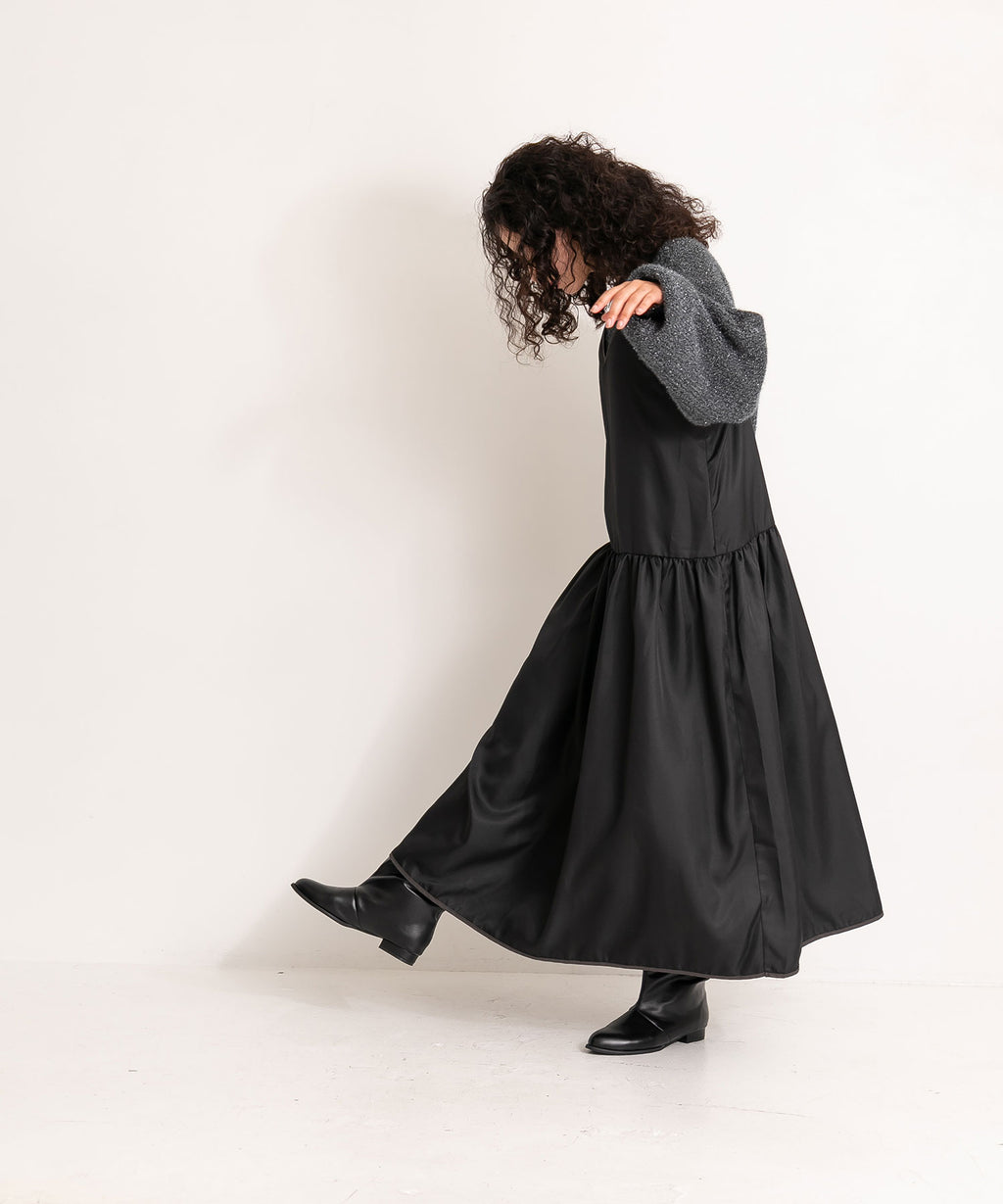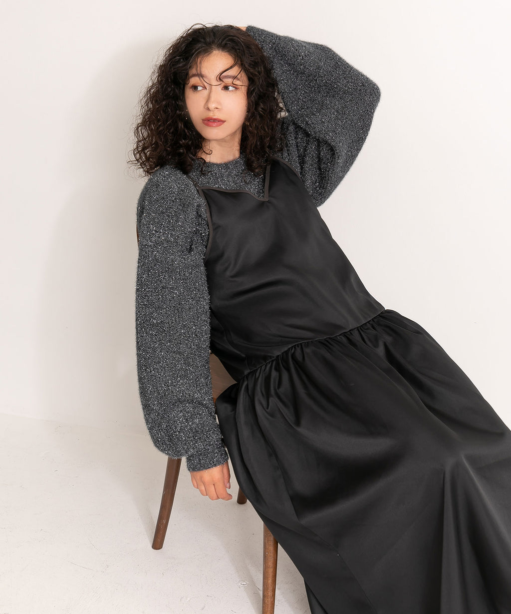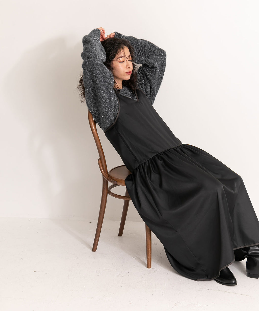 裾のギャザーとテープ部分のバイカラーがポイント