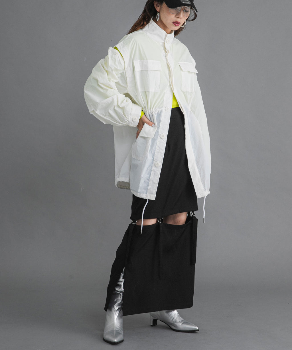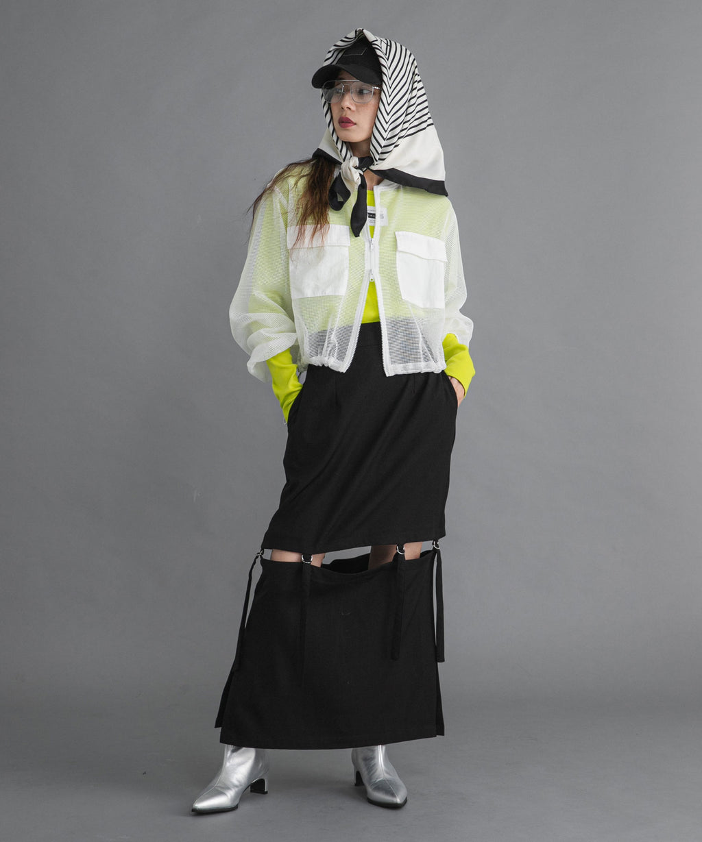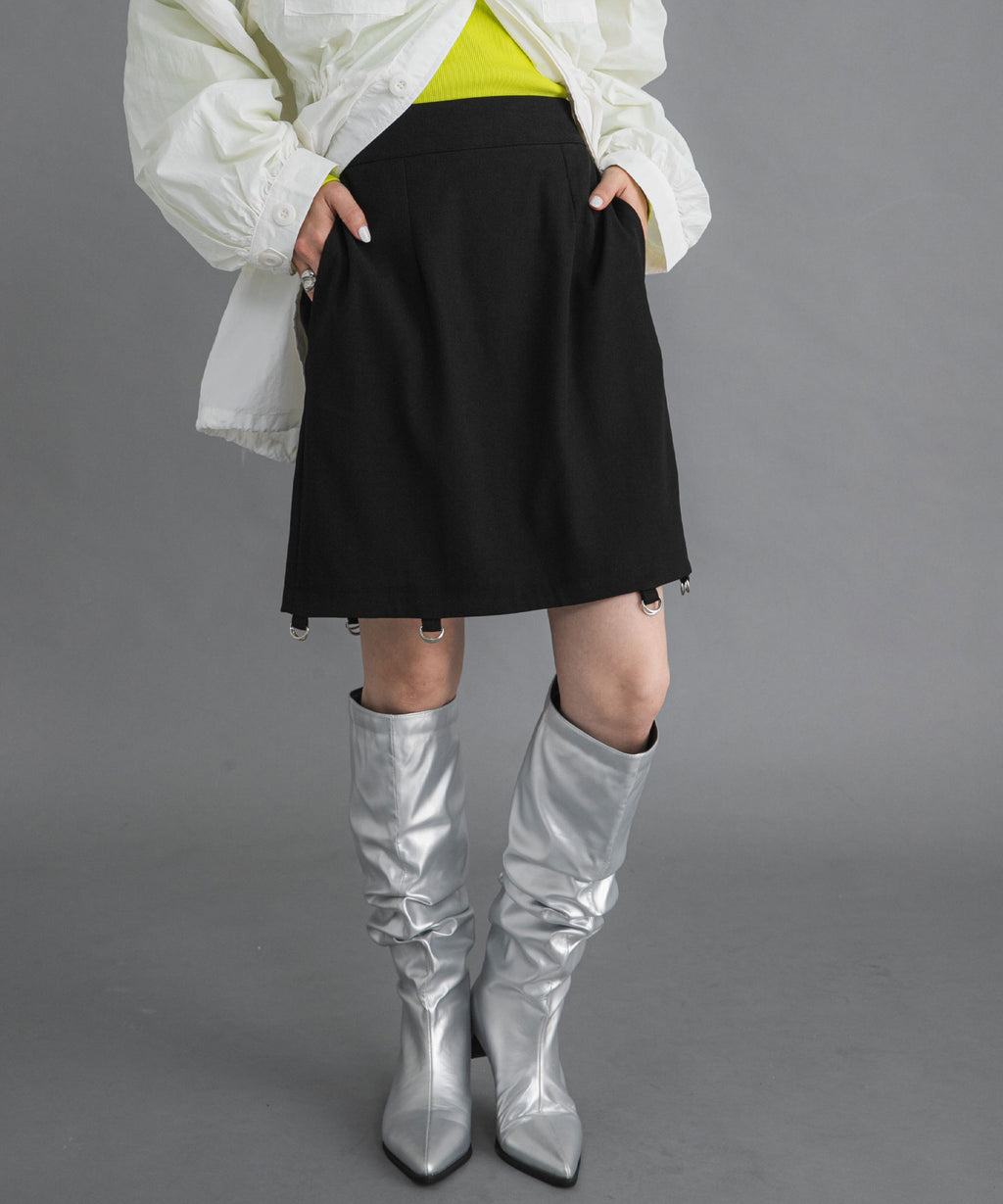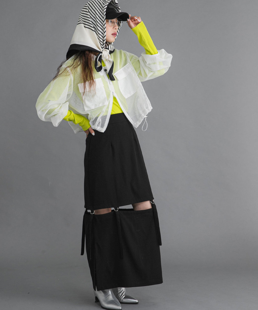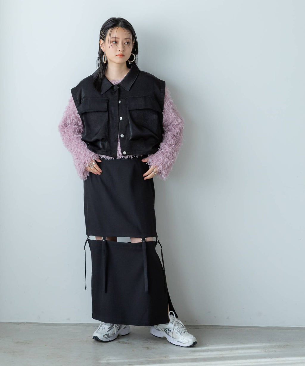 程よい肌見せがアクセントになる着丈調整可能な2wayペンシルスカート。