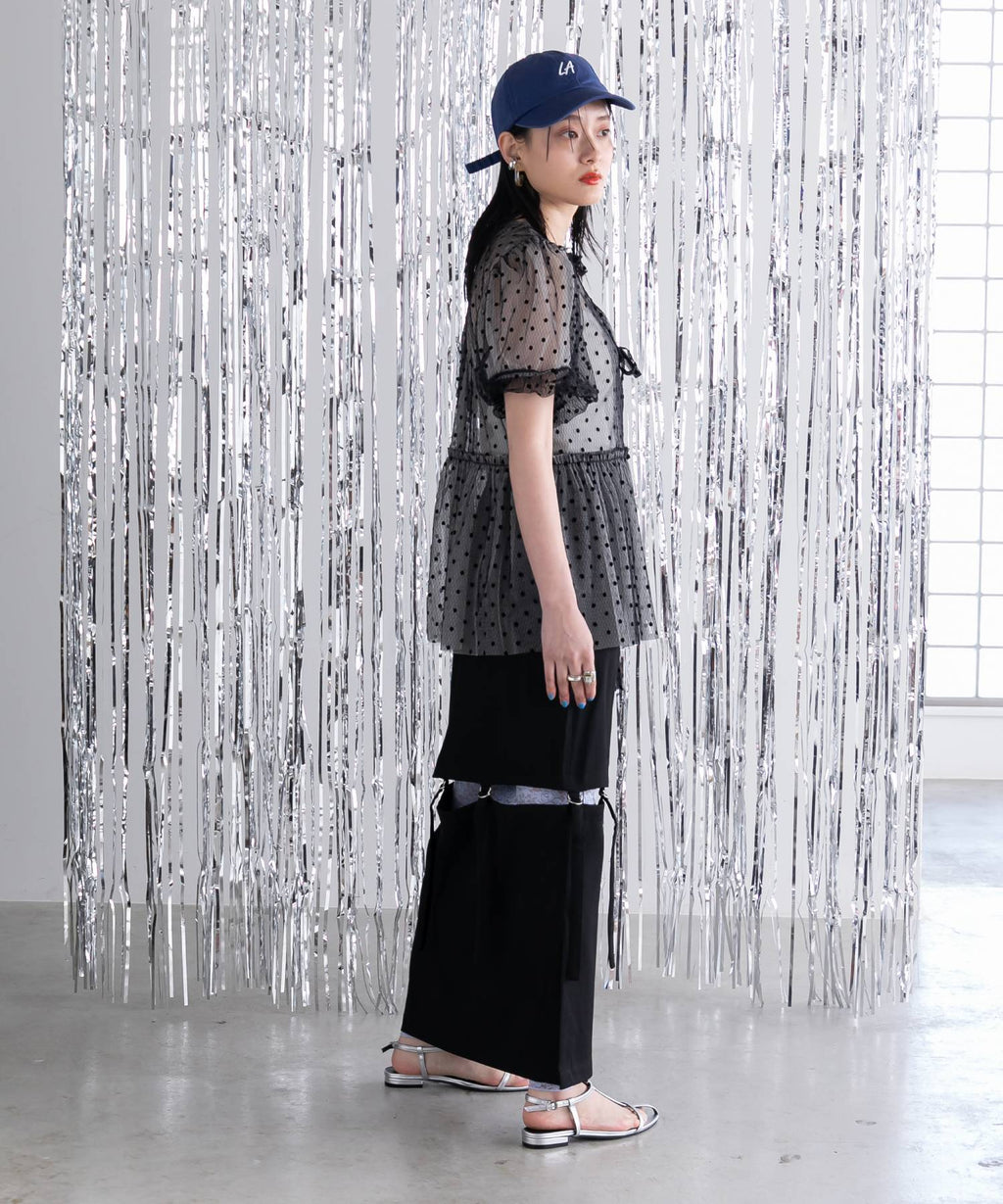 ウエストは後ろゴムにすることでストレスフリーな着心地に。