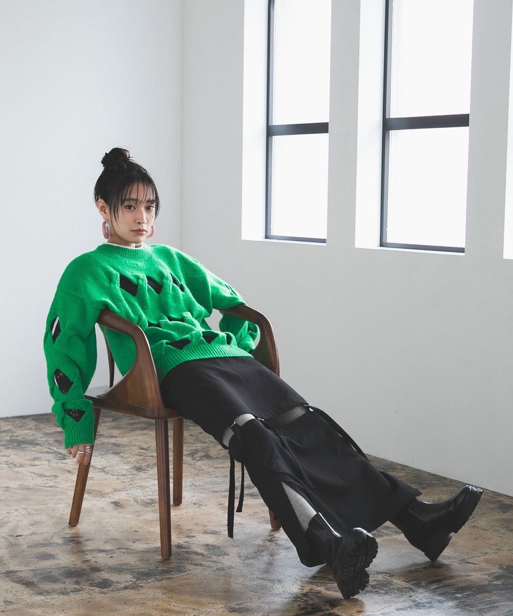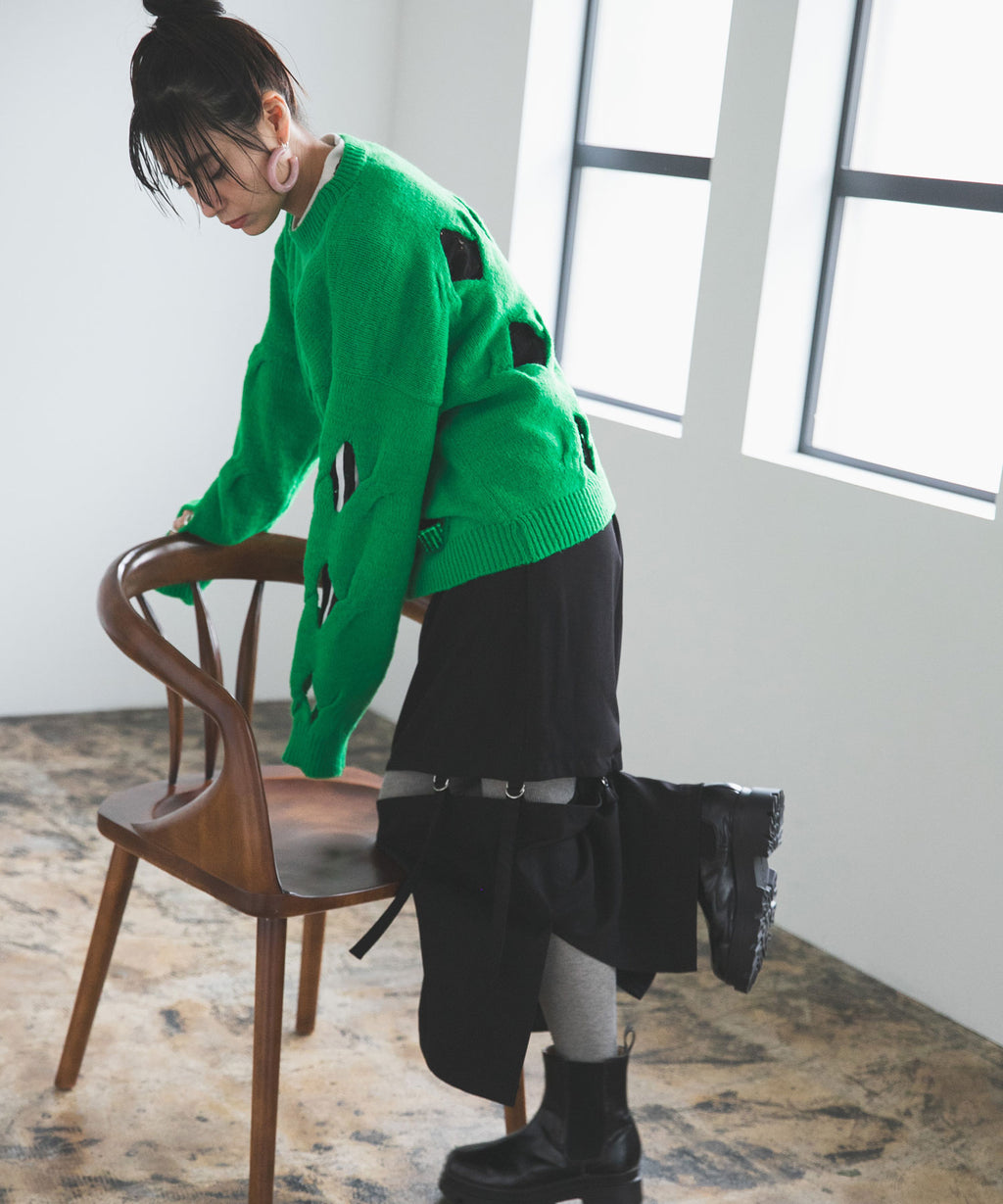 オーバーサイズのニットと合わせてもバランスが良く、