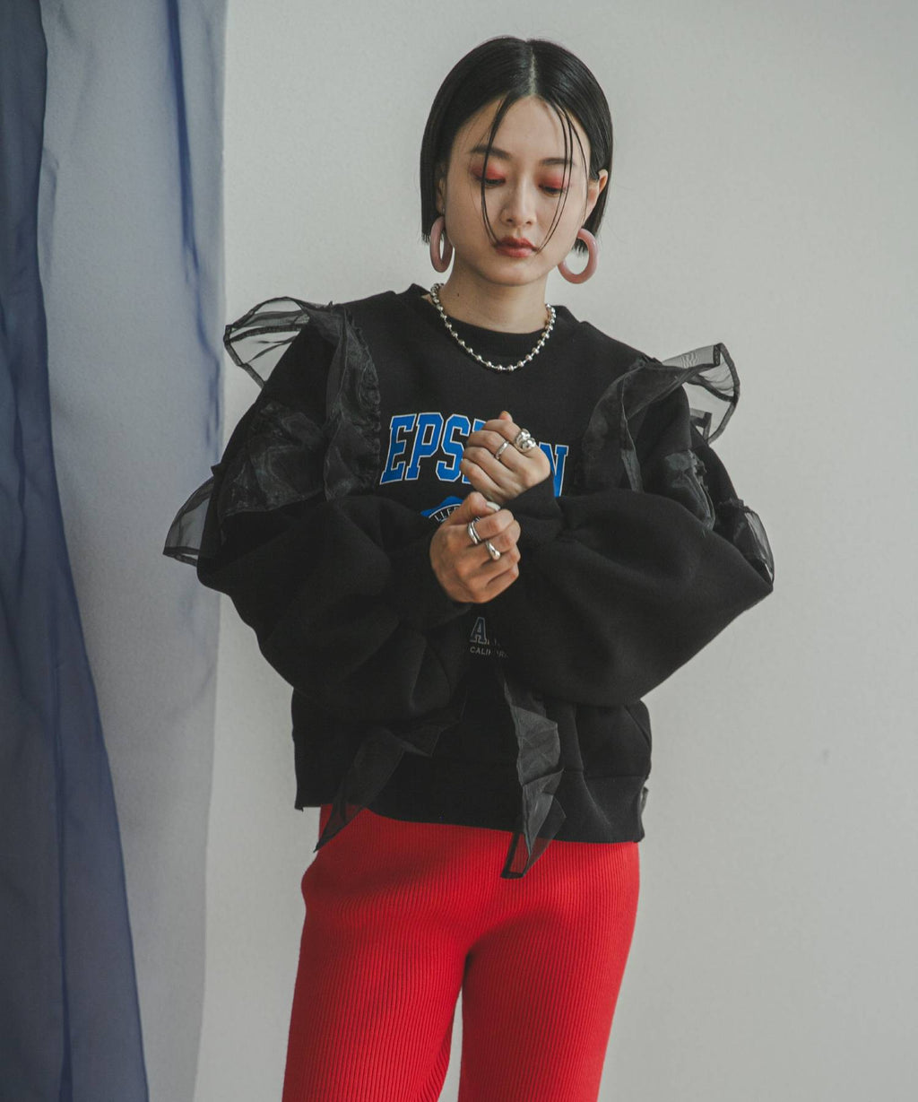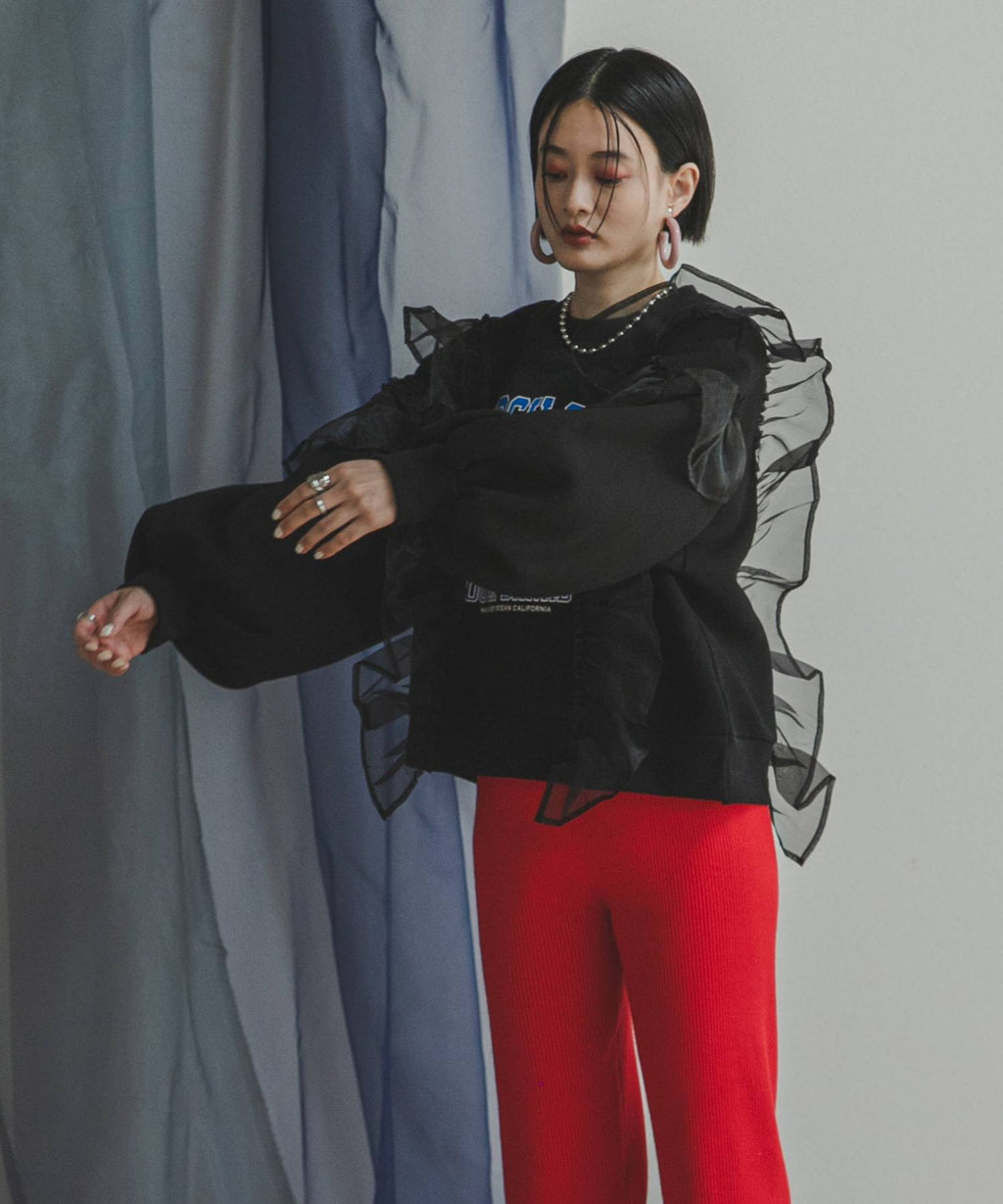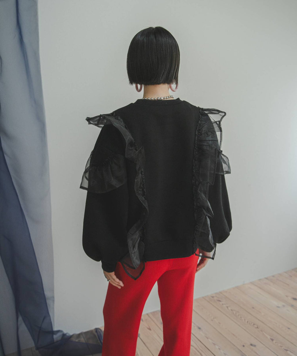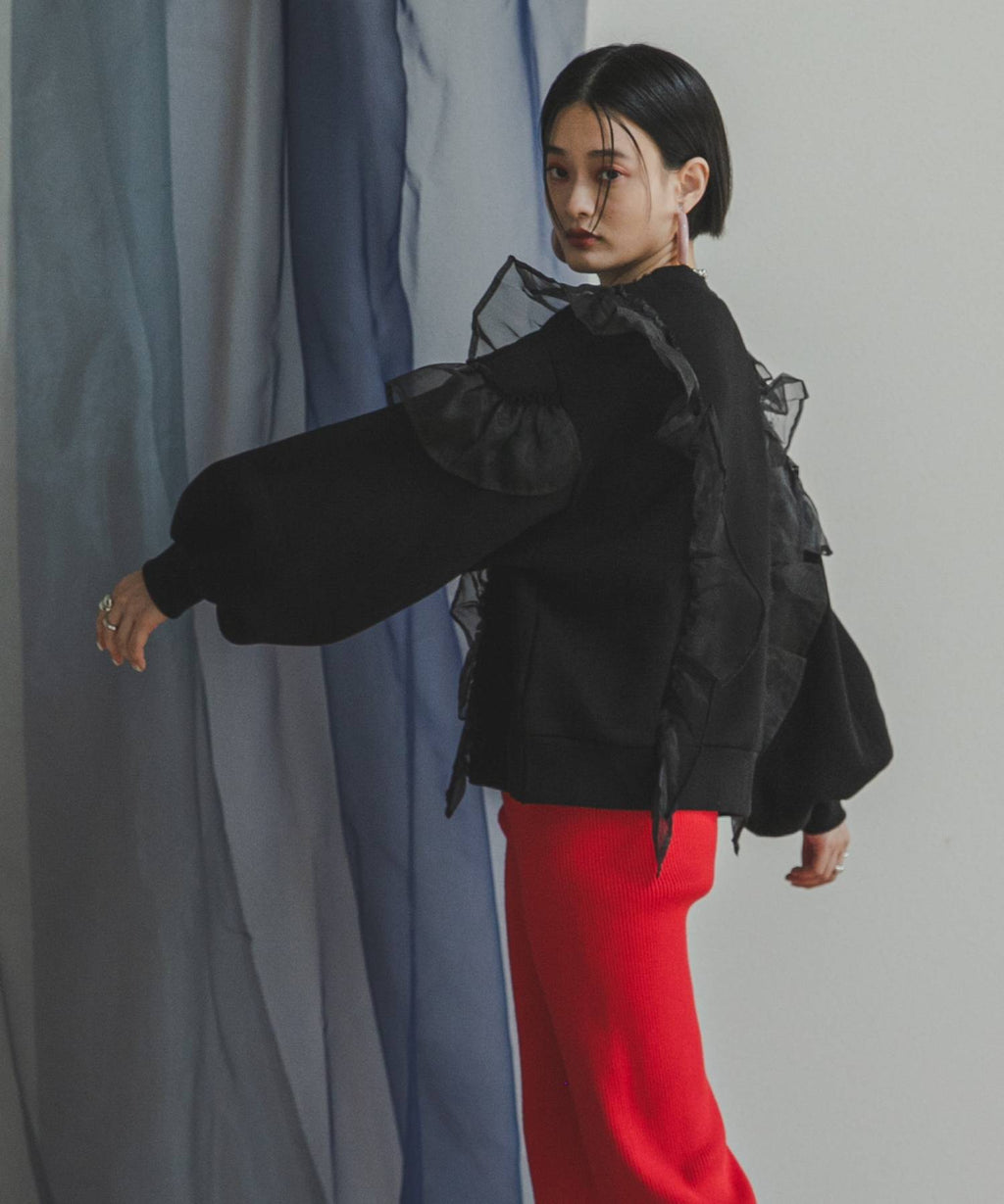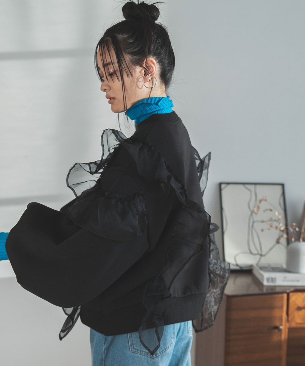 ハリ感のあるオーガンジー素材を使用したフリルがアクセントに。