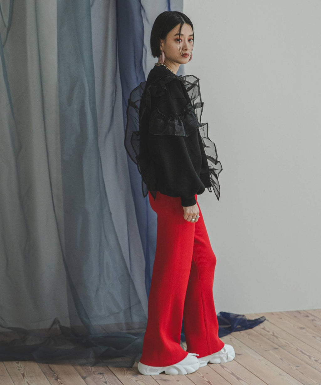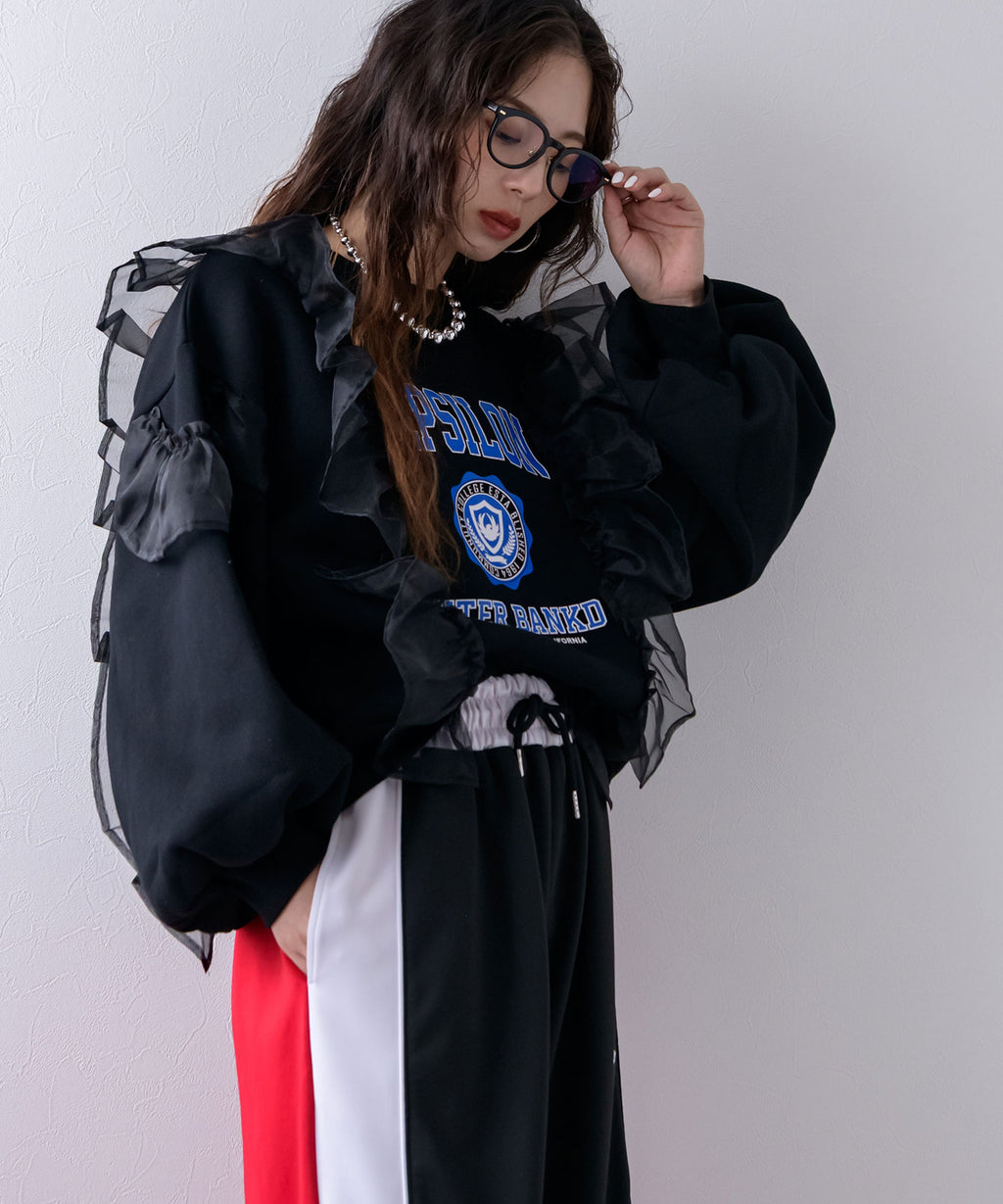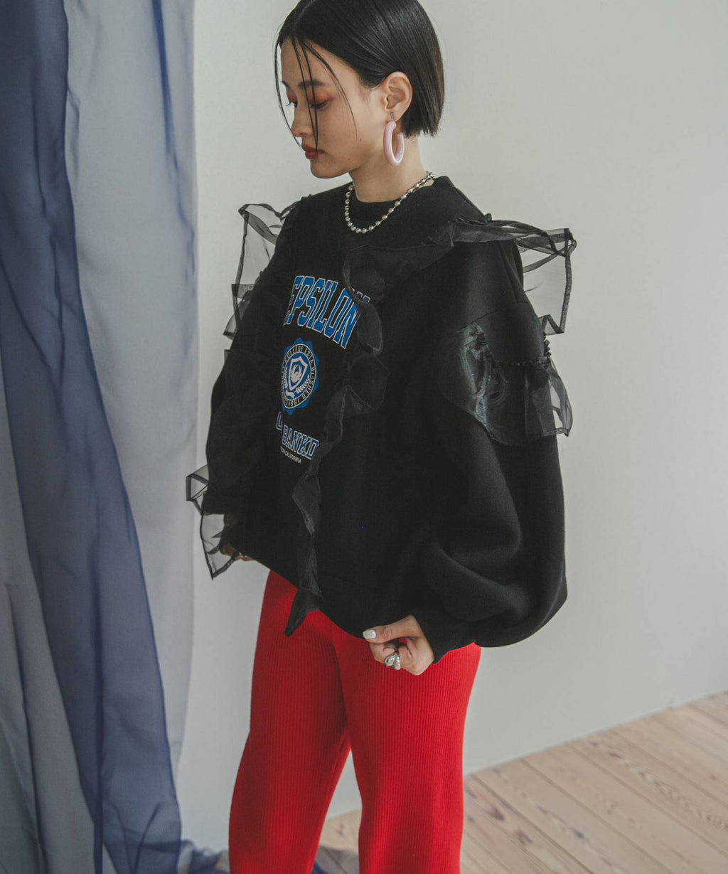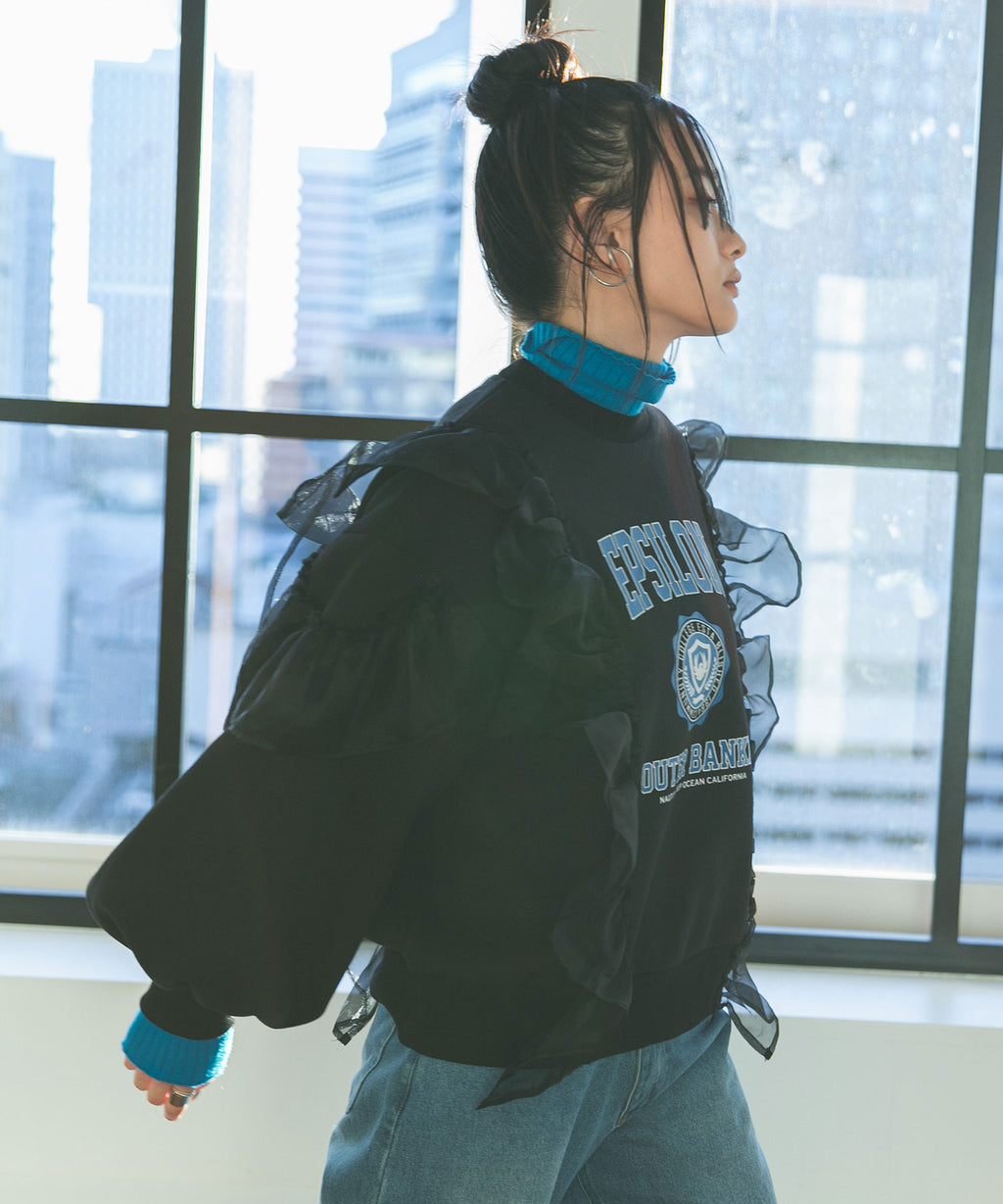 ハリ感のあるオーガンジー素材を使用したフリルがアクセントに。