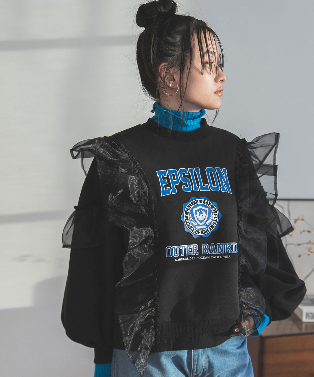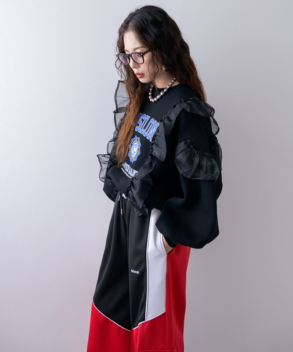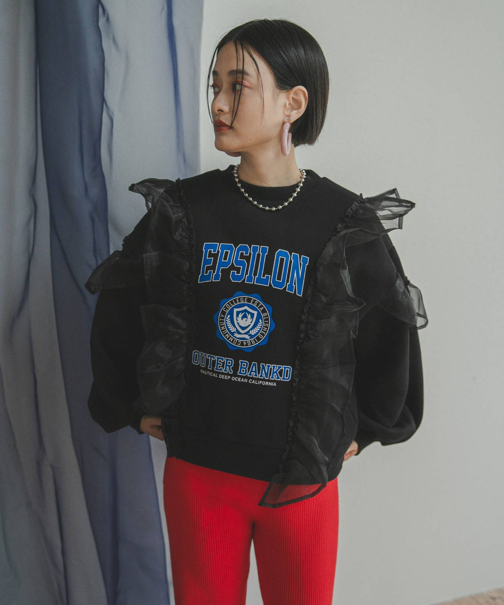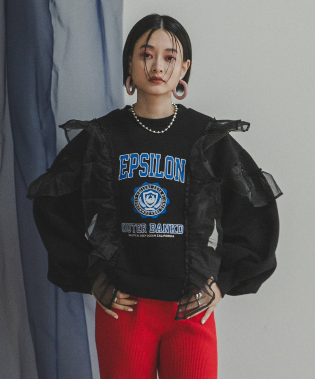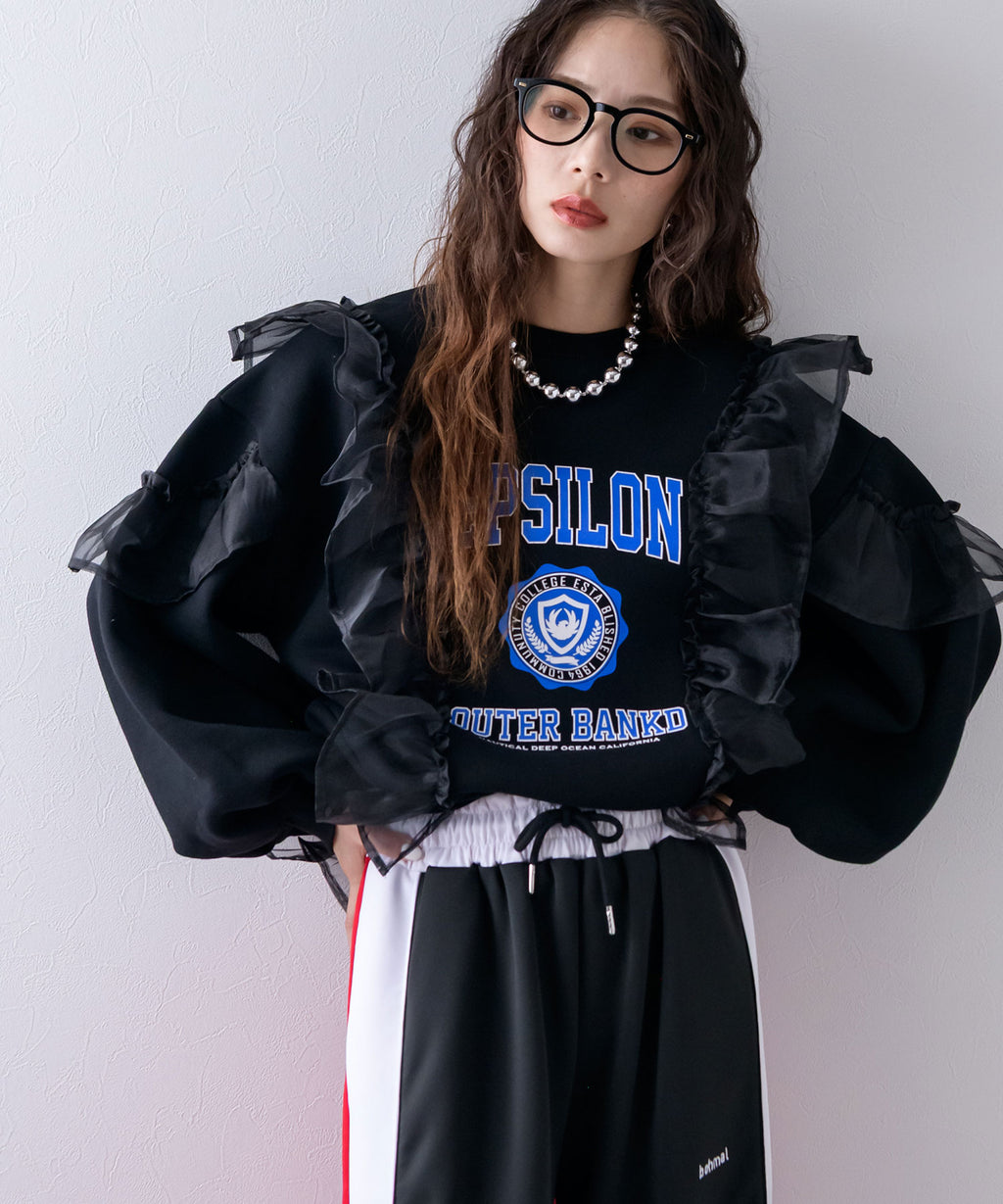 ハリ感のあるオーガンジー素材を使用したフリルがアクセントに。
