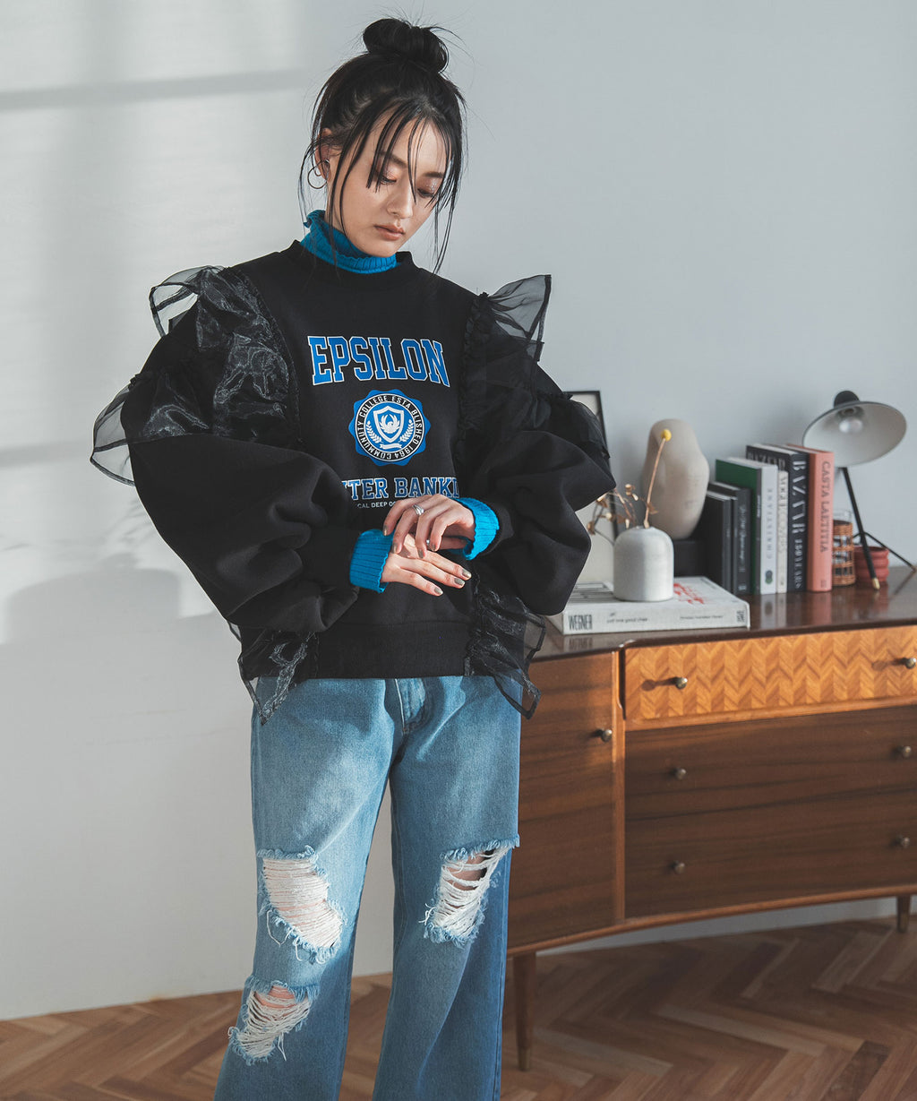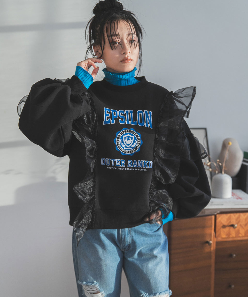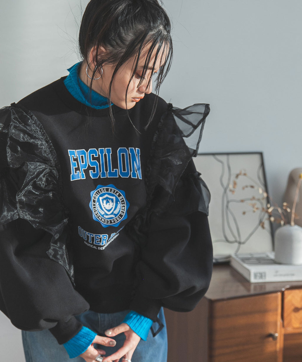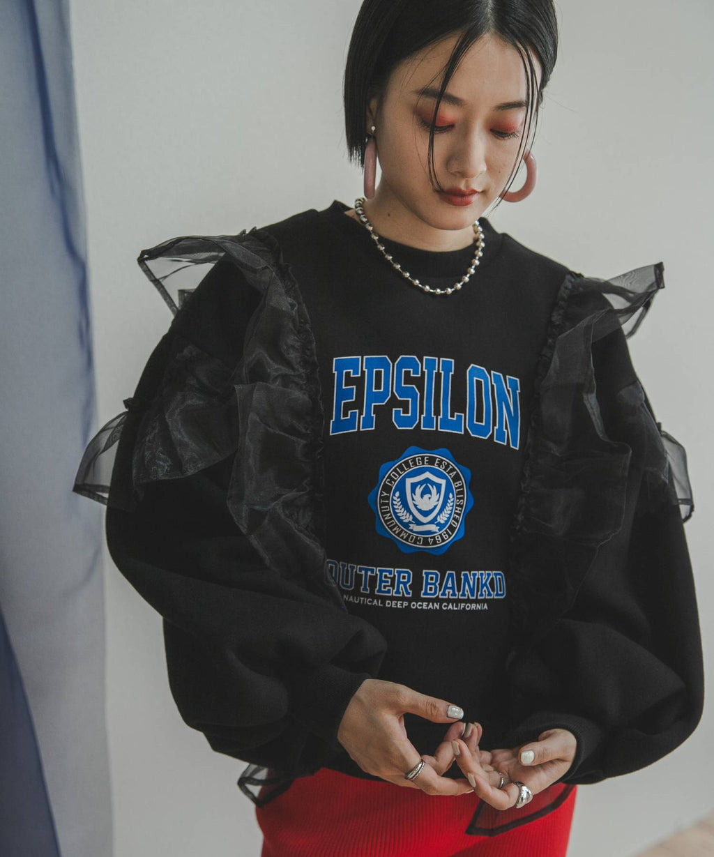 ハリ感のあるオーガンジー素材を使用したフリルがアクセントに。