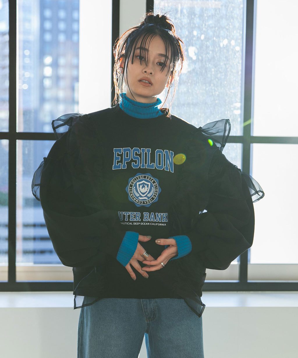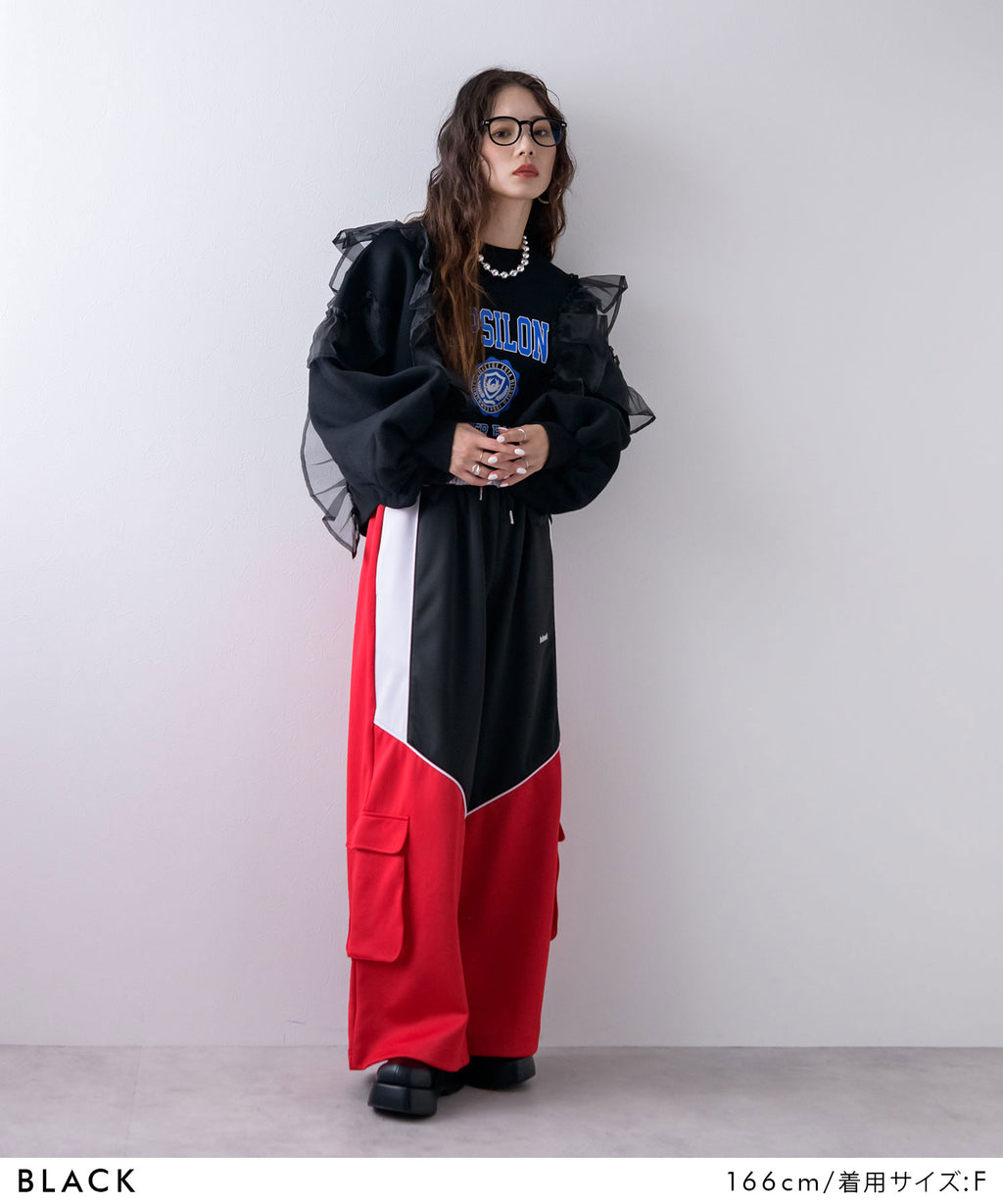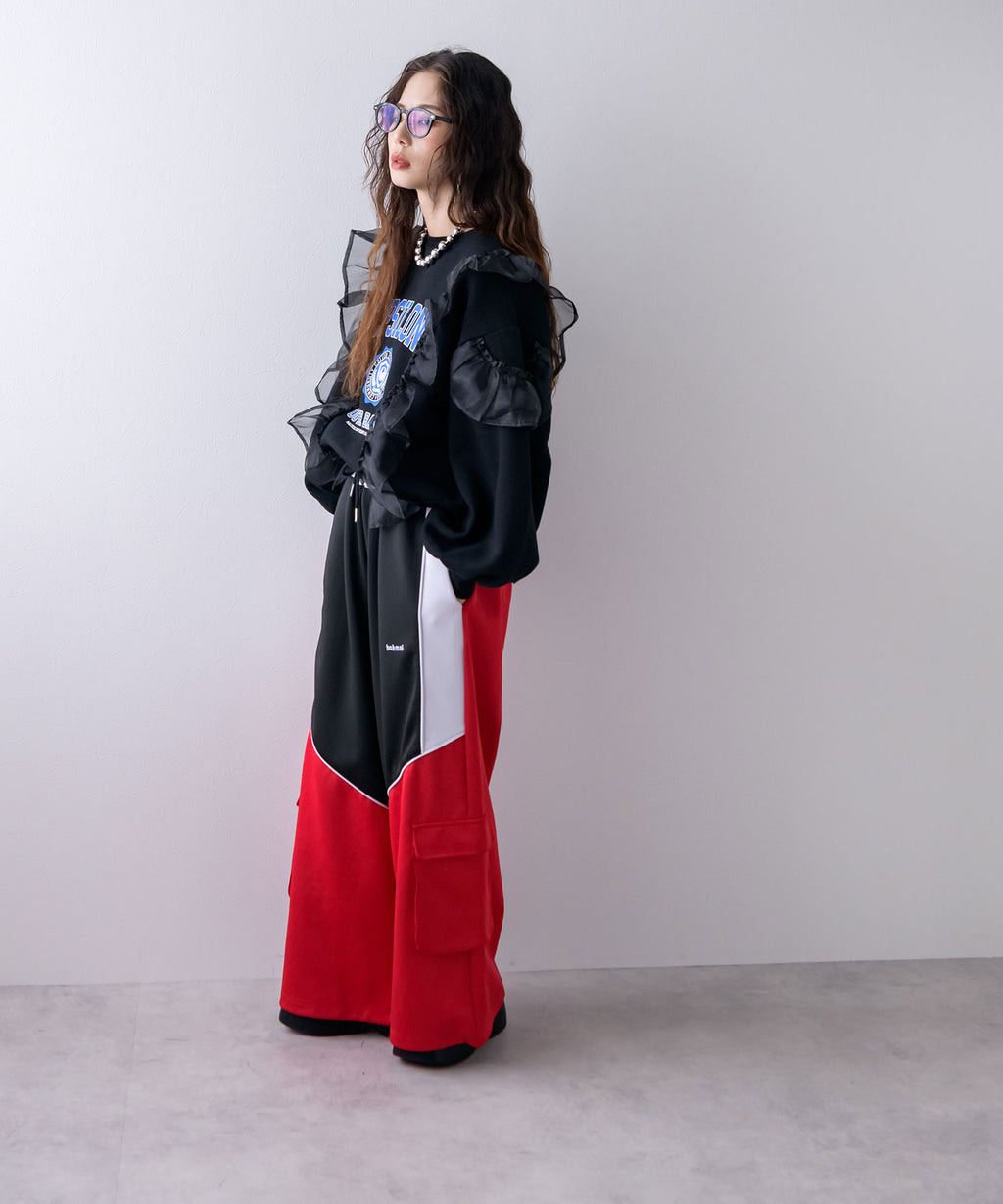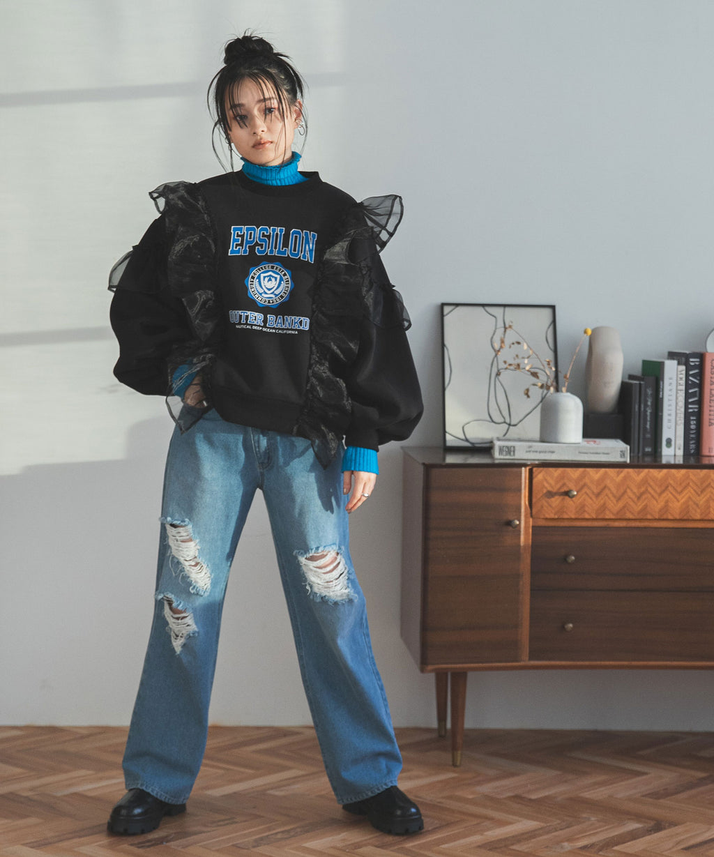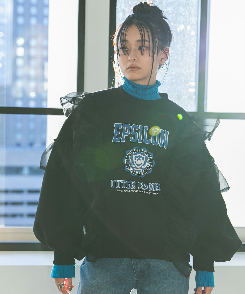 ハリ感のあるオーガンジー素材を使用したフリルがアクセントに。