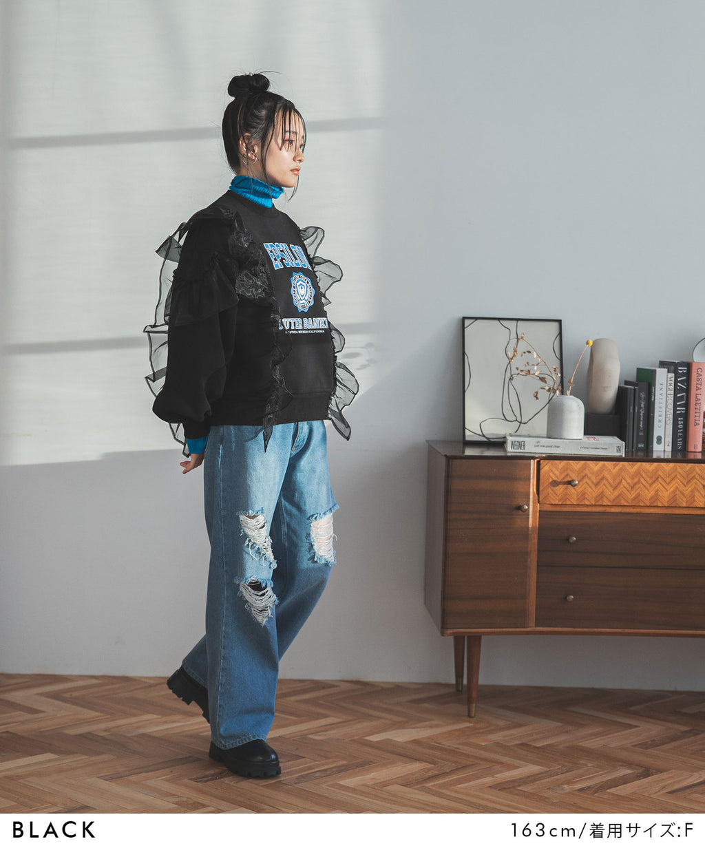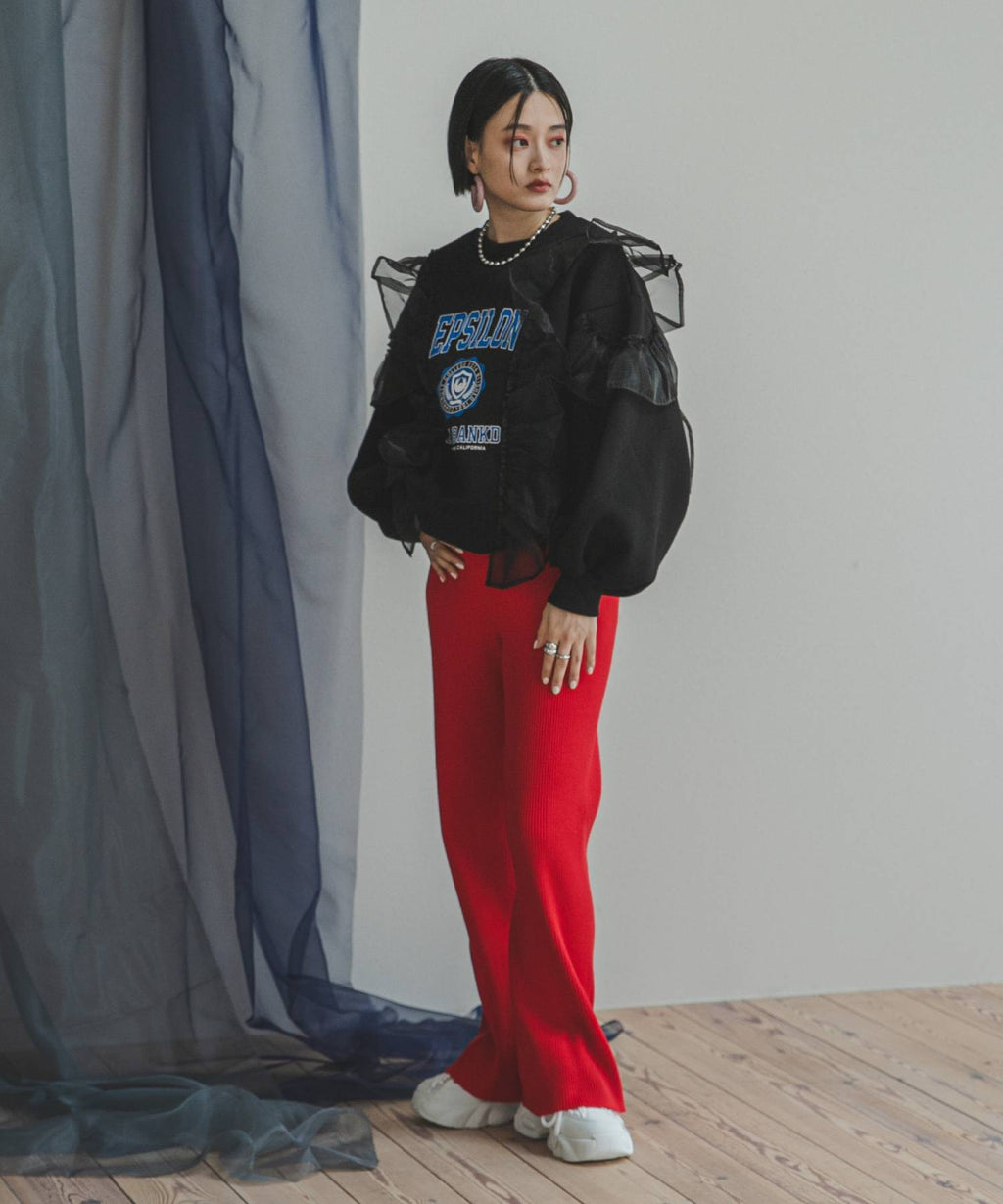 ハリのあるオーガンジー素材のフリルはアクセントに。