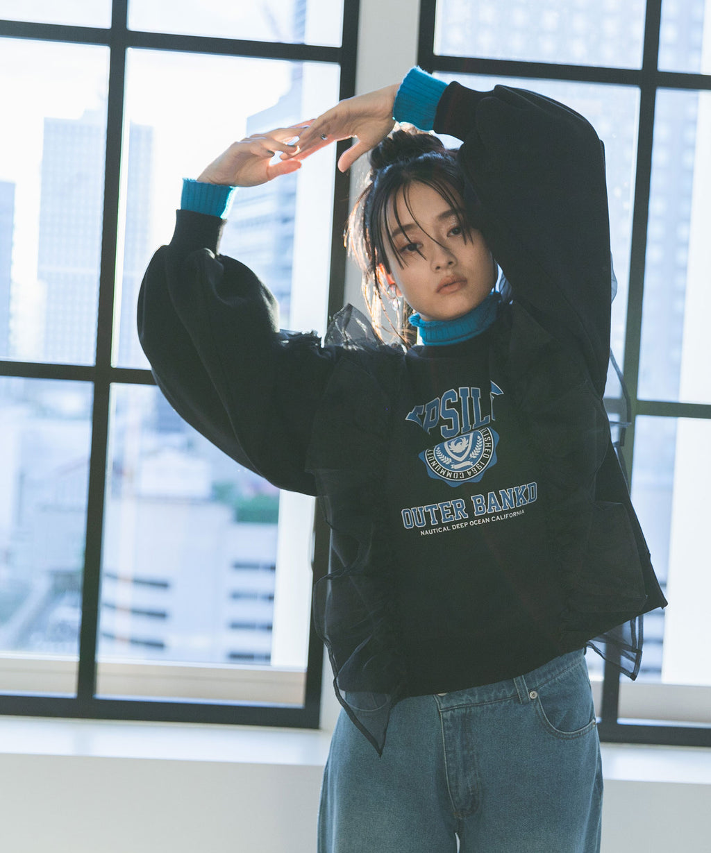 甘くなりすぎないように、裏起毛素材×ロゴプリント