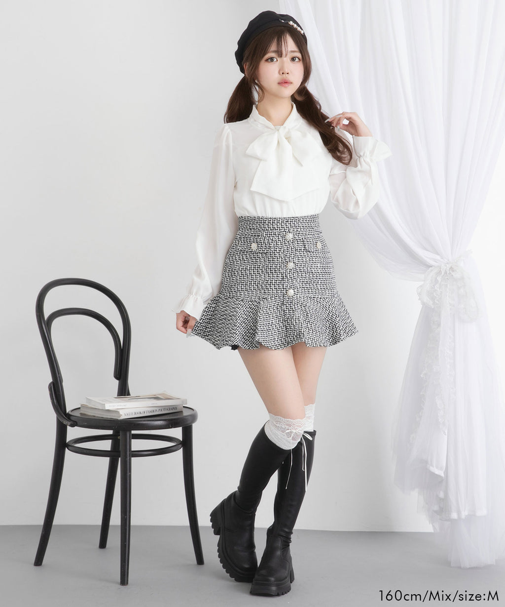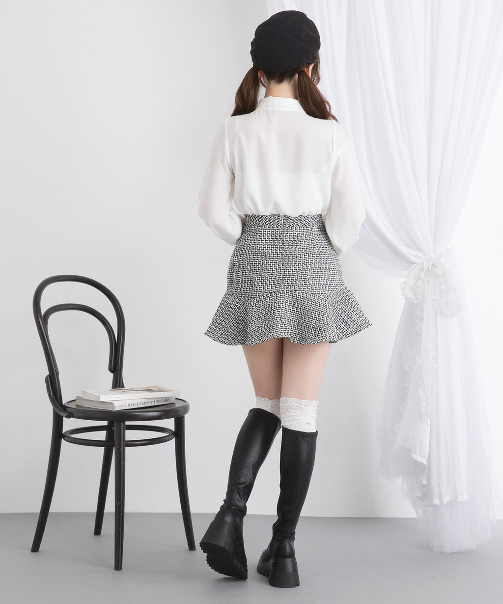 フェミニンガーリーに着れるツイードフリルスカートです。