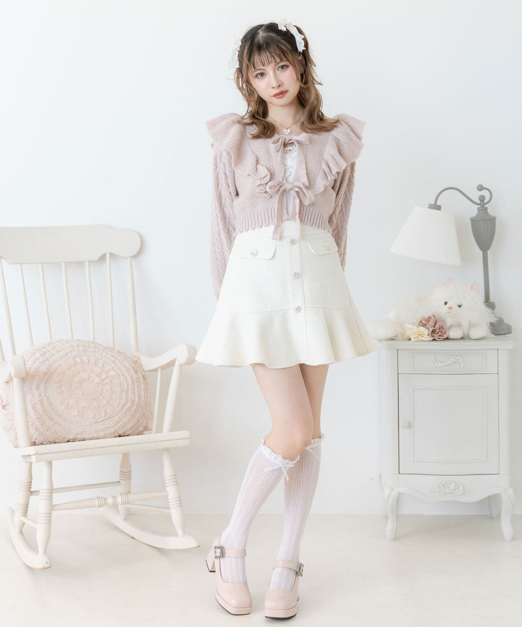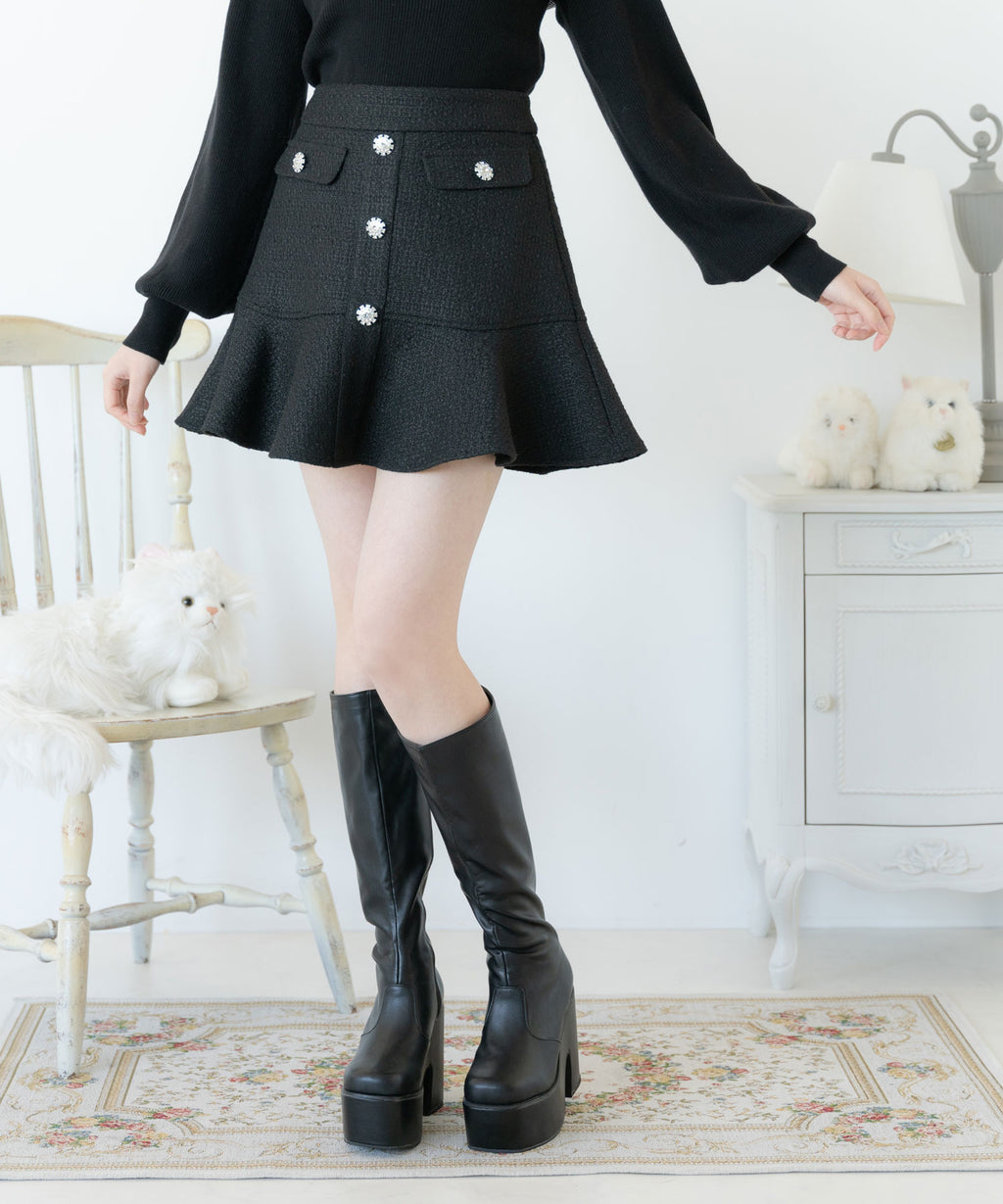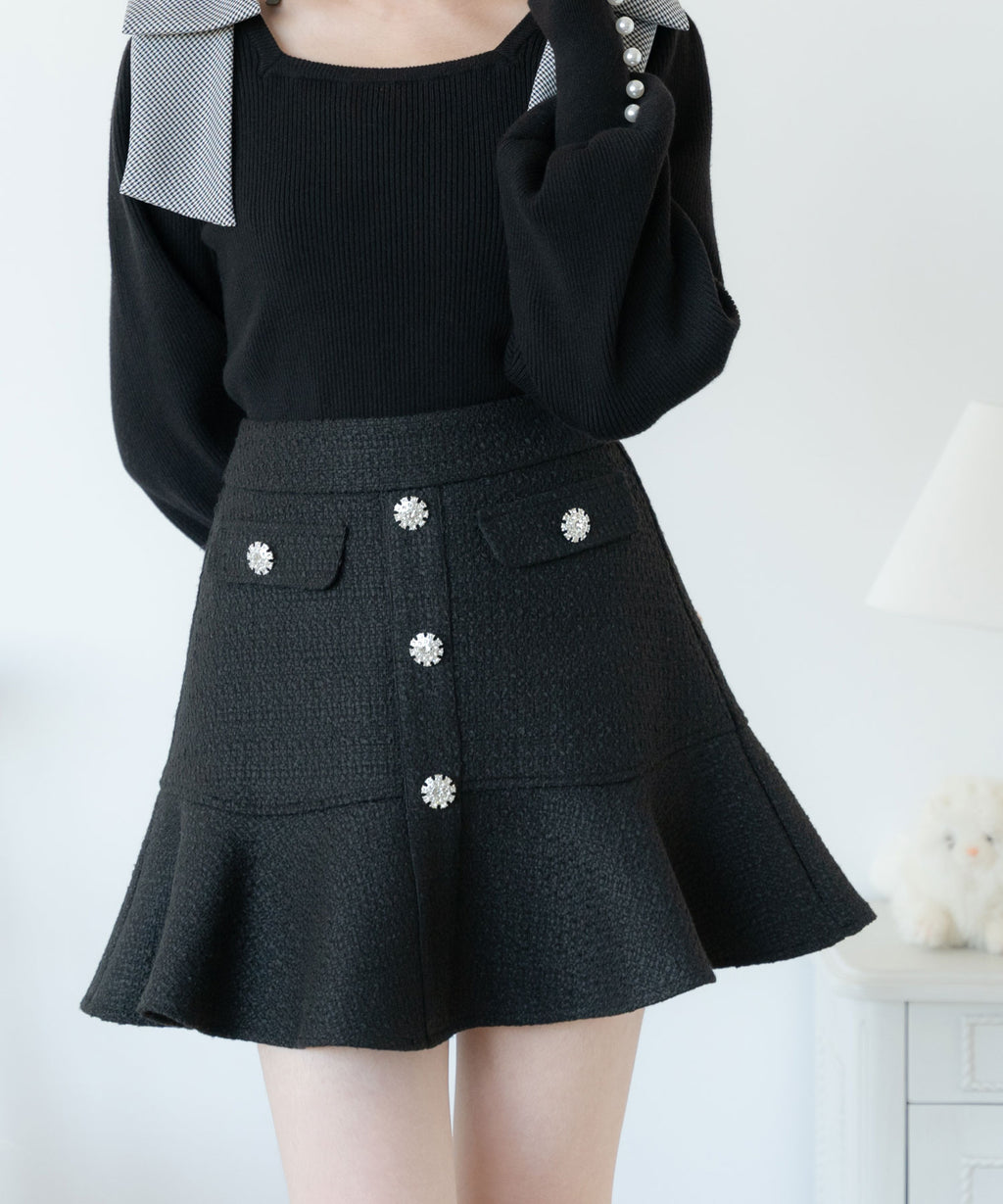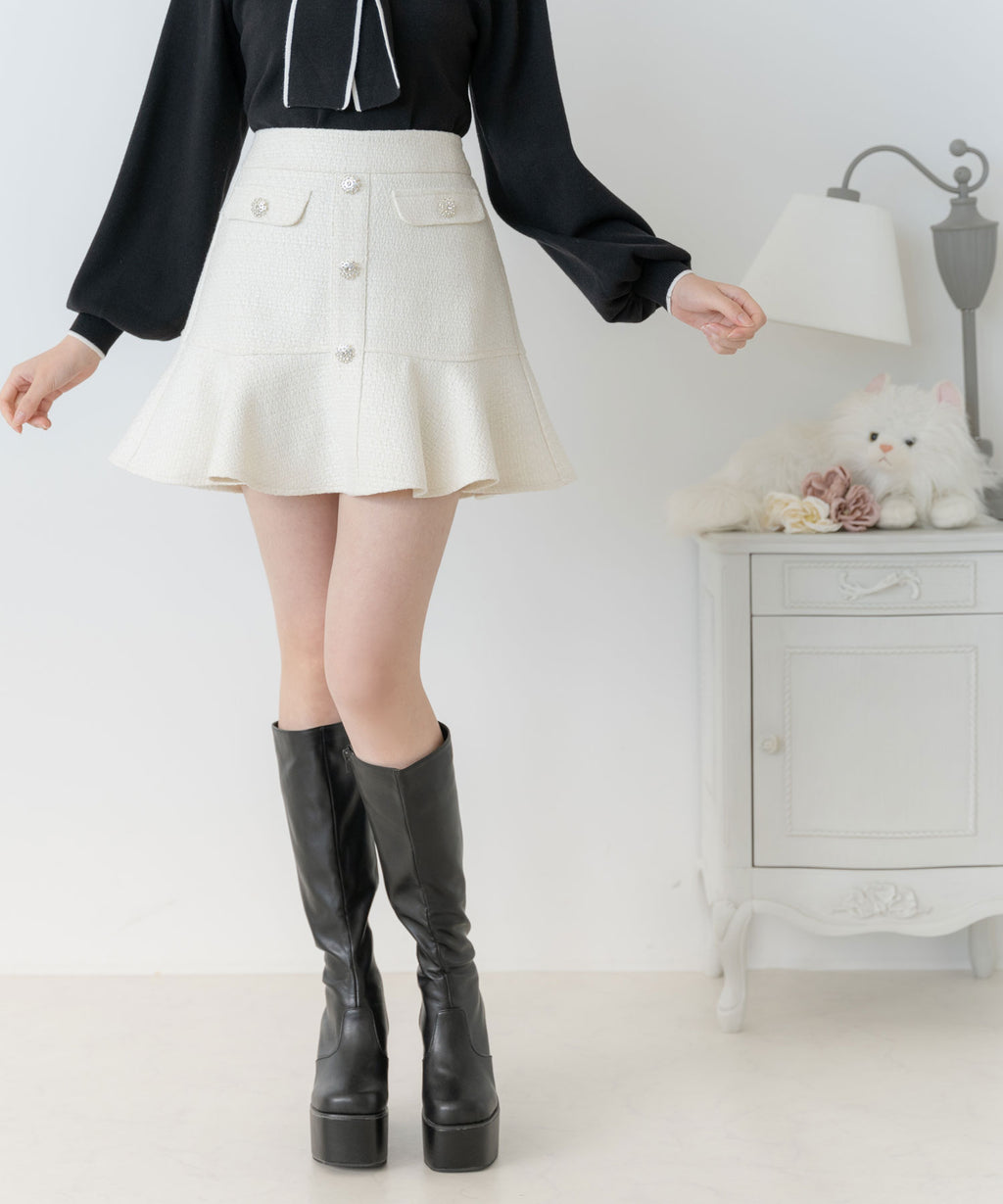 きらきらビジューが目を惹くツイードフリルスカートのご紹介。