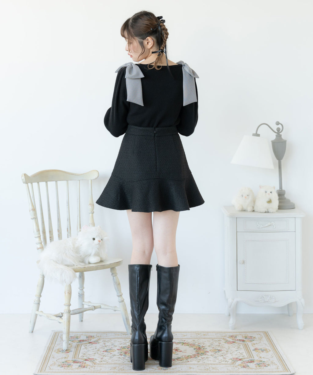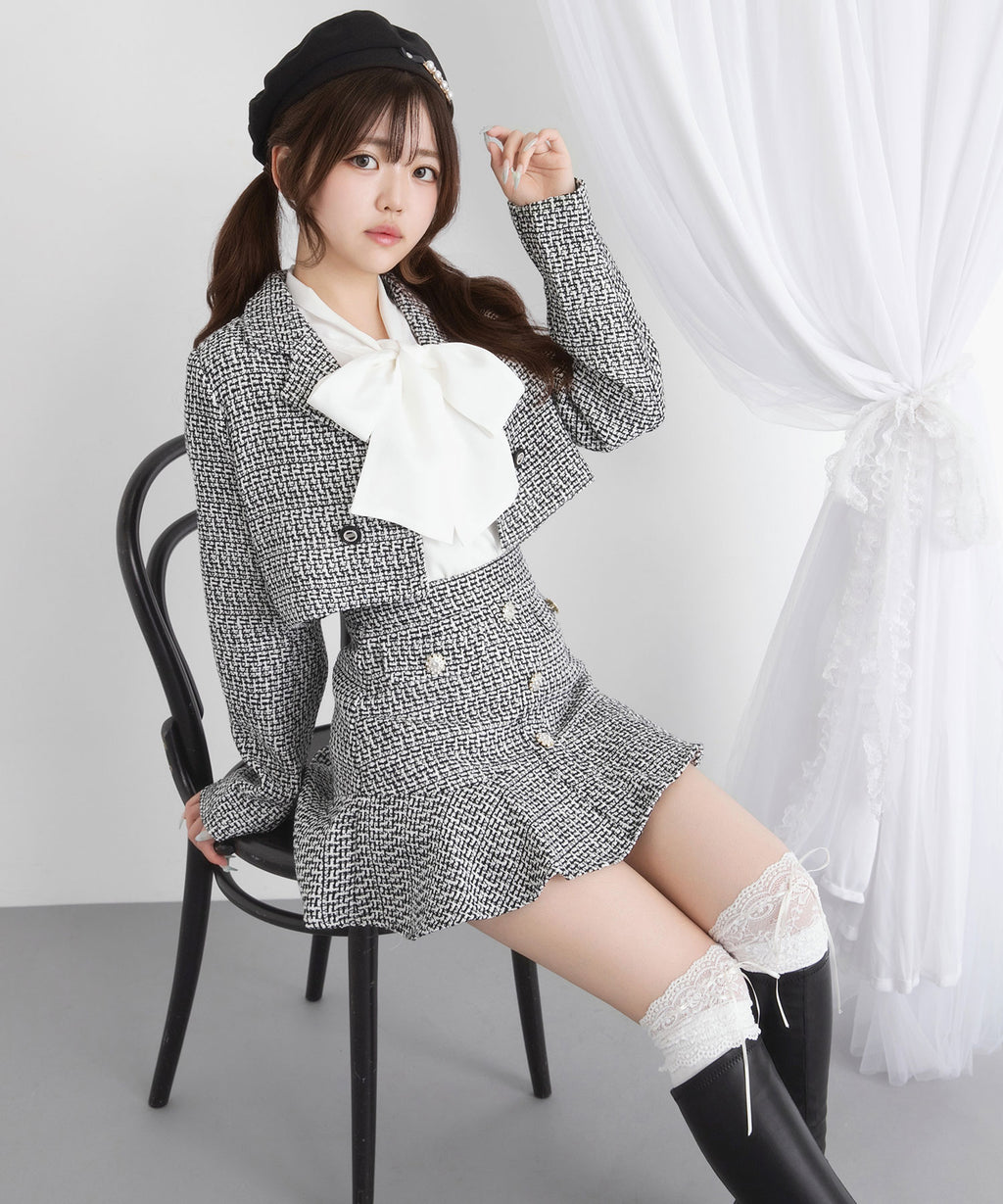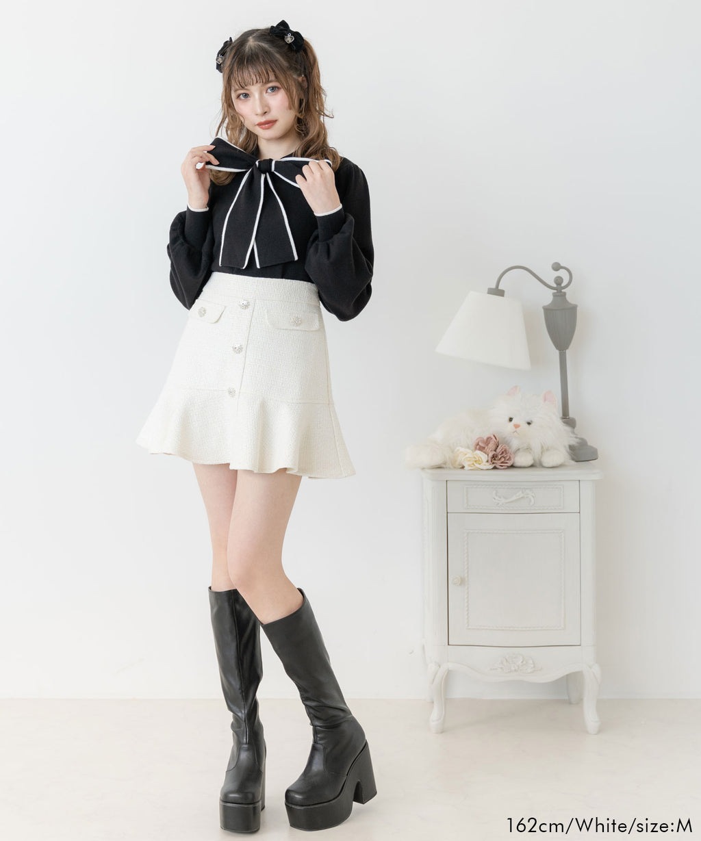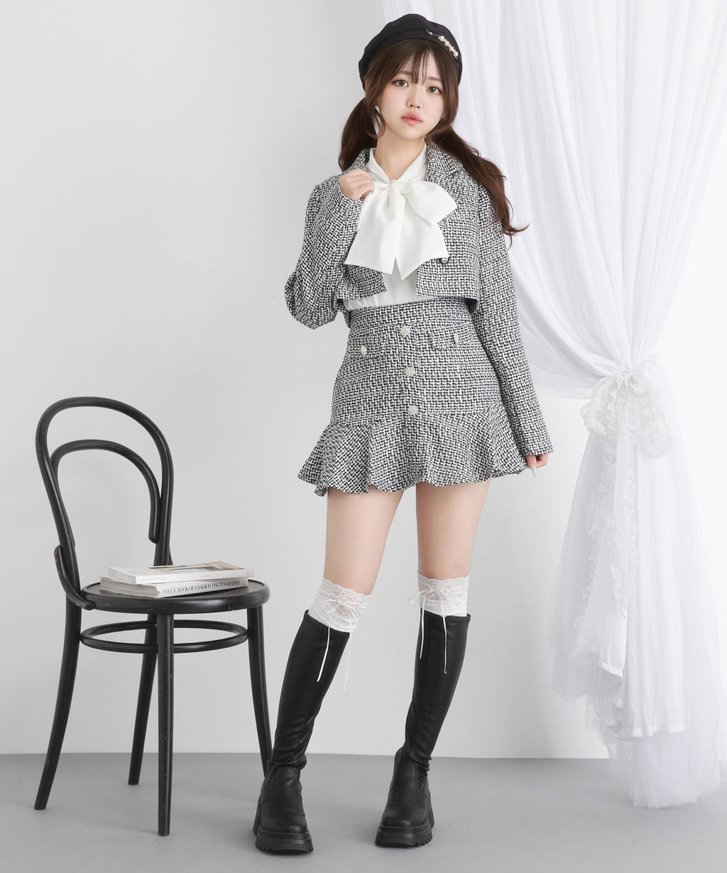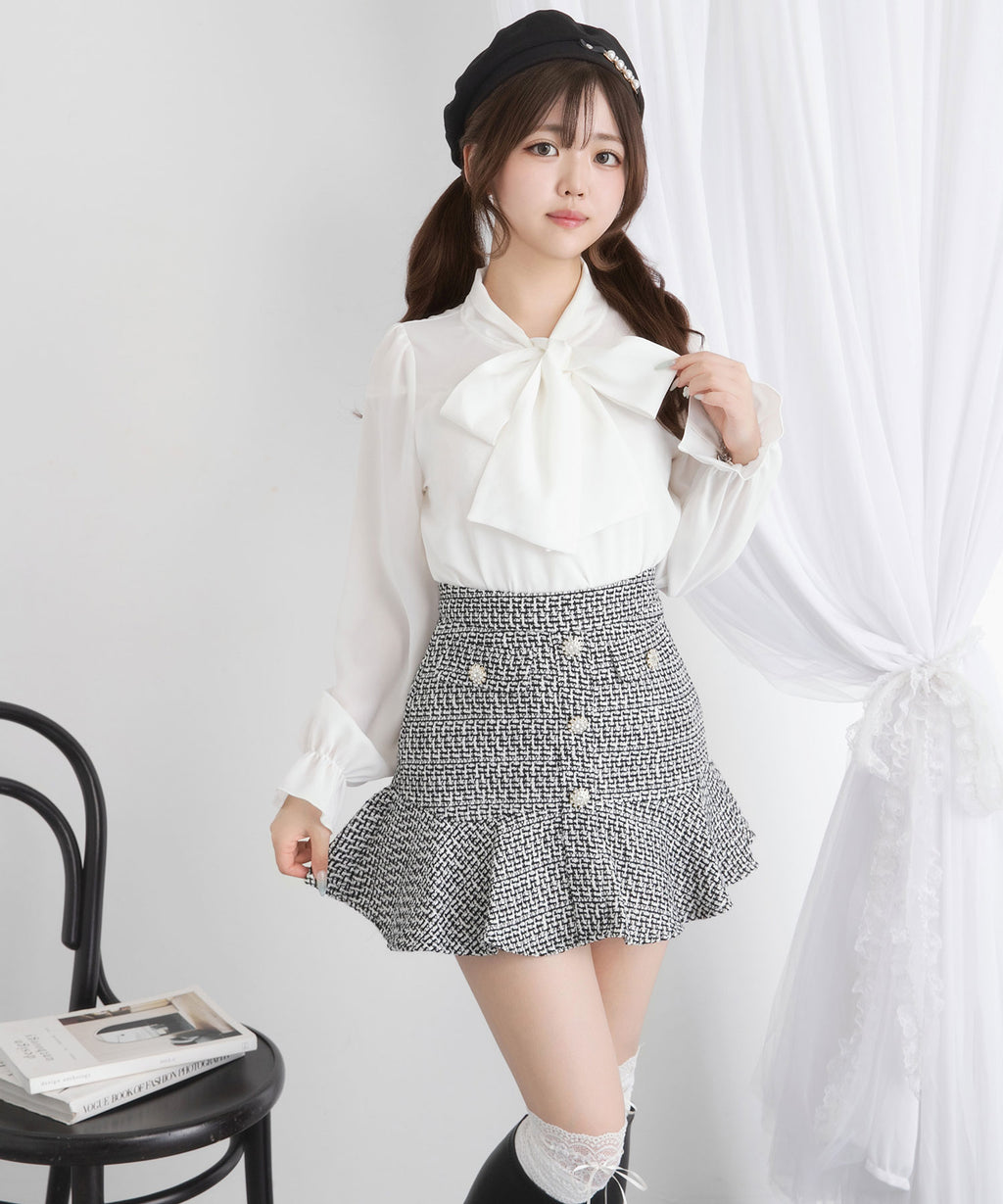 きらきらビジューが目を惹くツイードフリルスカートのご紹介。