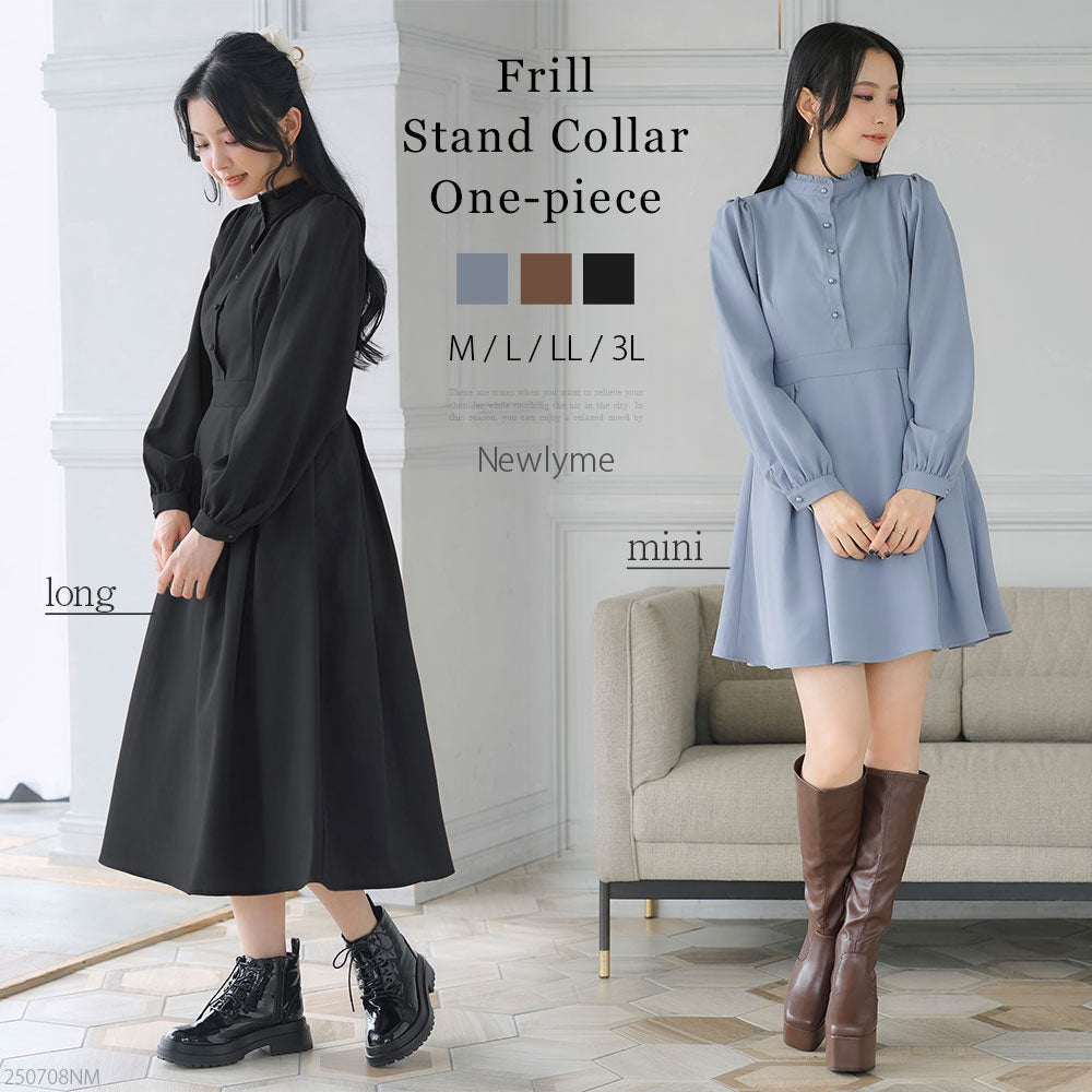 プチフリルをあしらったスタンドカラーが上品なデザイン。