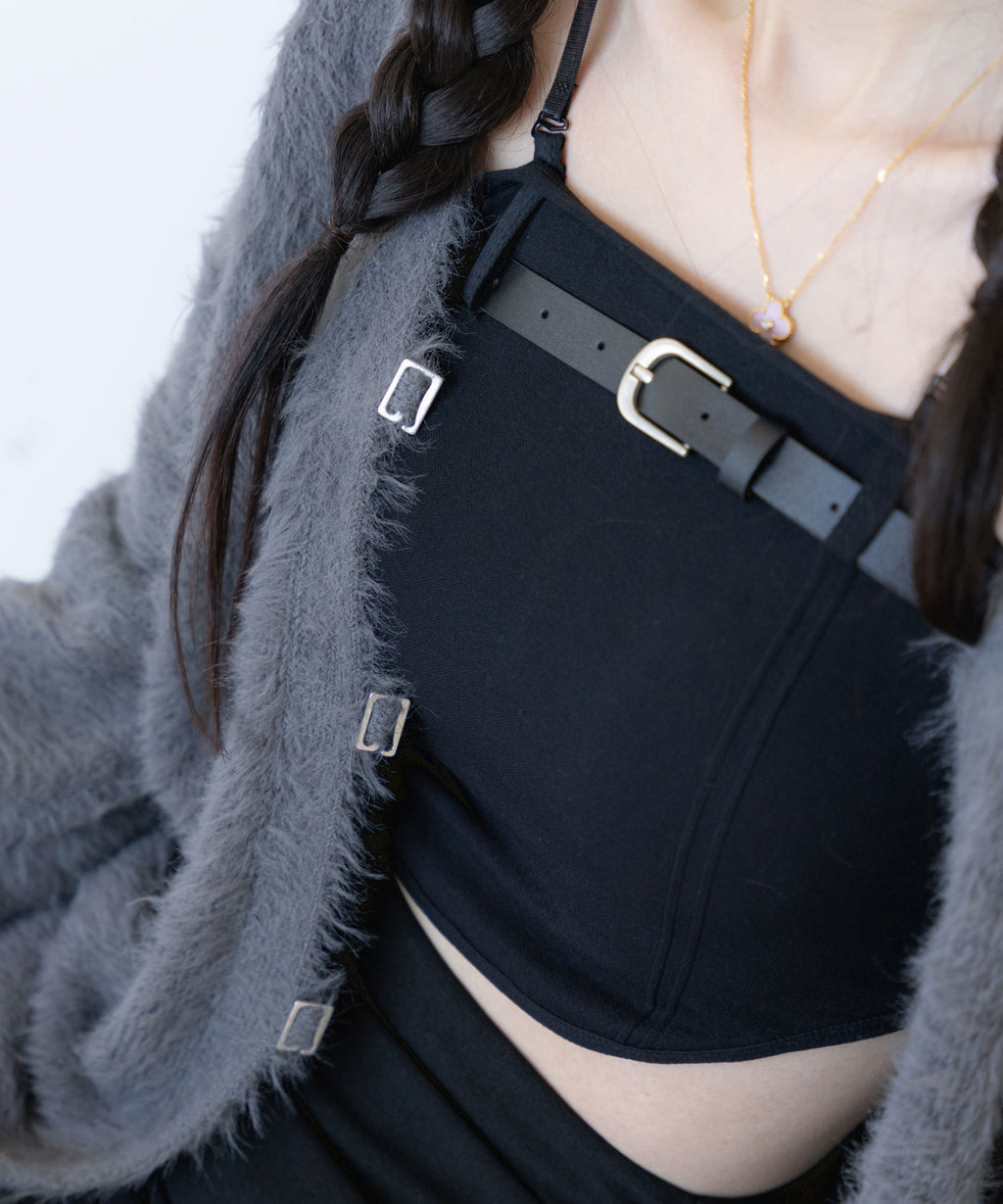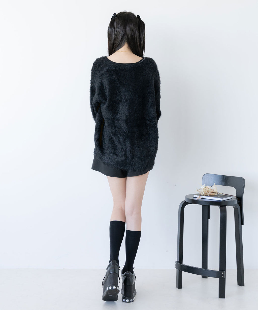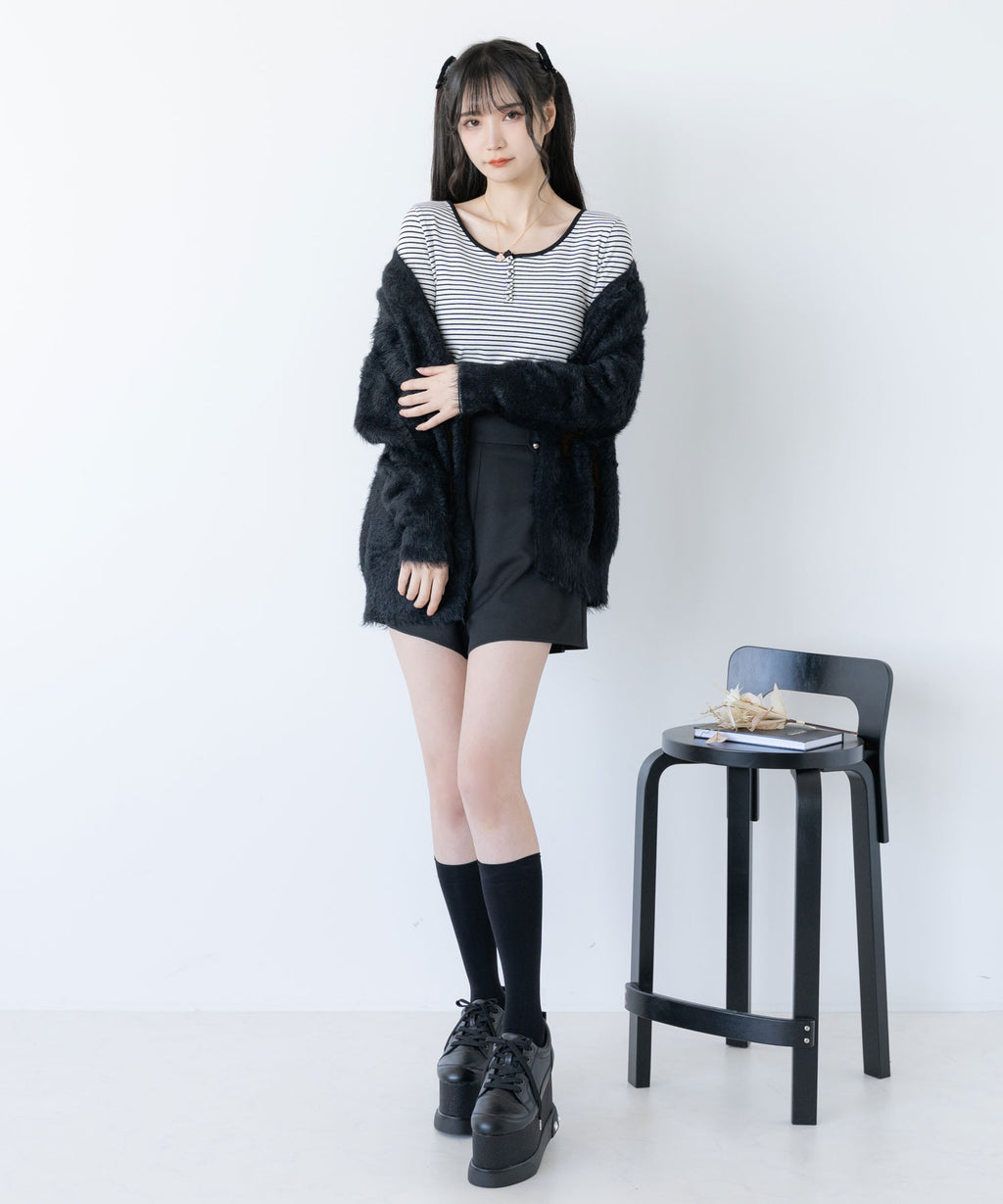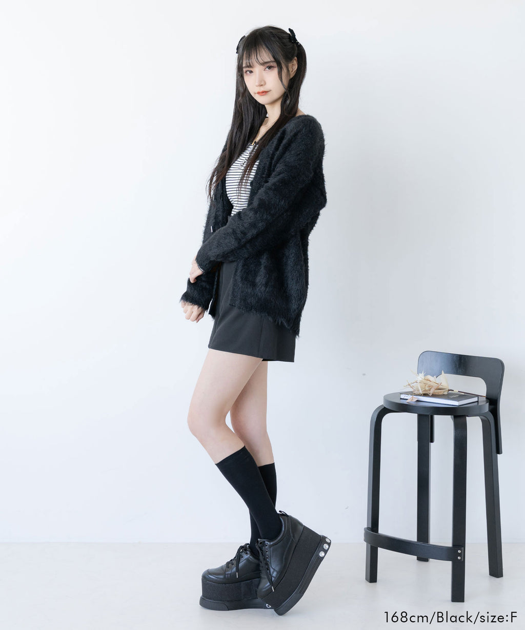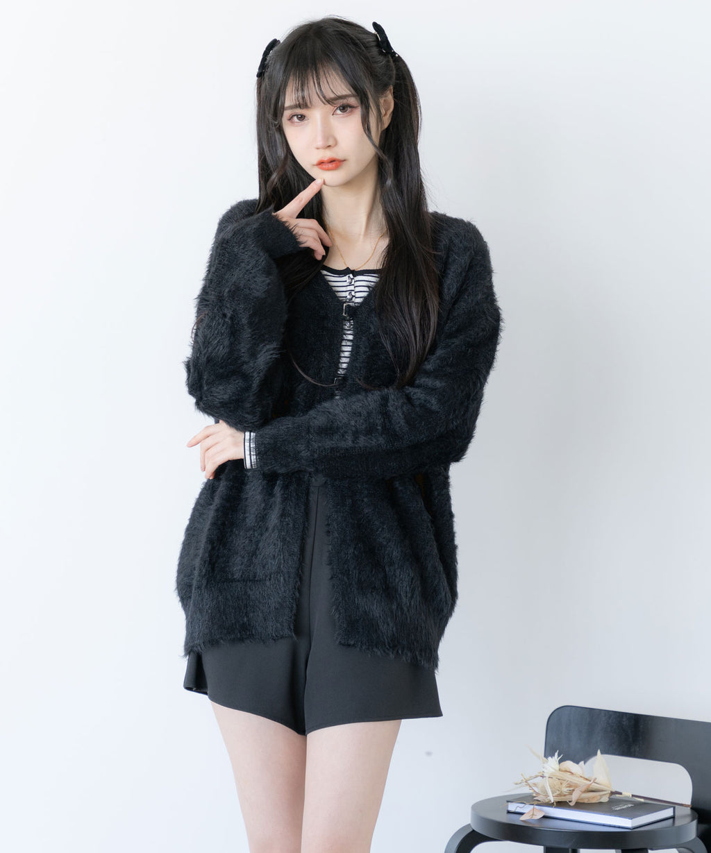 ふわふわとした毛足の長いフェザーの風合いが可愛らしいカーディガンです。