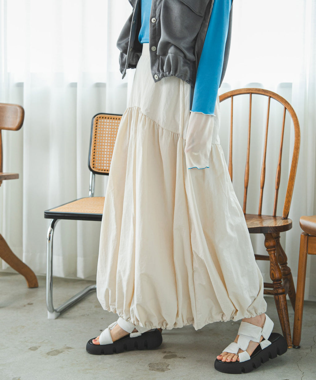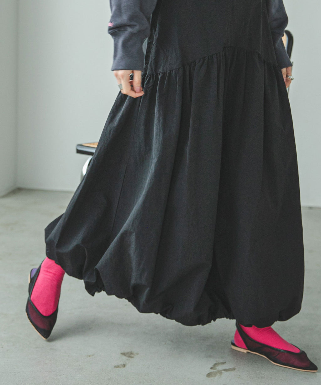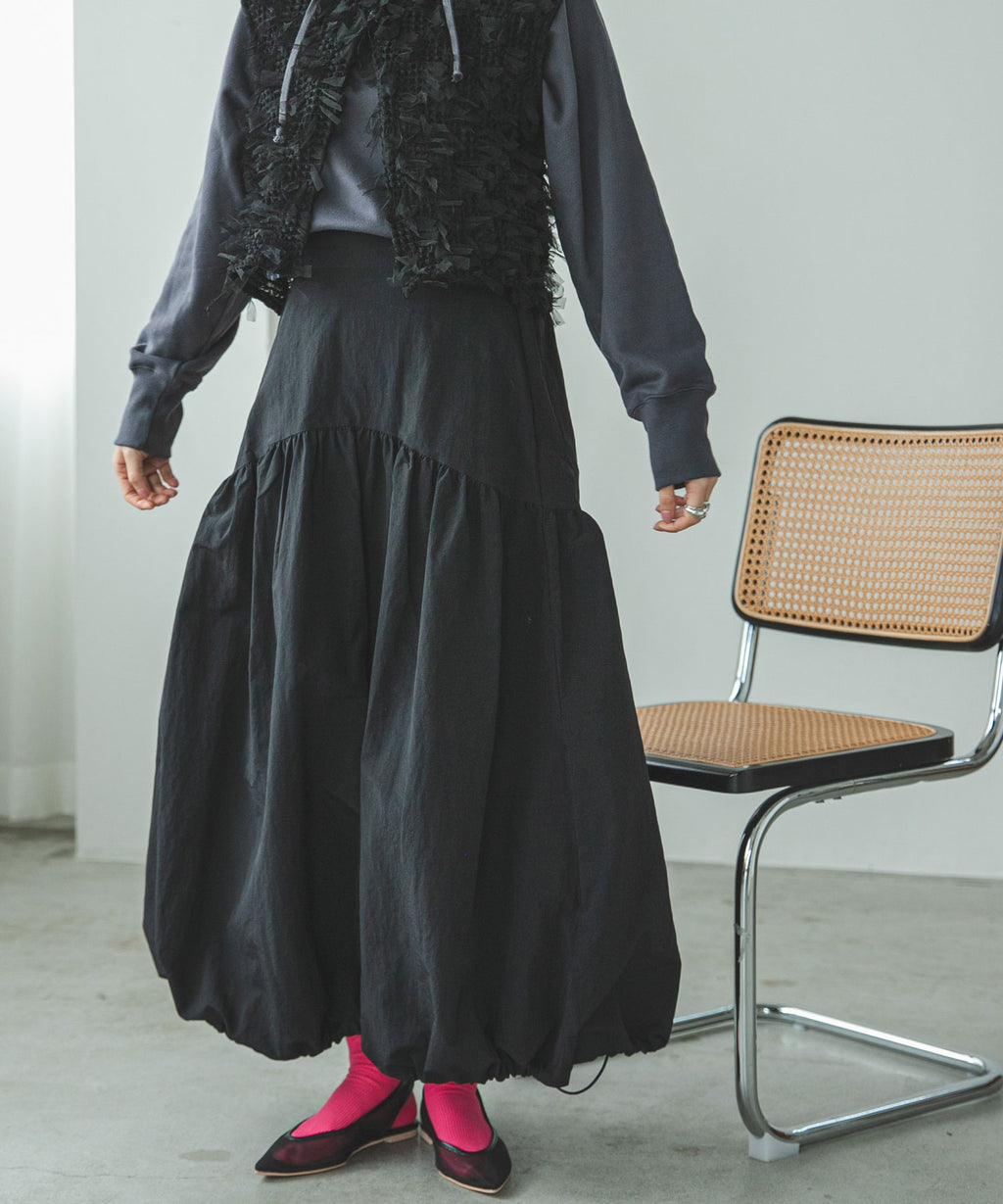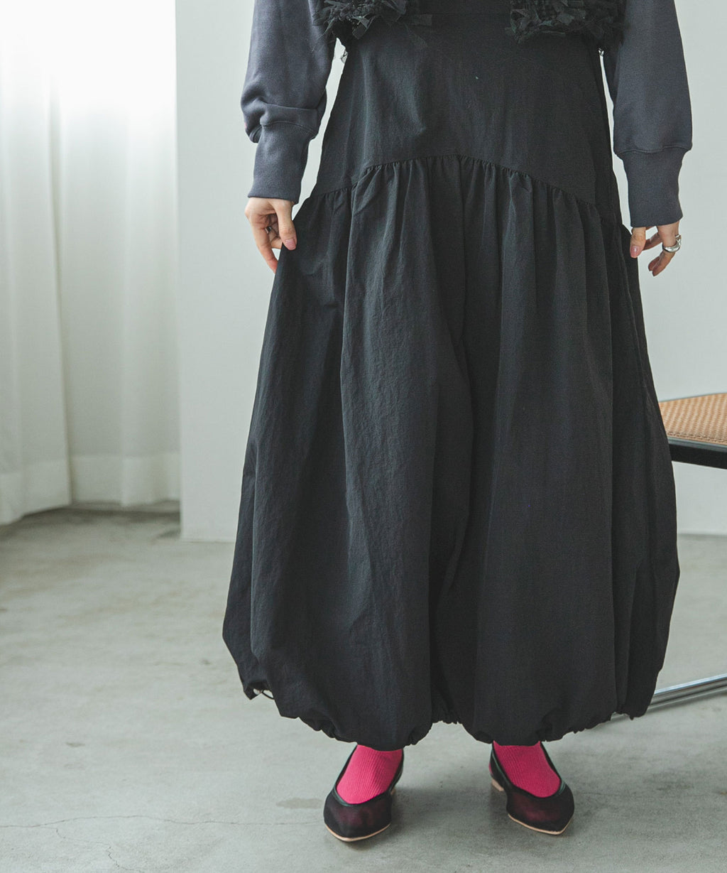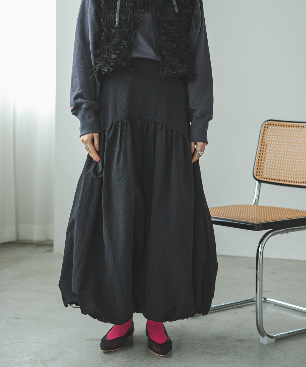 フレアスカートとしてバルーンスカートとしても着用できる多機能スカート。