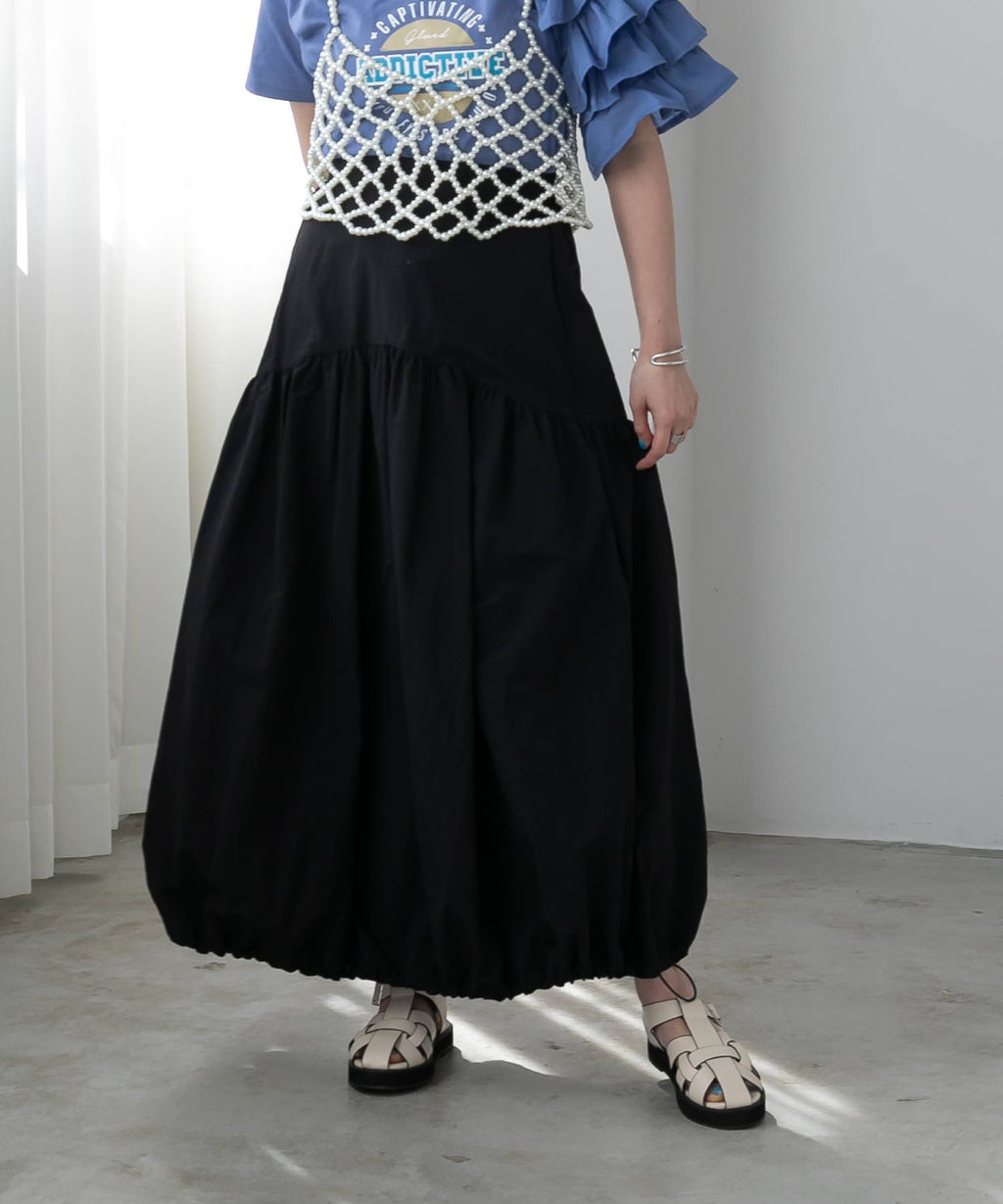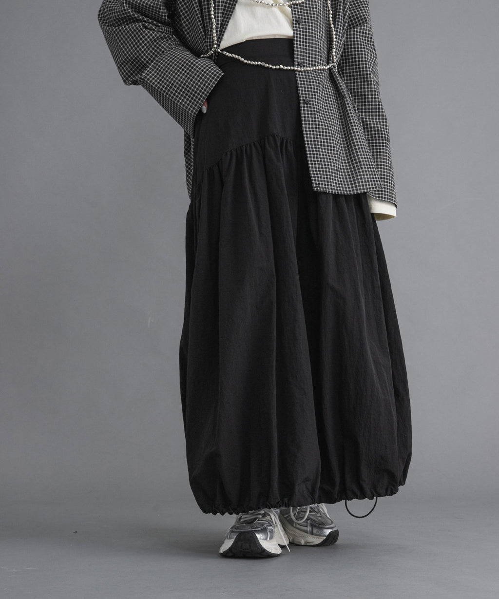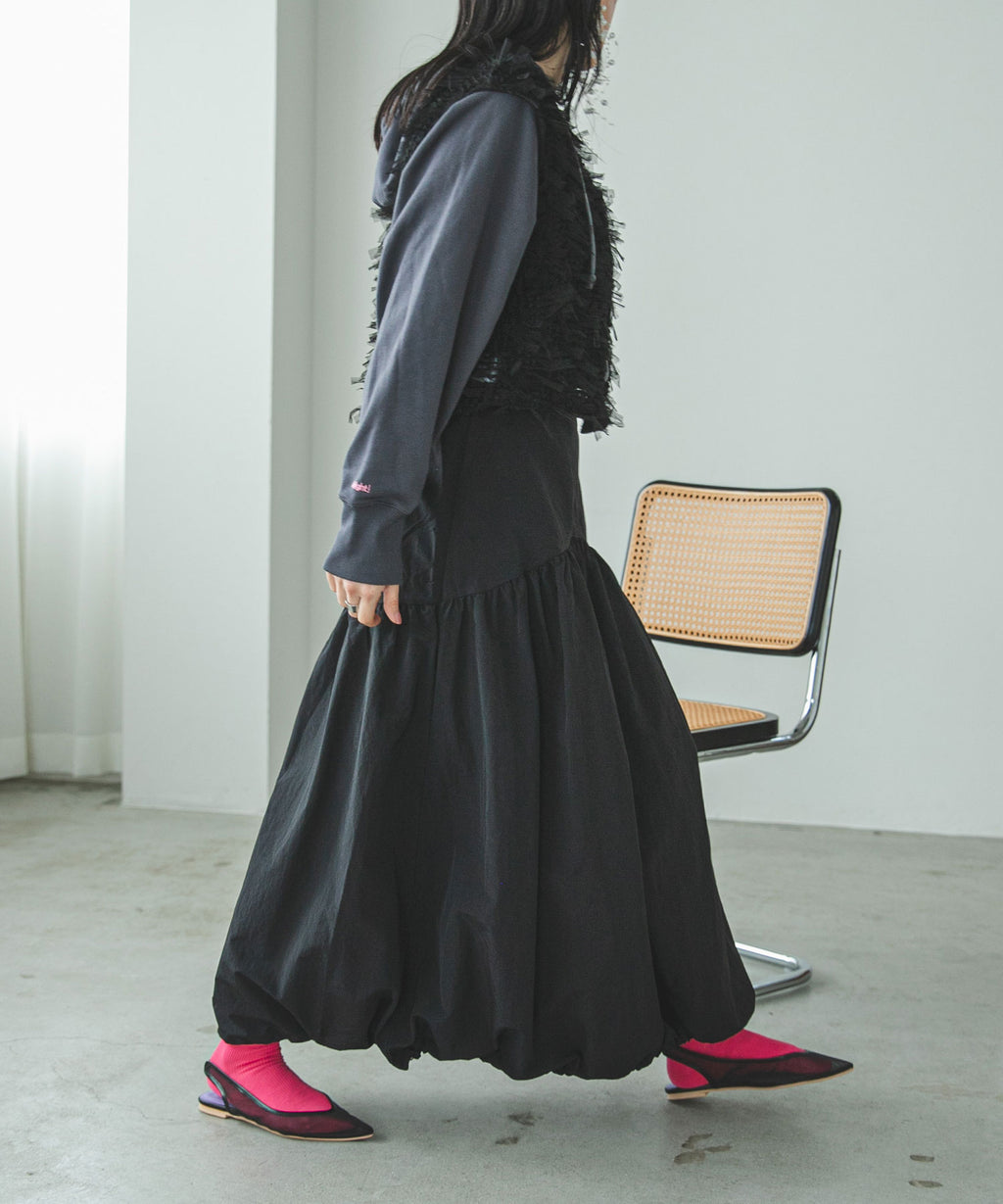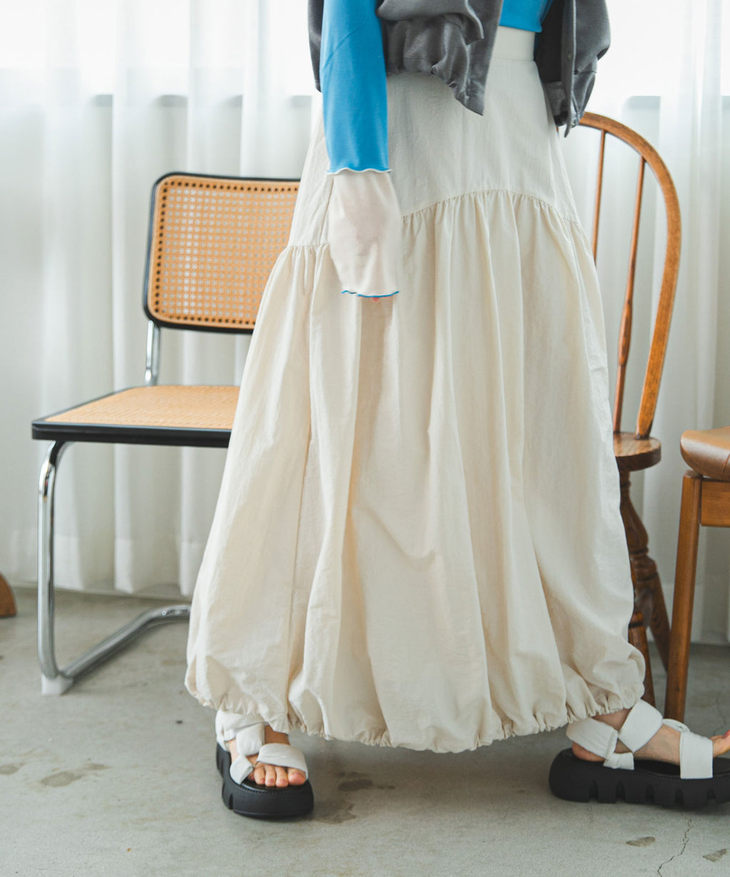 フレアスカートとしてバルーンスカートとしても着用できる多機能スカート。