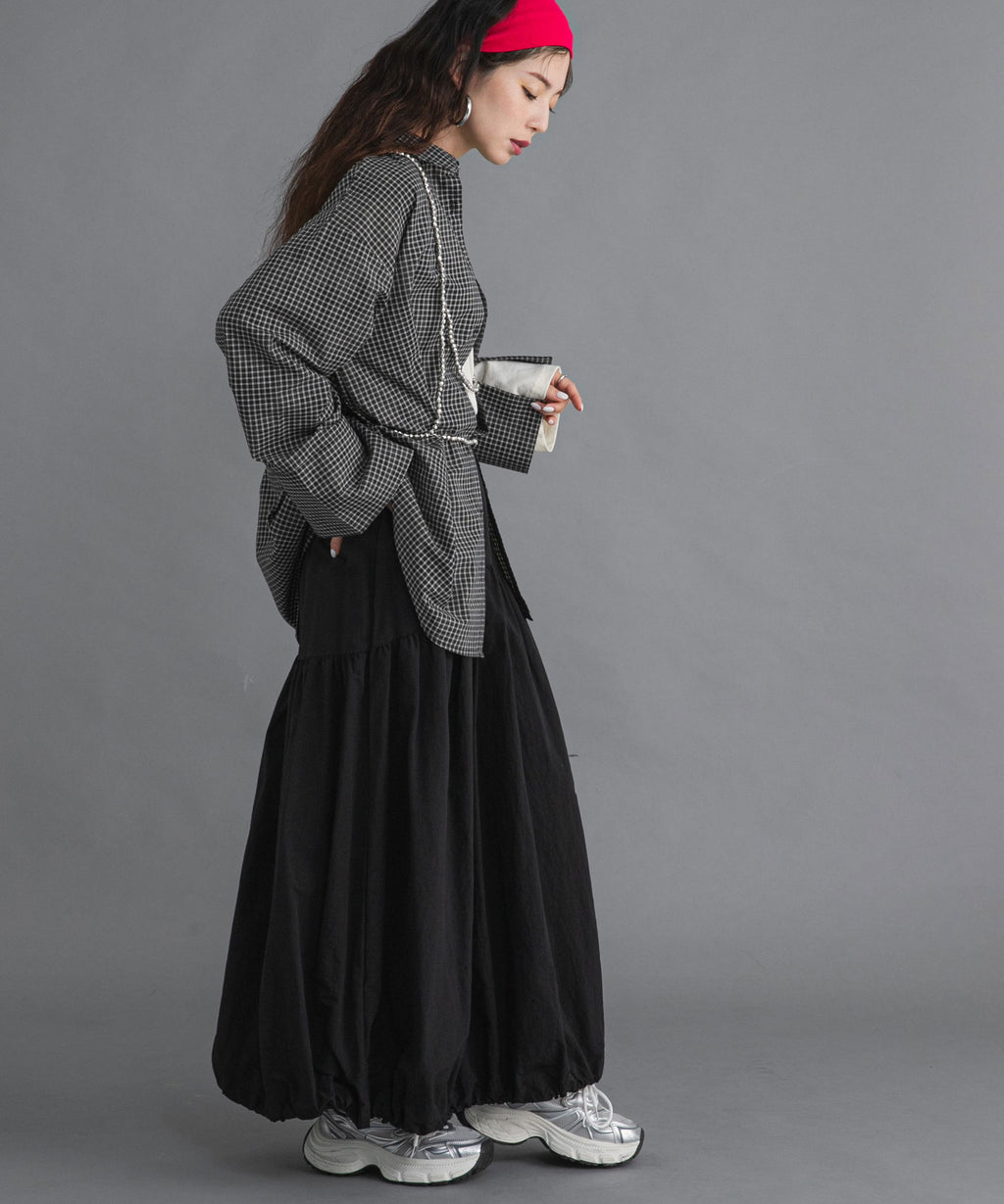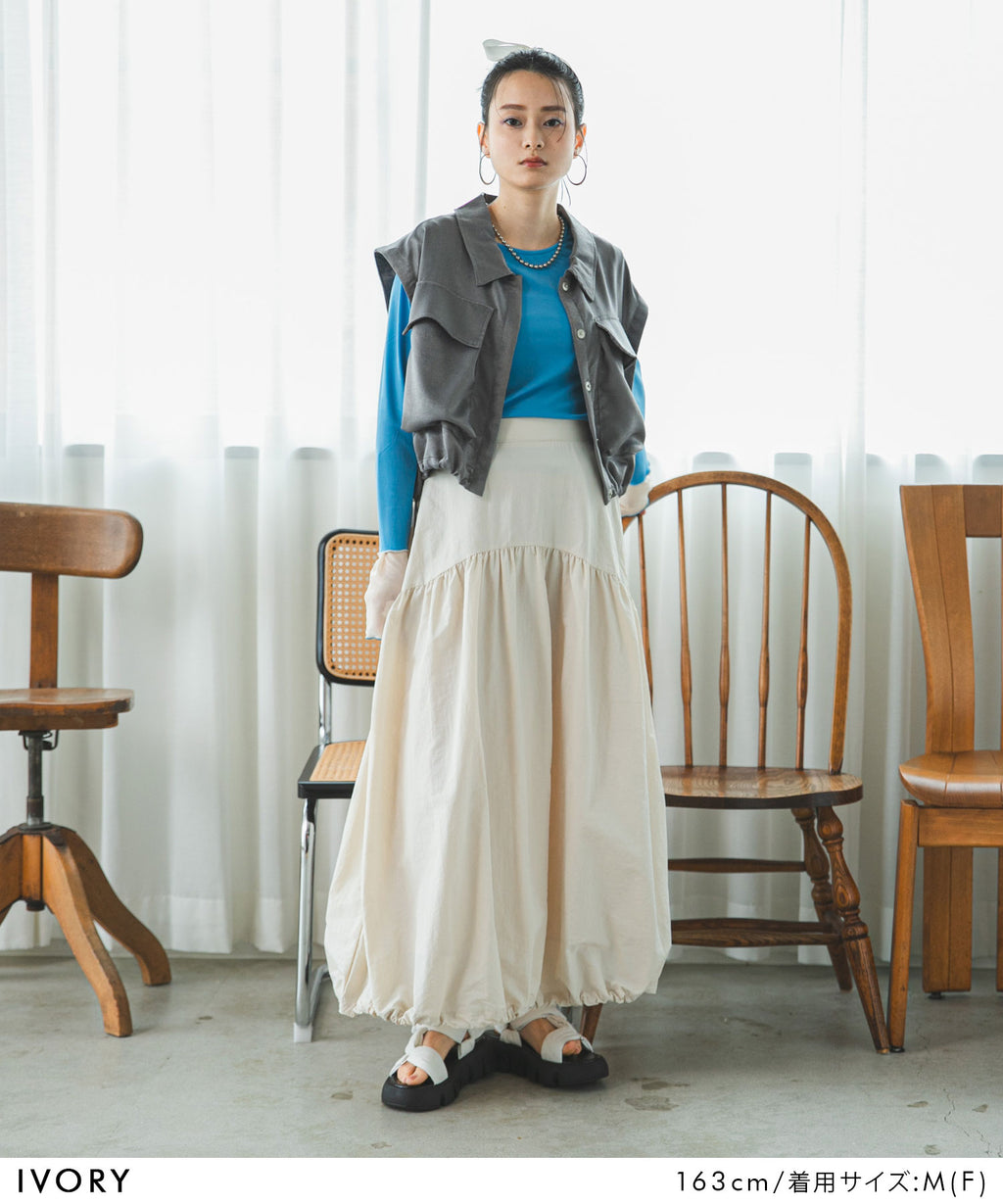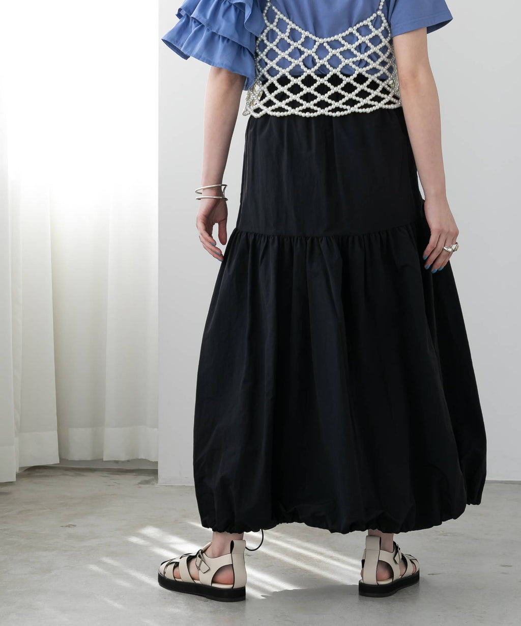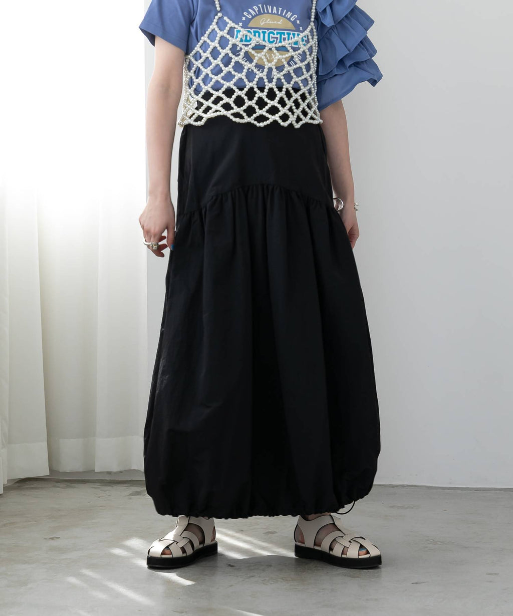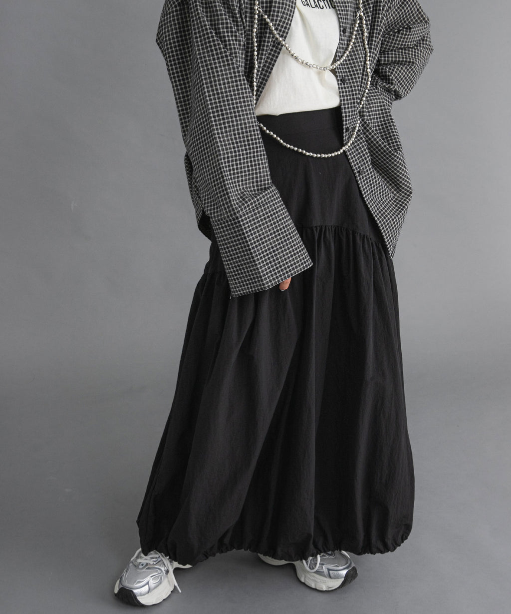 フレアスカートとしてバルーンスカートとしても着用できる多機能スカート。