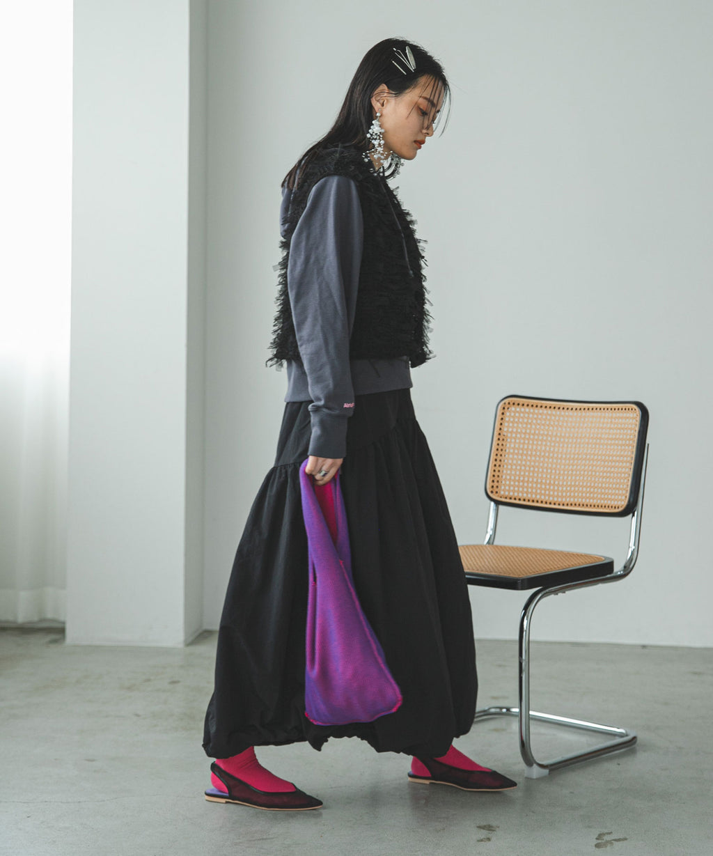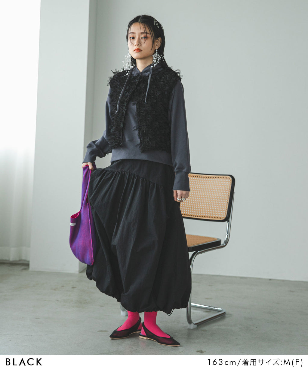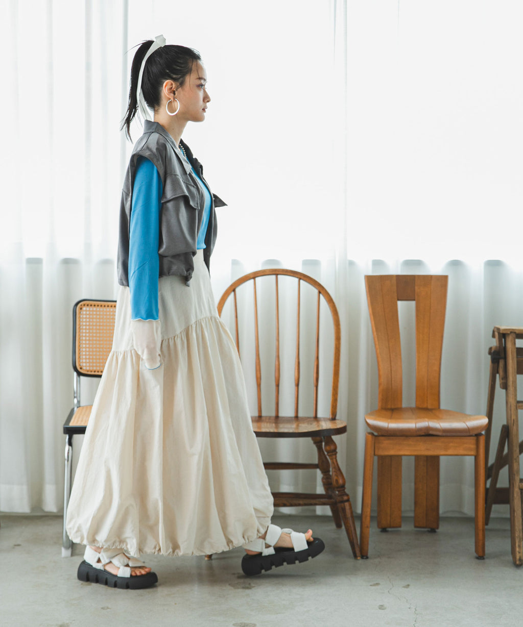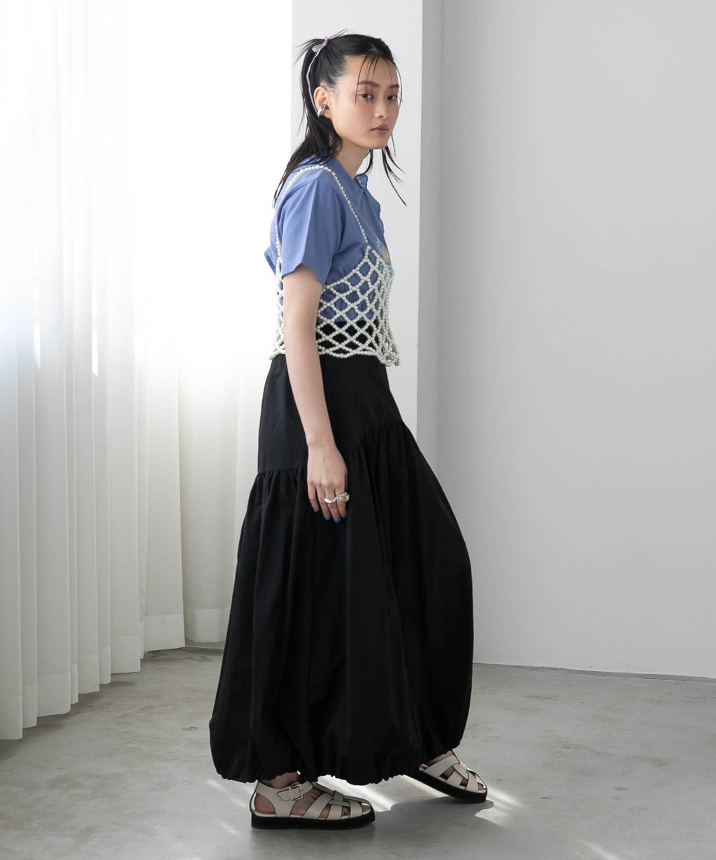 フレアスカートとしてバルーンスカートとしても着用できる多機能スカート。