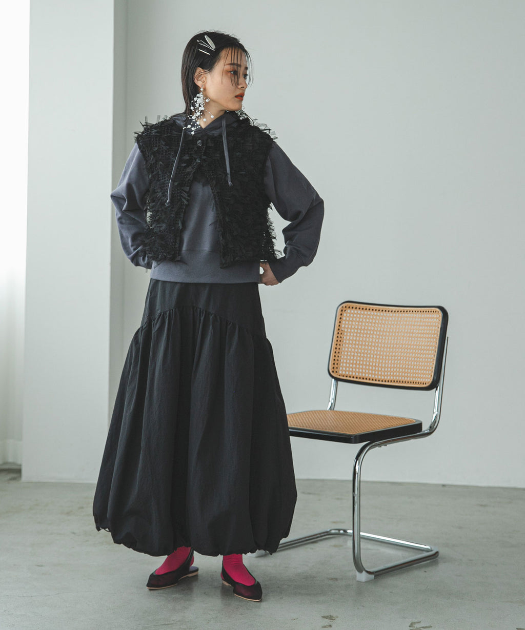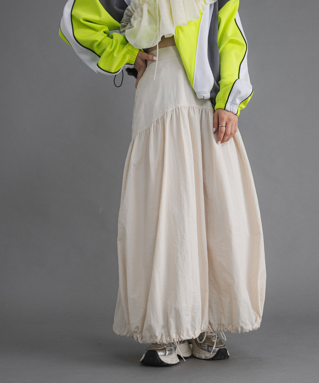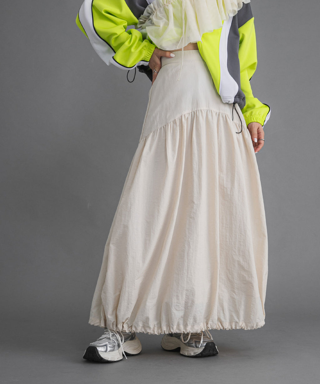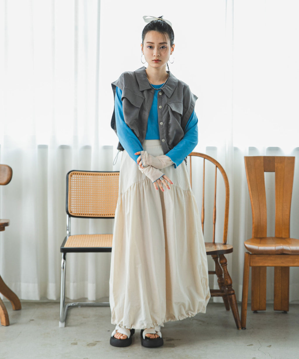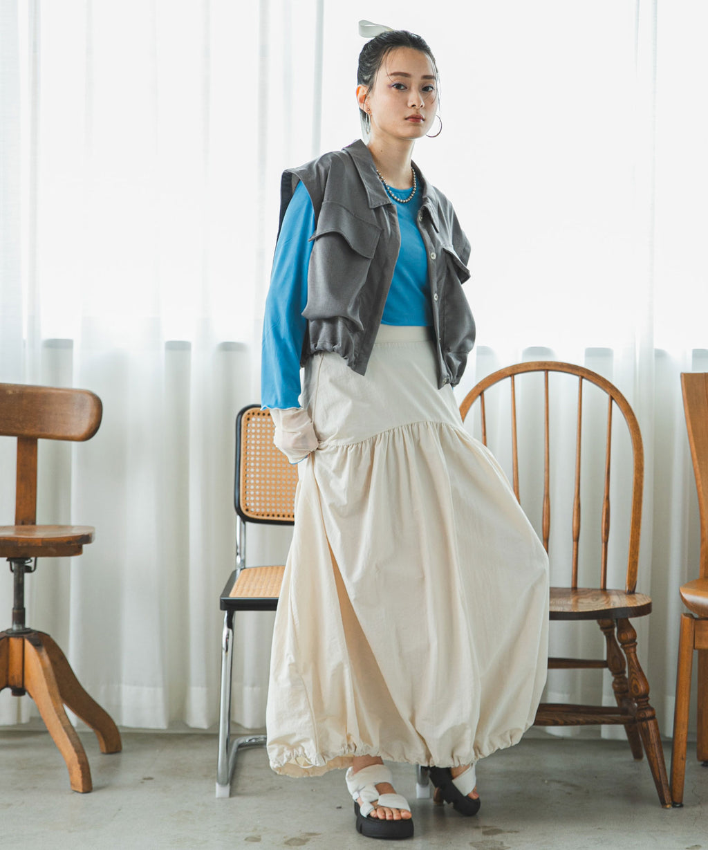 フレアスカートとしてバルーンスカートとしても着用できる多機能スカート。