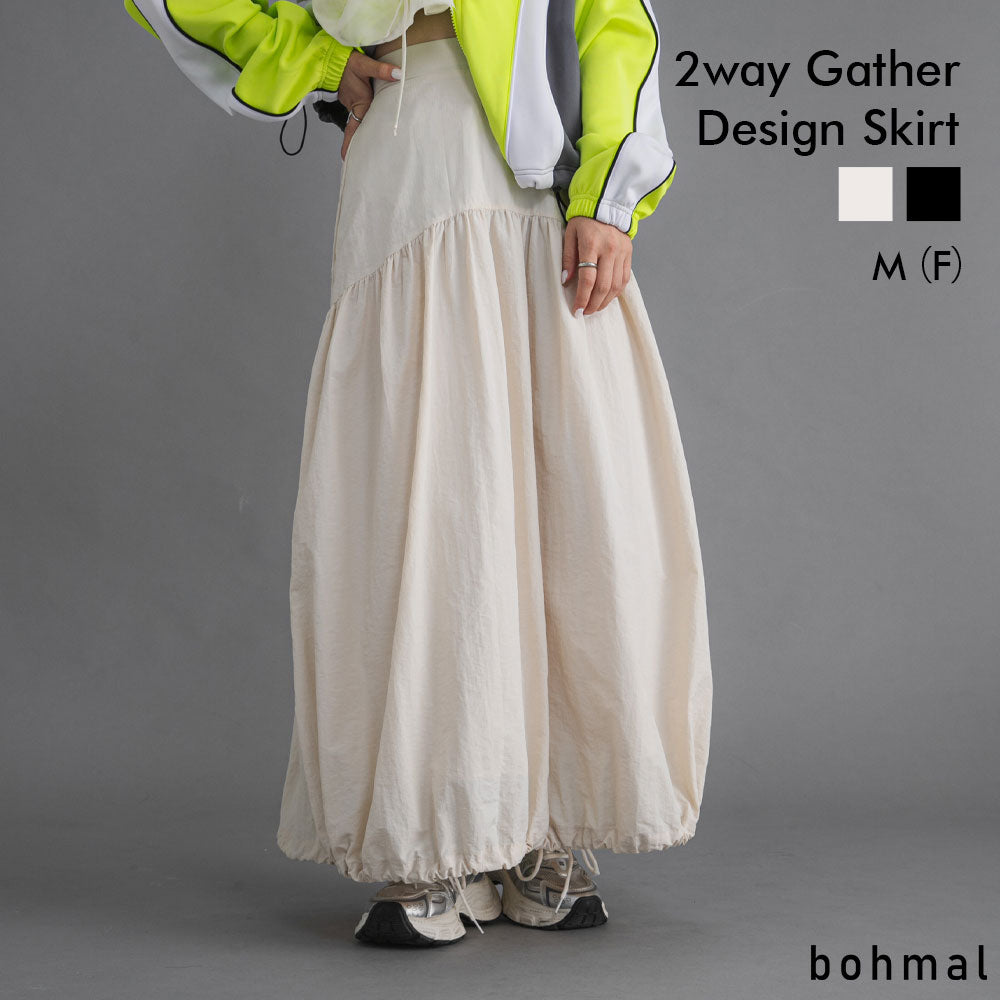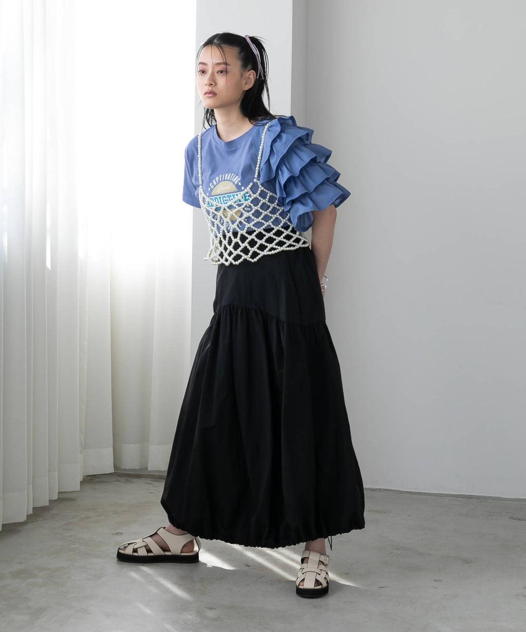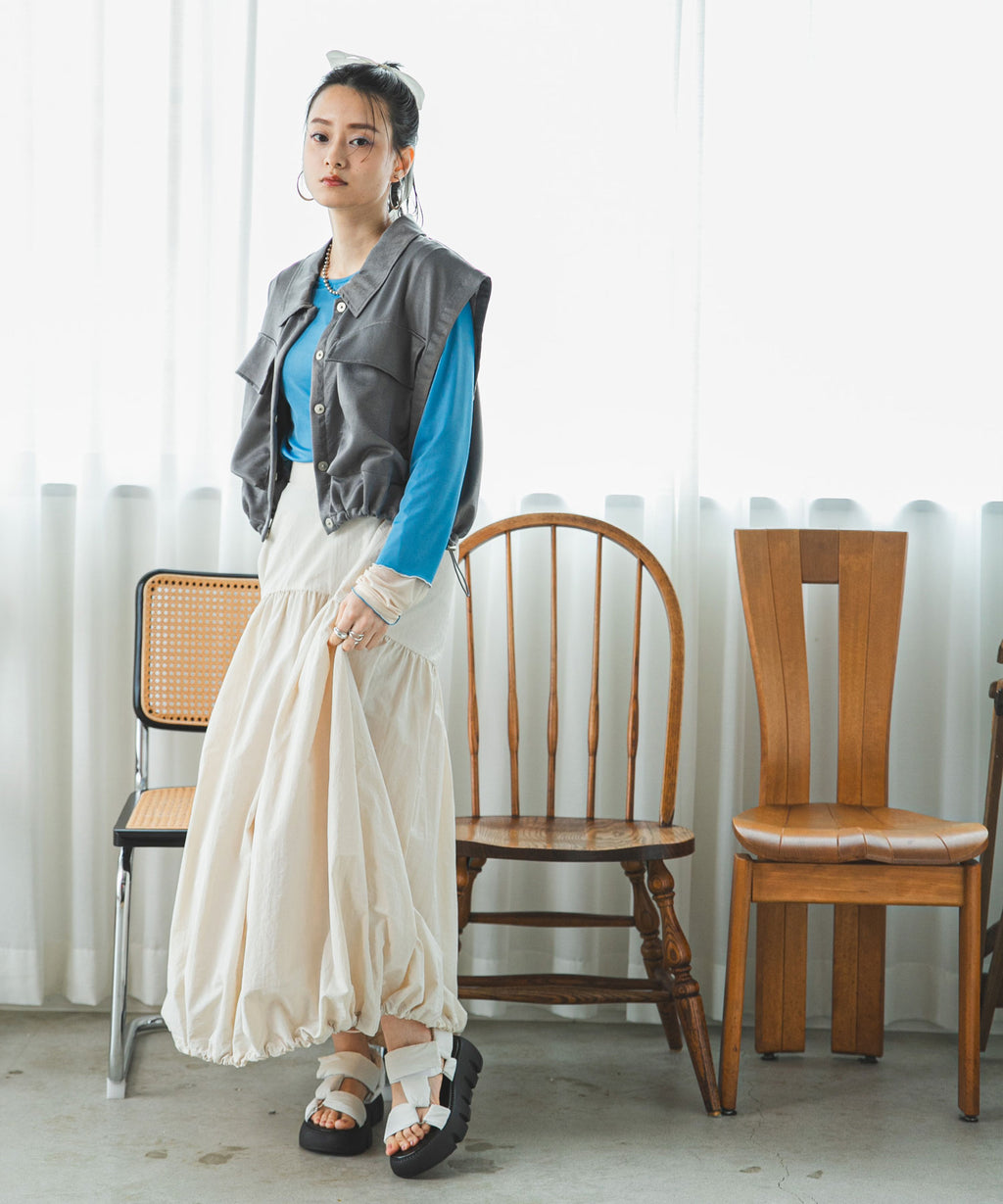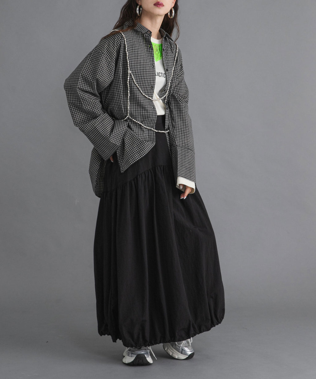 フレアスカートとしてバルーンスカートとしても着用できる多機能スカート。