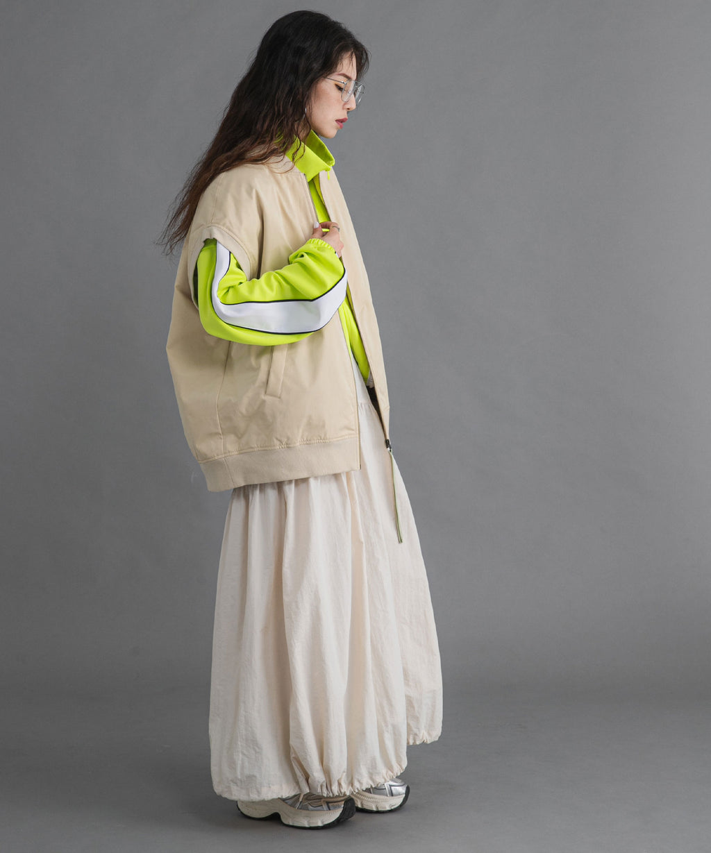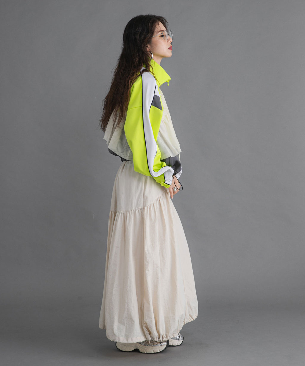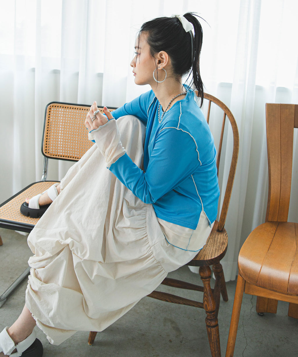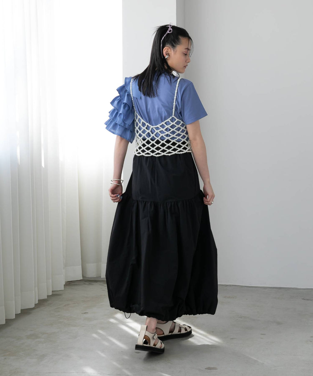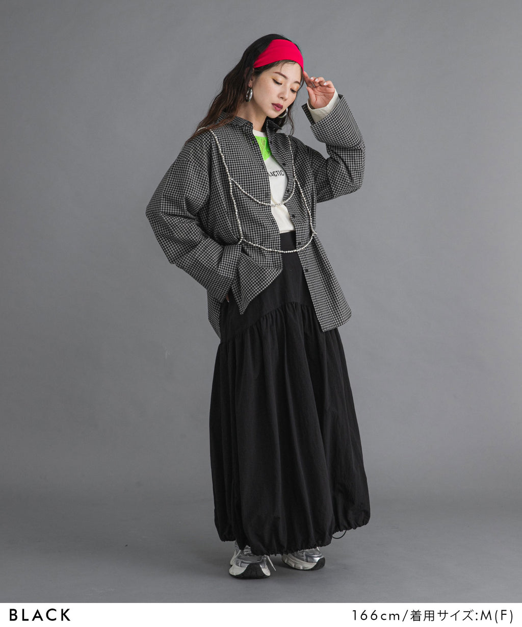フレアスカートとしてバルーンスカートとしても着用できる多機能スカート。