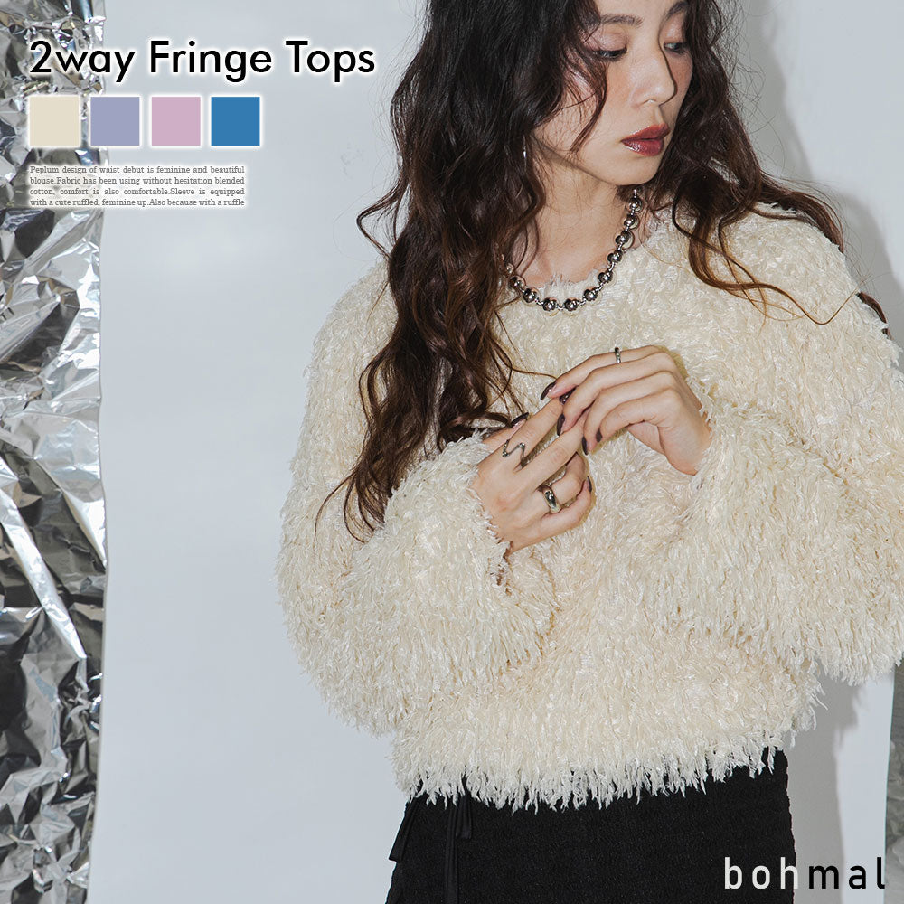 フワフワ!モフモフ!が可愛いフリンジトップス。