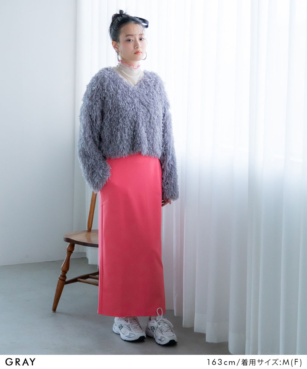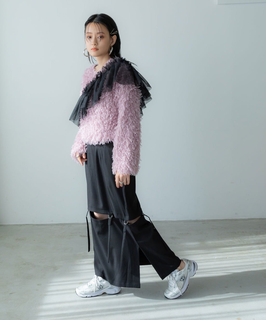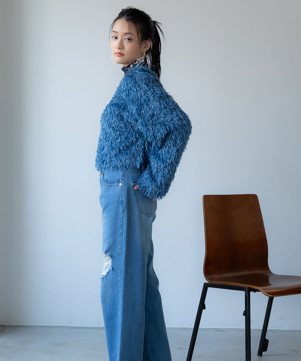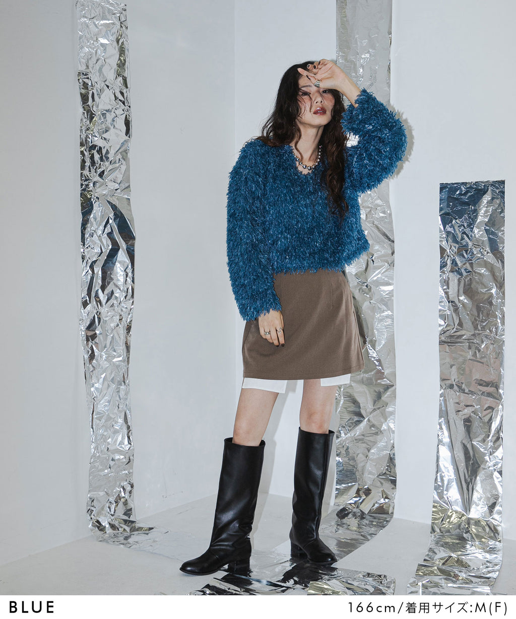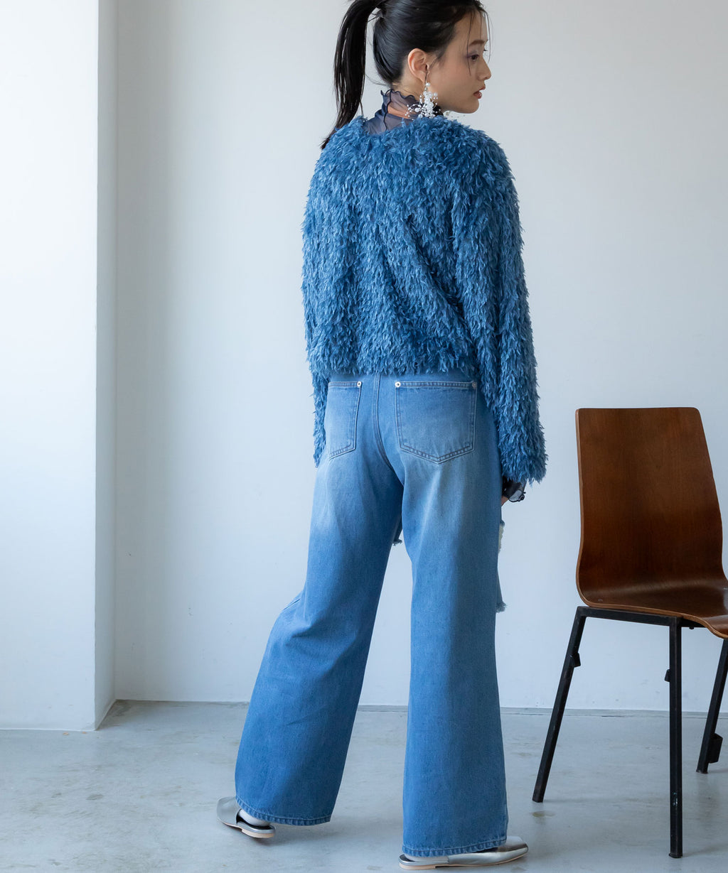 ふわっとしたフリンジの編み地で女性らしい立体的なシルエットに。