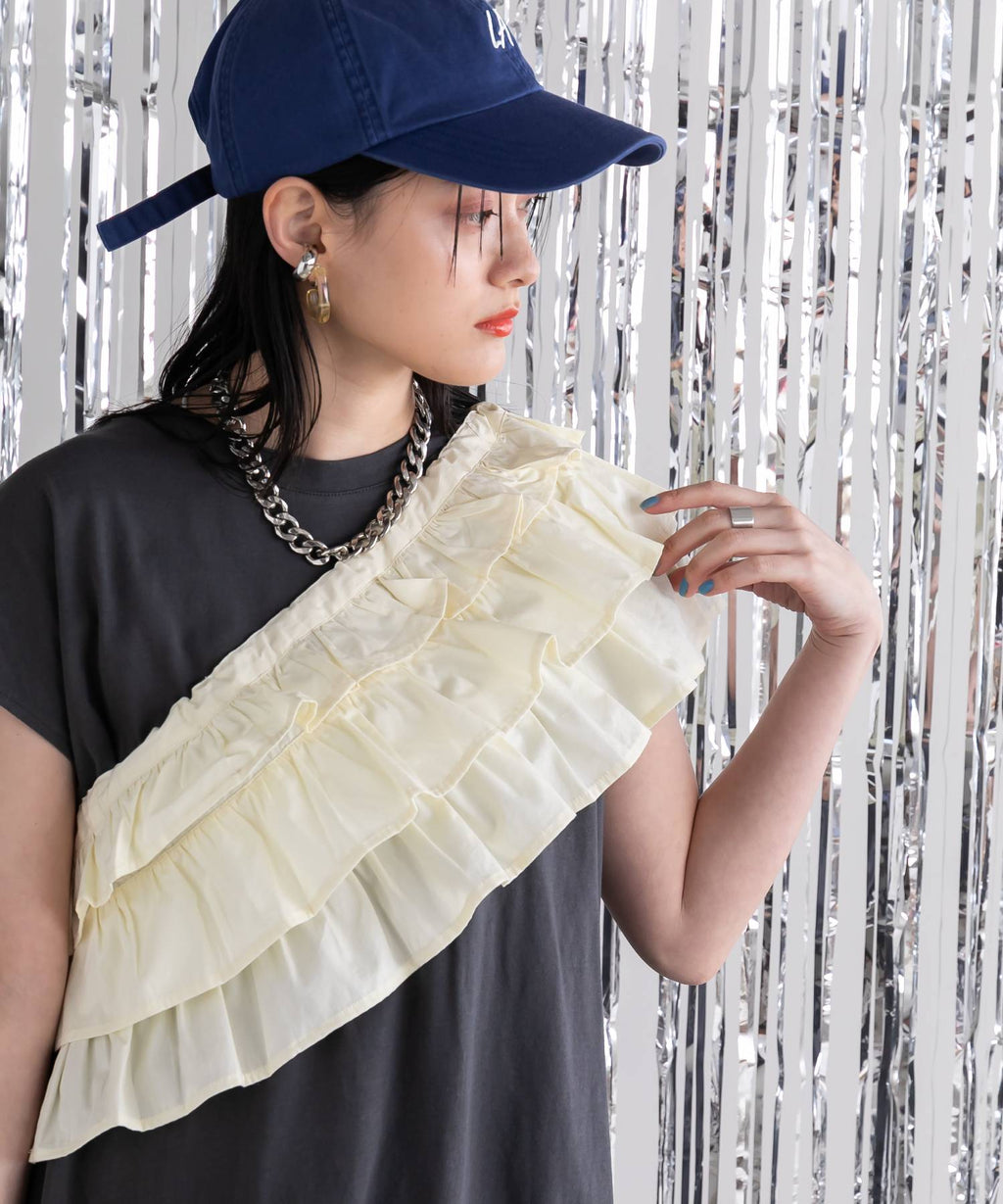 たすき掛けはもちろん、付け襟風にも、ビスチェ風にも、腰に巻いても使用可能。