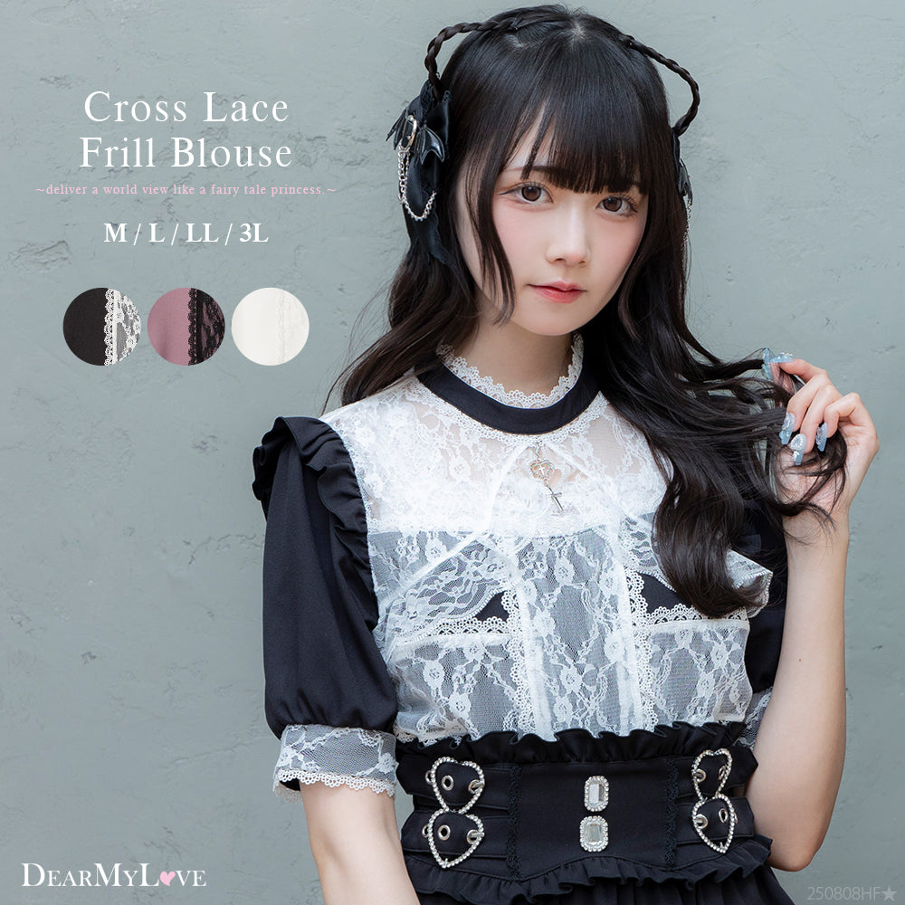 十字架チャーム付きレースフリルブラウス