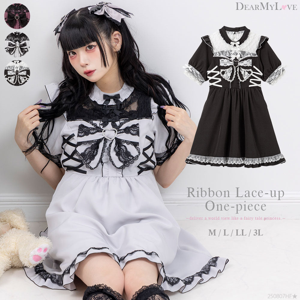 レースフリルとリボンたっぷりの地雷系レースアップワンピース