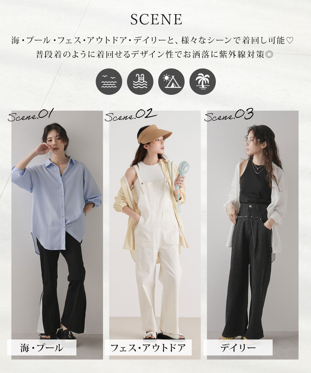 タウンユースとしてデニムやスカート、ワンピースの上にさらっと羽織ってUVケアも!