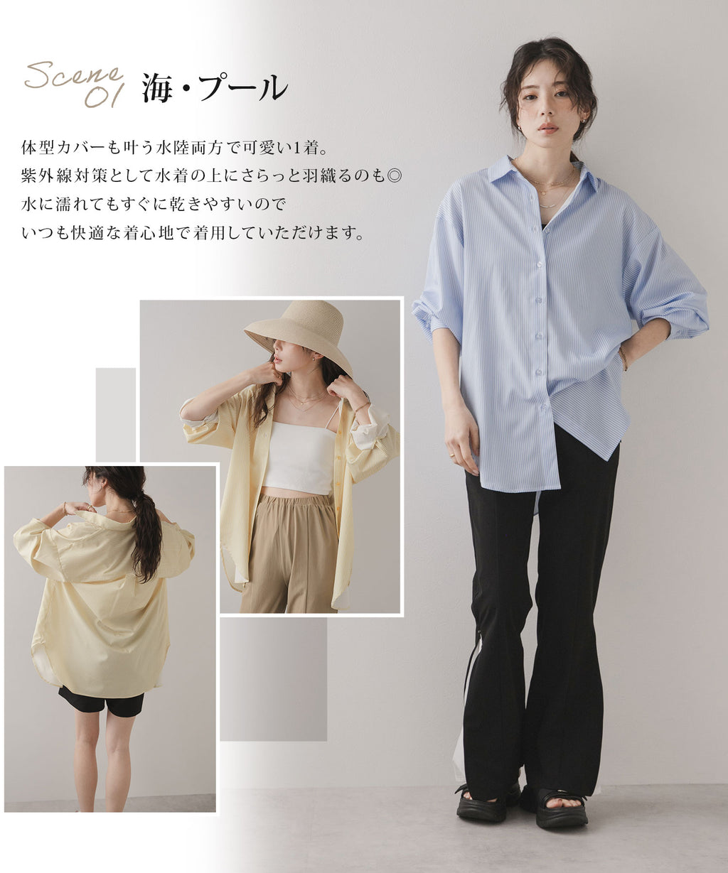 速乾性があるので水に濡れても気にせず、海辺でのUV対策としてご着用頂けます。